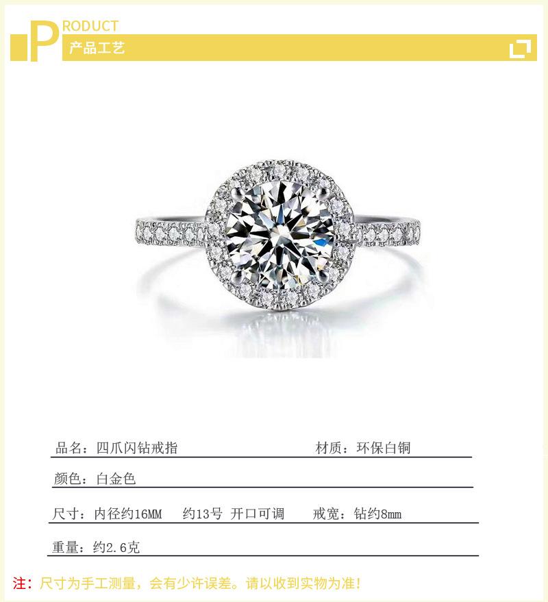 Anillo de circonio de cuatro garras con diamante flash INS Europa y Estados Unidos temperamento网红 creativo taladro completo apertura anillo dedo índice suministro de comercio electrónico