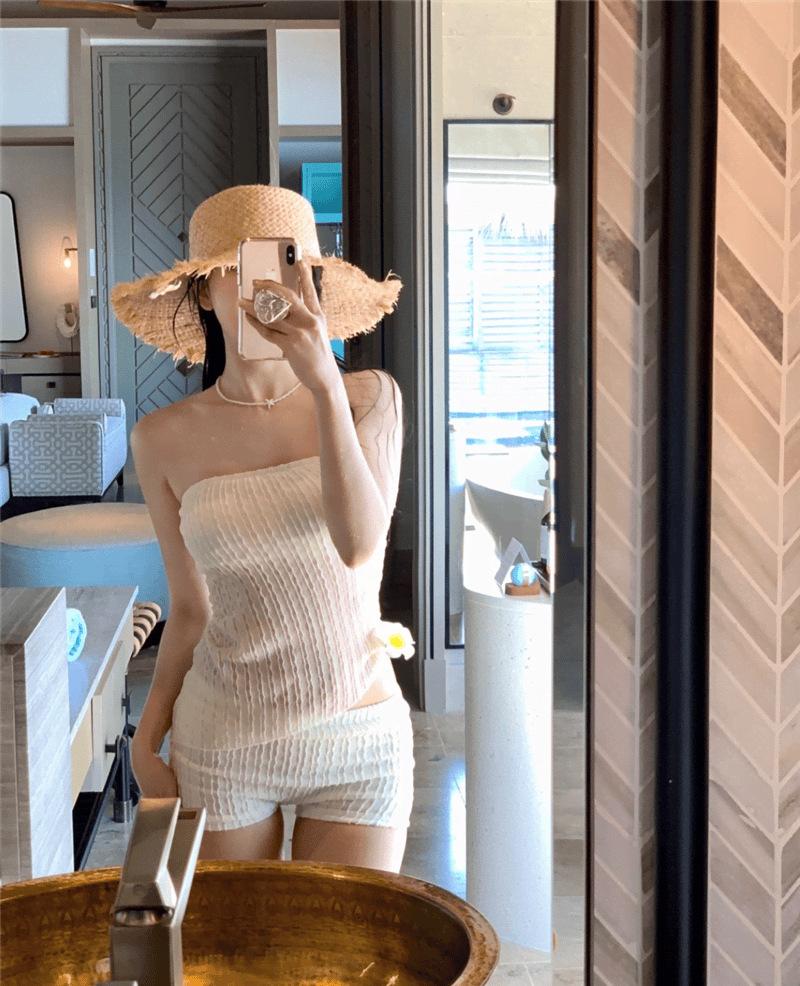 Traje de Baño Niña Dulce Bikini Bandeau Blanco Traje de Vacaciones de Viaje Playa Mar Termas Traje de Baño de Dos Piezas