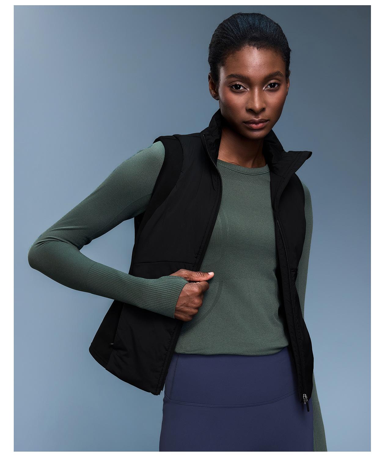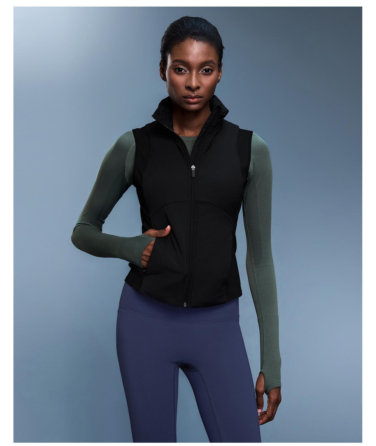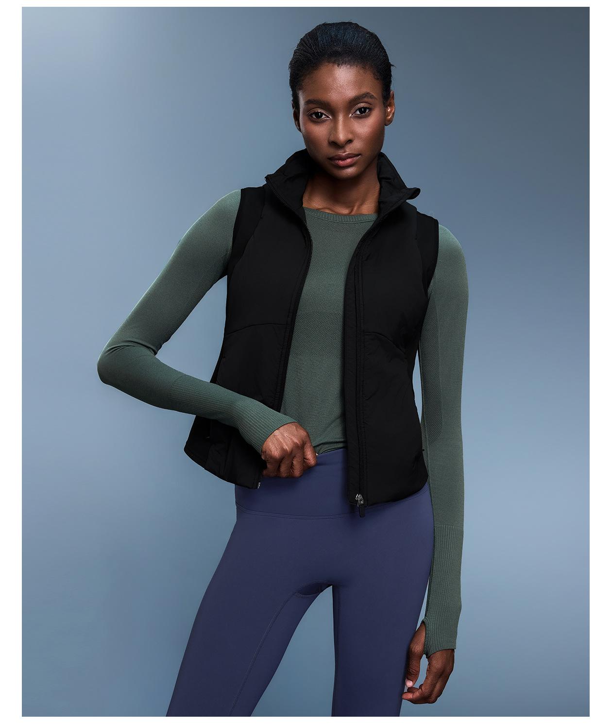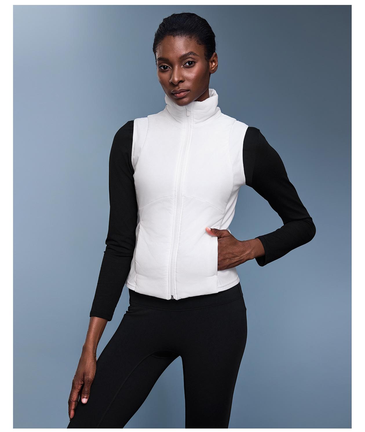 Chaleco sin mangas con cuello alto a prueba de viento para otoño e invierno, top ligero con terciopelo cálido, corte ajustado adelgazante, abrigo chaleco corto para mujer D25122