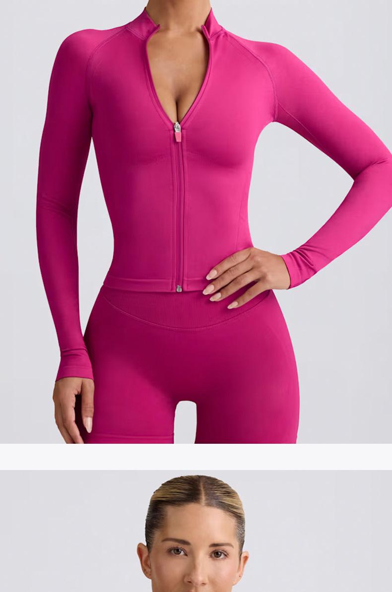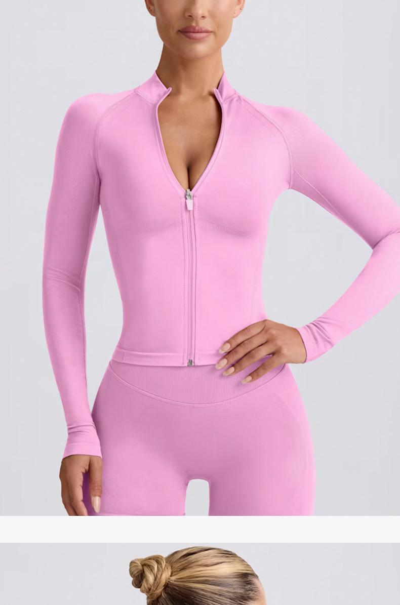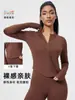 Conjunto de traje de yoga nude de otoño e invierno, cintura alta, ajustado, chaqueta de manga larga para yoga, ropa de fitness para correr, traje deportivo para mujer