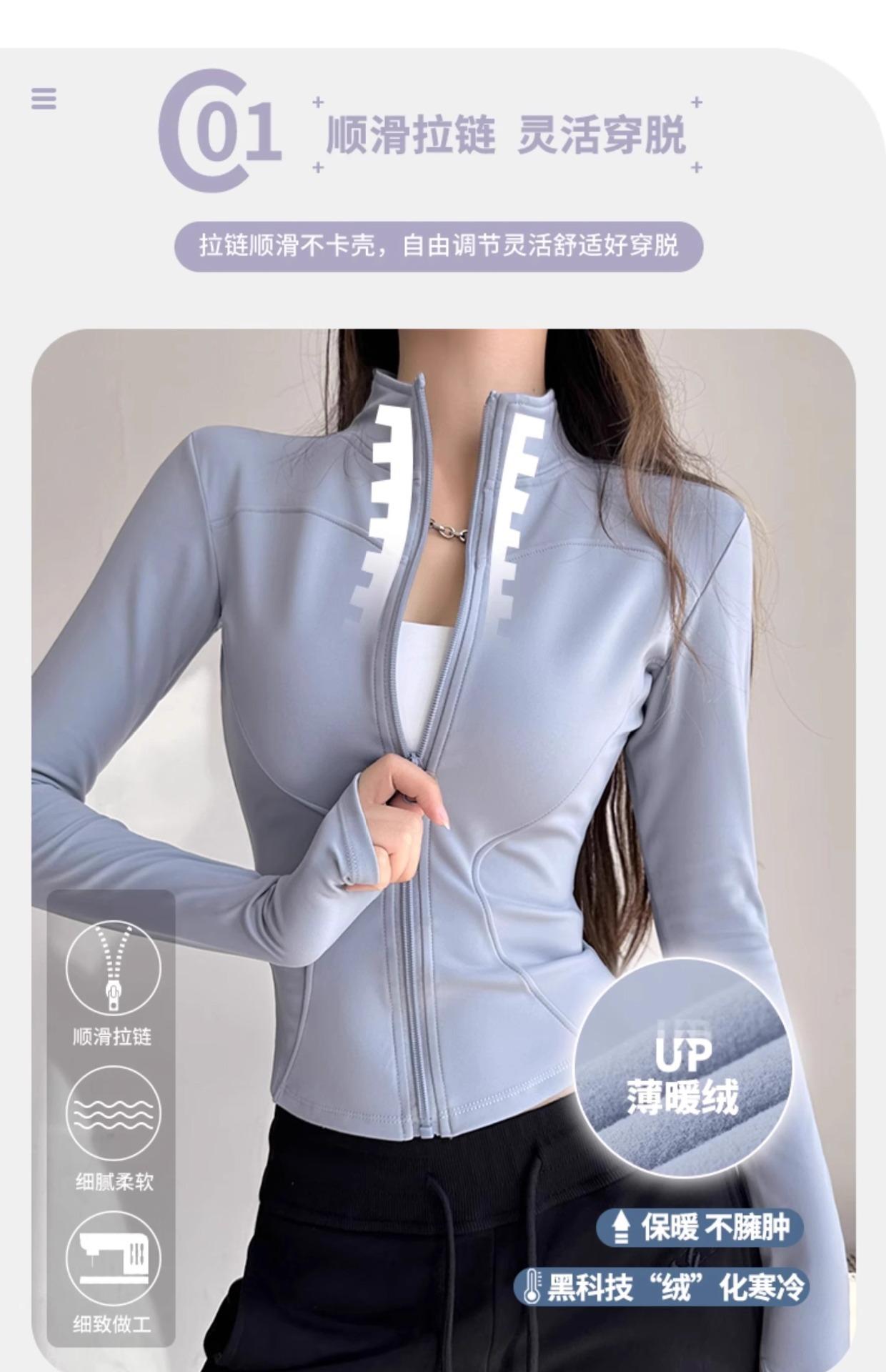 Otoño Exterior Adelgazante Secado Rápido Ropa de Yoga Fitness Entrenamiento Pilates Traje de Yoga Top Más Chaqueta Deportiva de Terciopelo Mujer