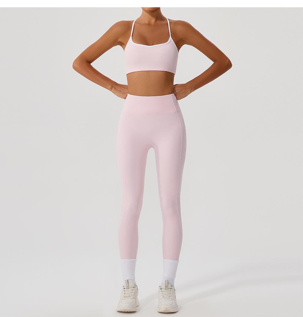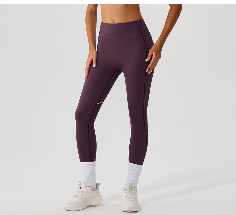Ropa de Yoga de Color Contrastante Europeo y Americano, Pantalones Deportivos de Fitness de Alta Elasticidad Levanta Glúteos, Ropa Exterior Nude de Cintura Alta, Pantalones Deportivos para Correr de Nueve Puntos
