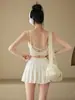 Falda Corta de Yoga Falsa de Dos Piezas Anti-Exposición para Mujer Verano Delgada Cintura Alta Bolsillo Deportes Exterior Secado Rápido Fitness Tenis
