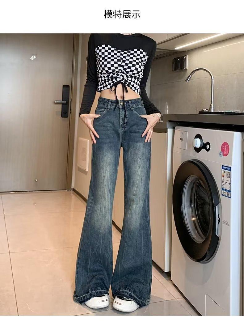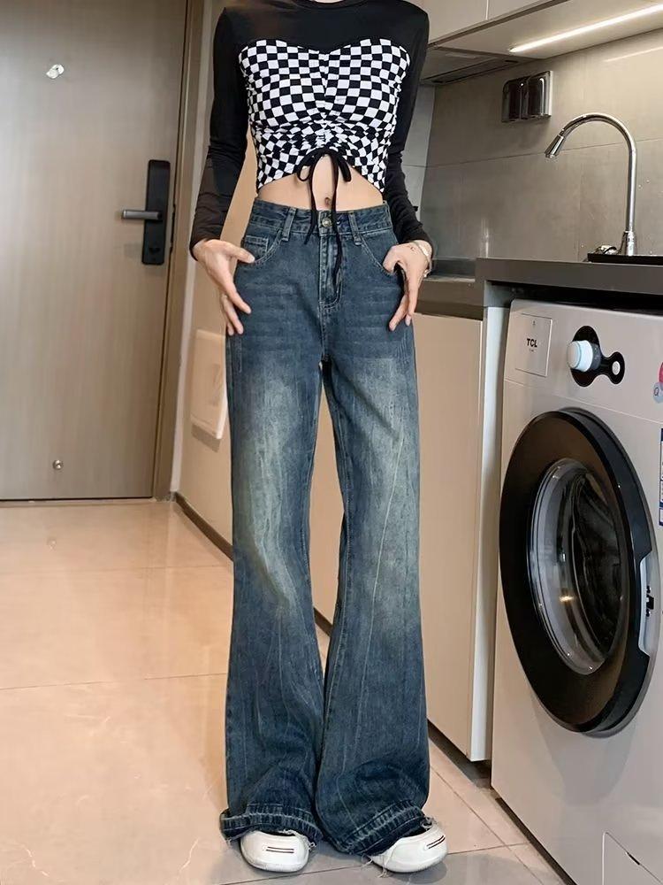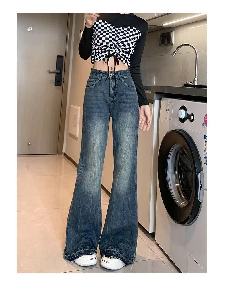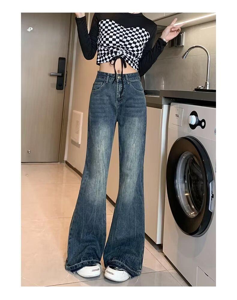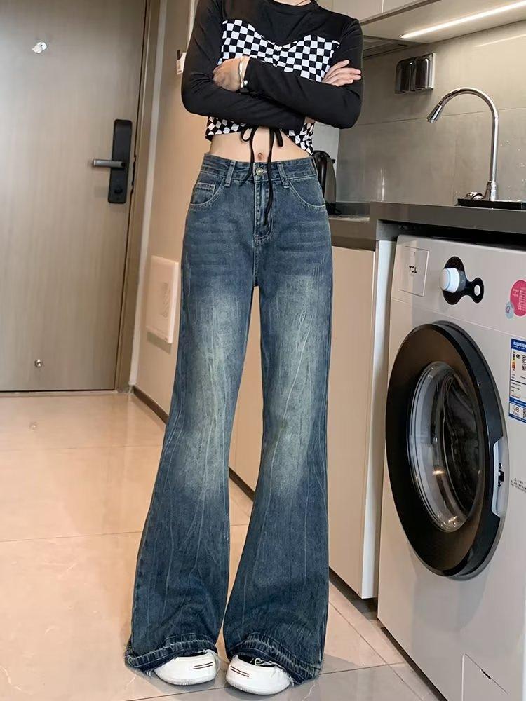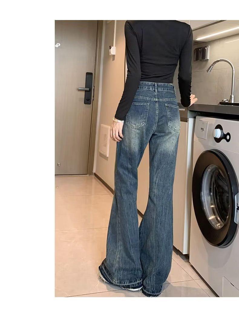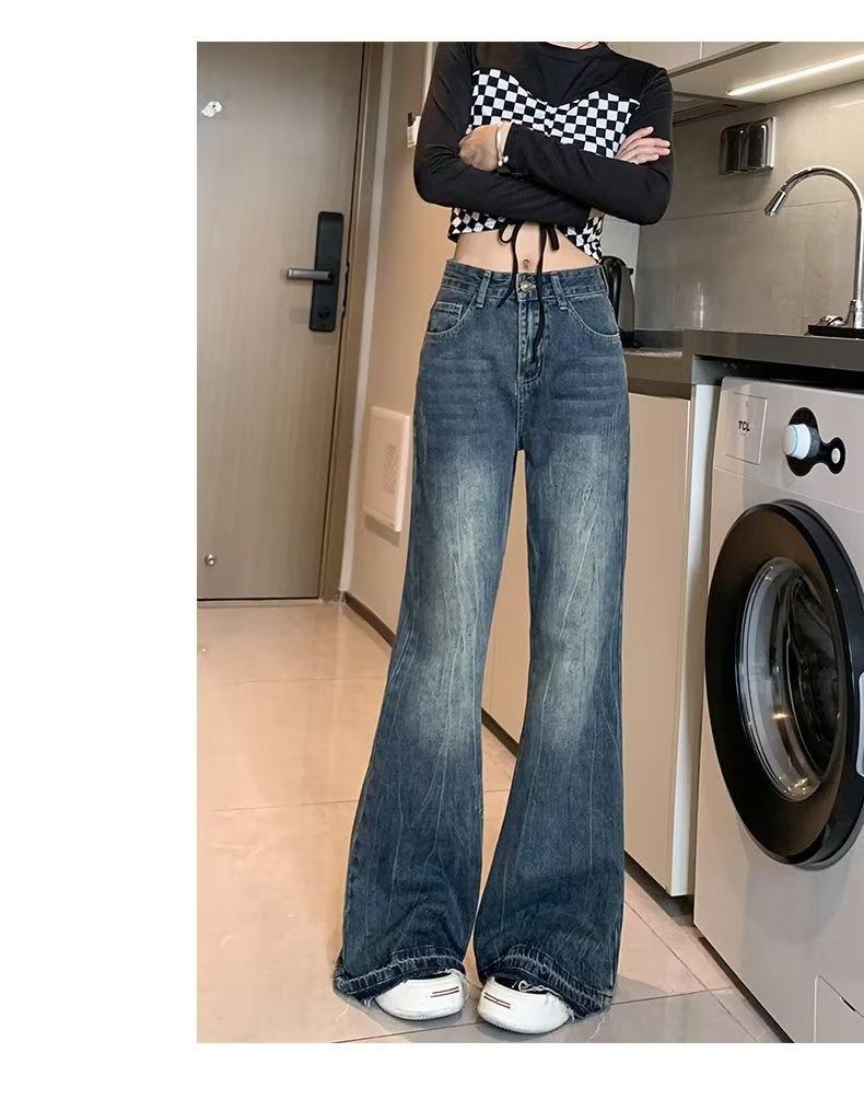 Jeans retro acampanados micro de calle alta americana para mujer otoño nuevos cintura alta sueltos versátiles adelgazantes pantalones de pierna ancha tendencia