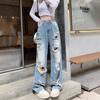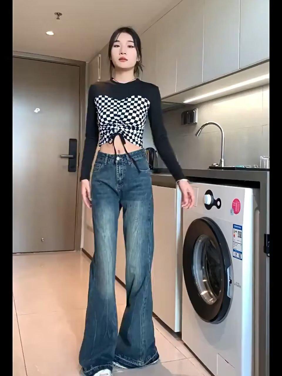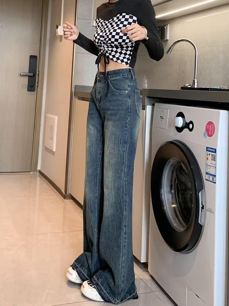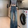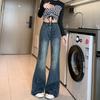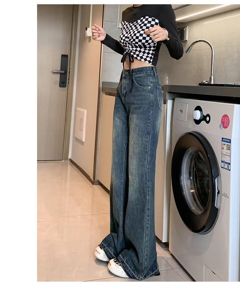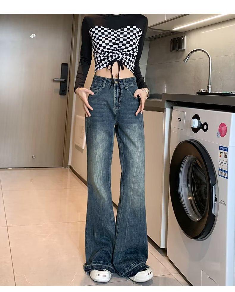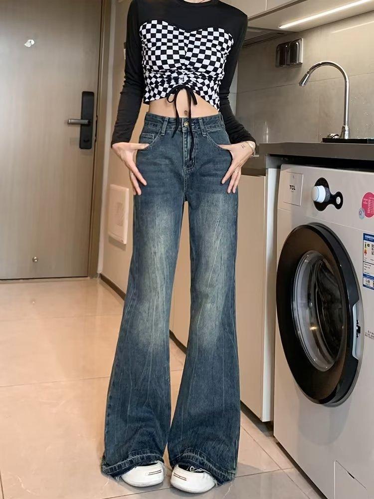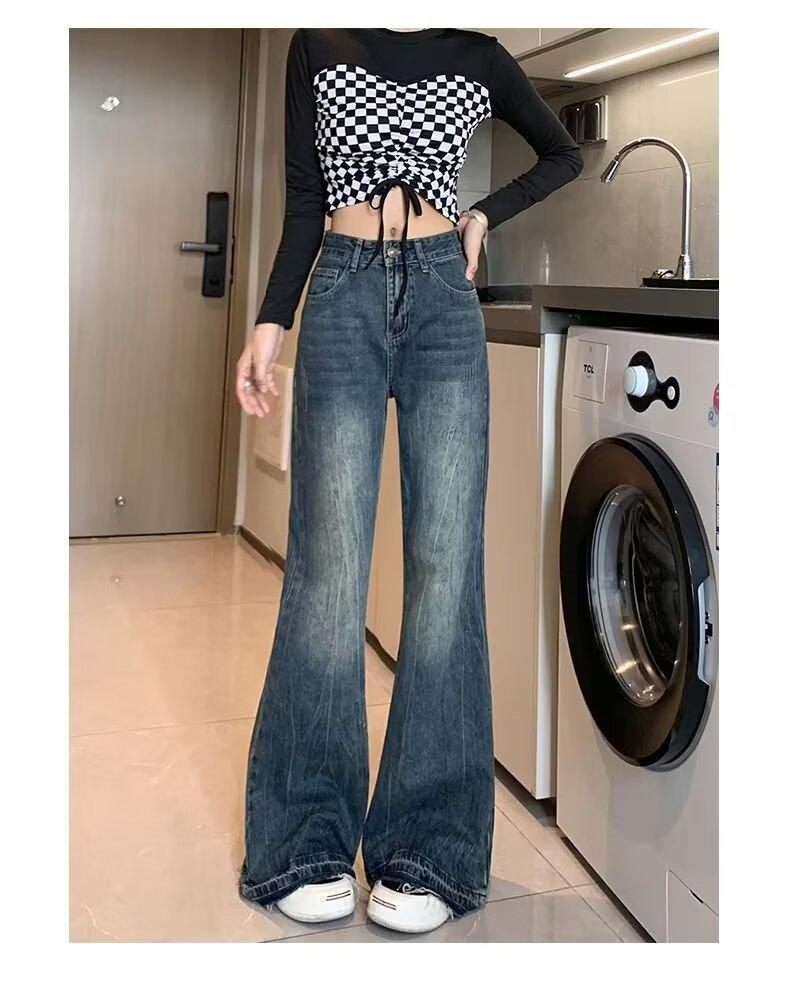 Jeans retro acampanados micro de calle alta americana para mujer otoño nuevos cintura alta sueltos versátiles adelgazantes pantalones de pierna ancha tendencia