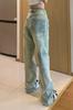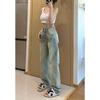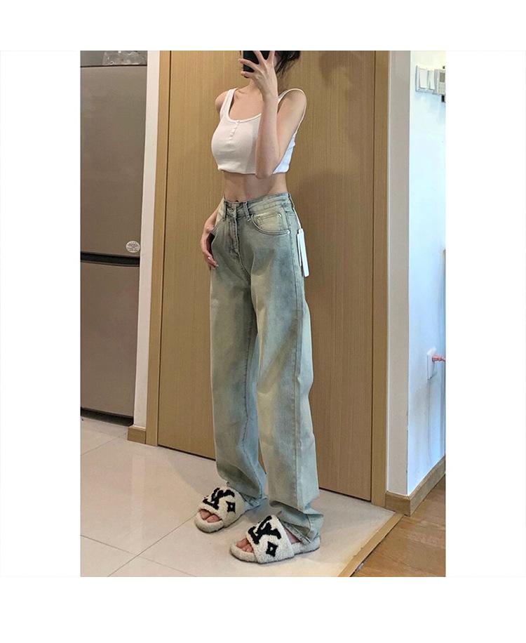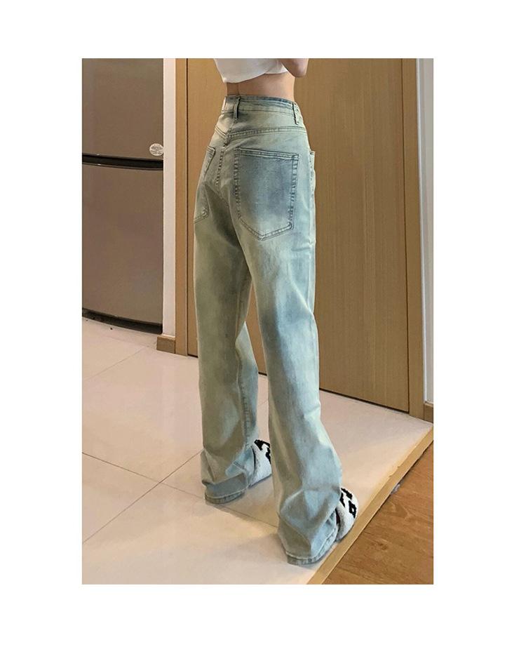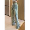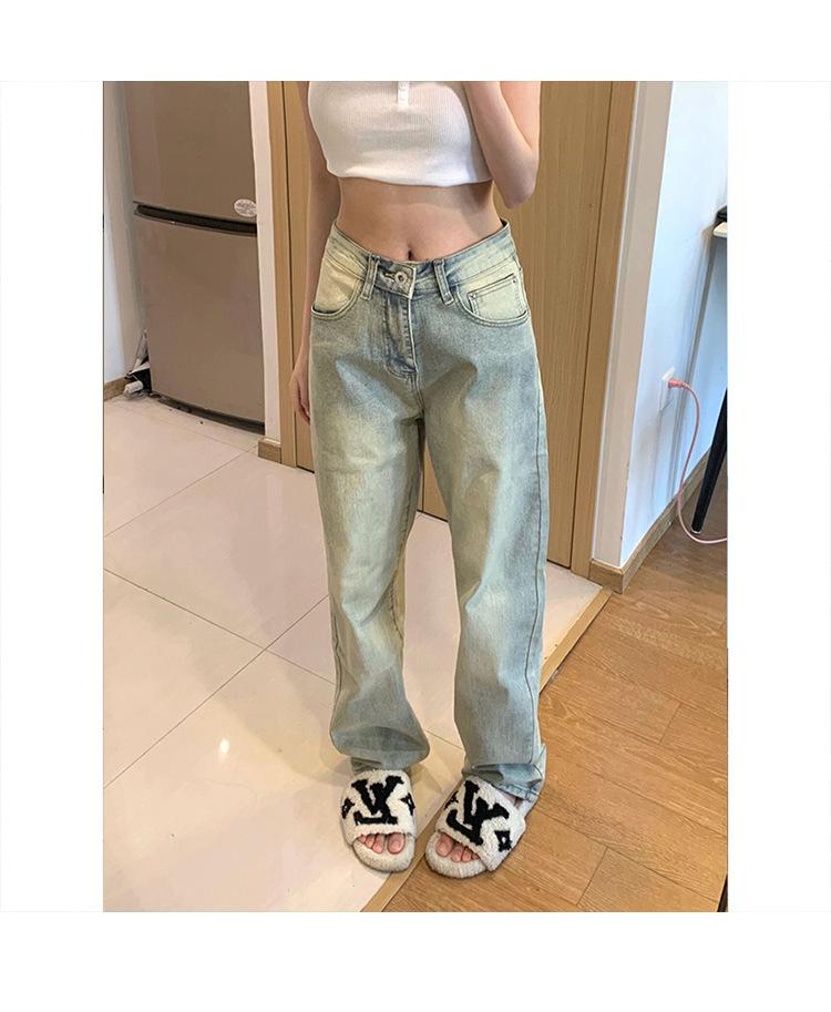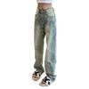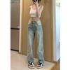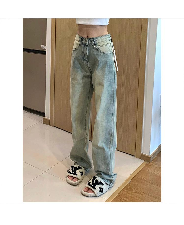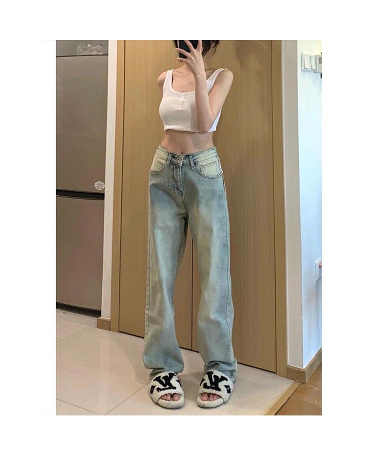 Jeans de Primavera 2022 de Cintura Alta Elásticos de Pierna Recta Larga con Bloque de Color para Mujer, Cintura Alta Adelgazantes Versátiles Pantalones Largos hasta el Piso