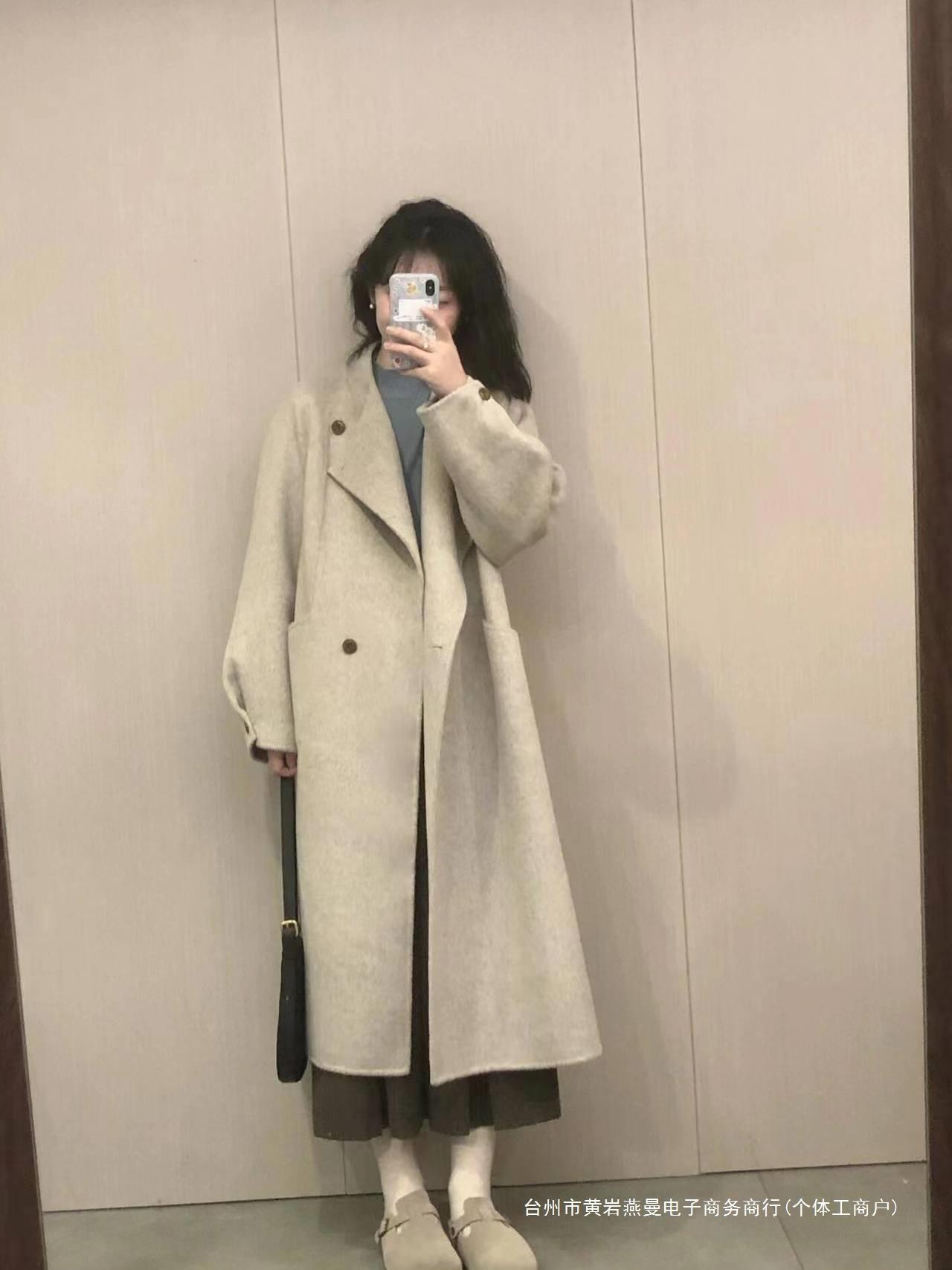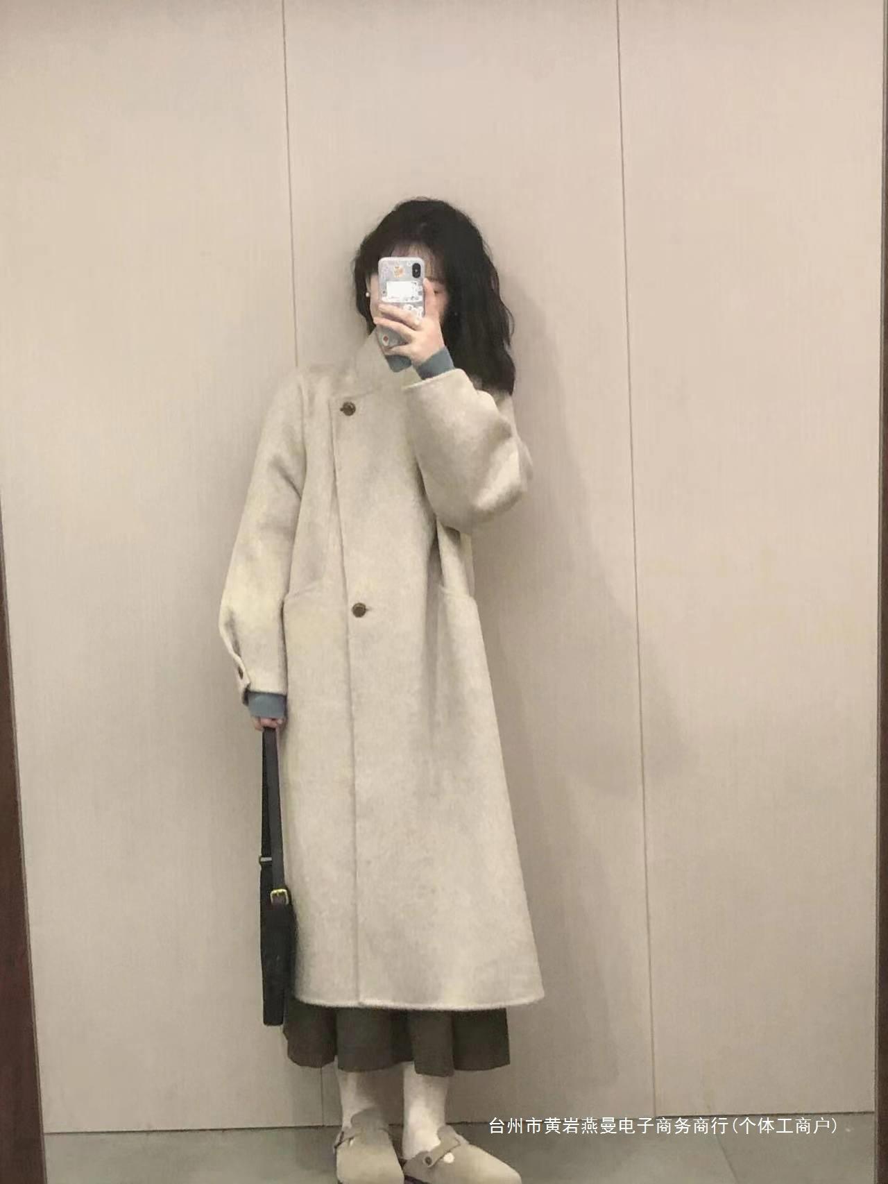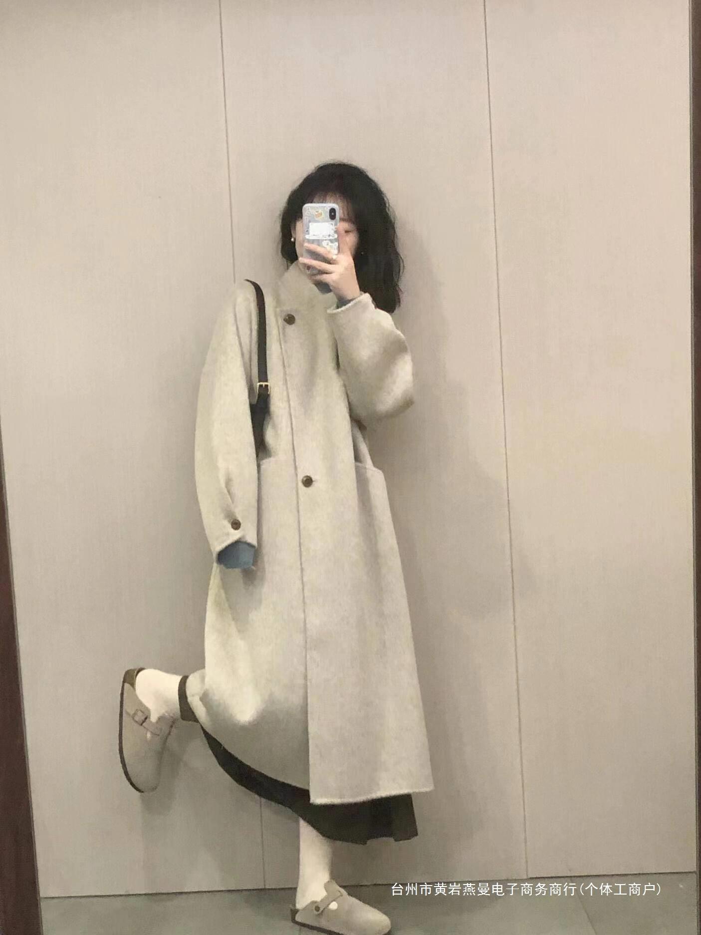 Abrigo de Lana Estilo Coreano para Mujer 2024 Otoño e Invierno Nuevo Abrigo de Lana Sensación Pequeño Estilo Perezoso Largo Medio