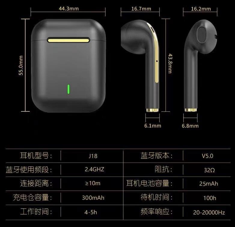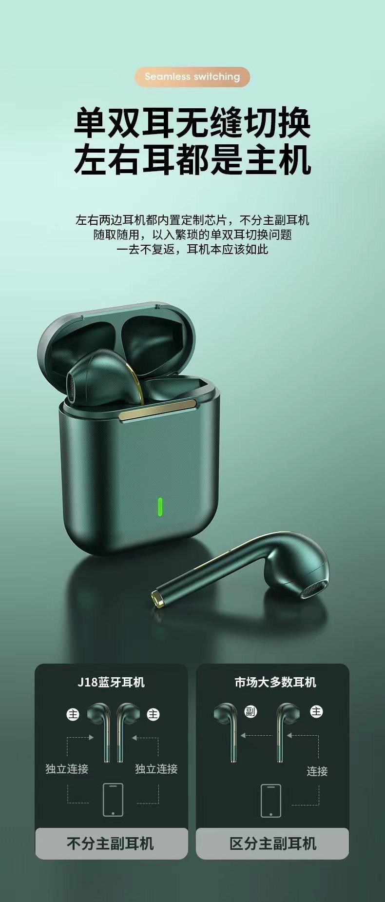 Nuevos Audífonos Bluetooth Inalámbricos Verdaderos Modelo J18 Transfronterizo Audífonos Deportivos Estéreo In-Ear Ventas Directas de Fábrica Mayoreo