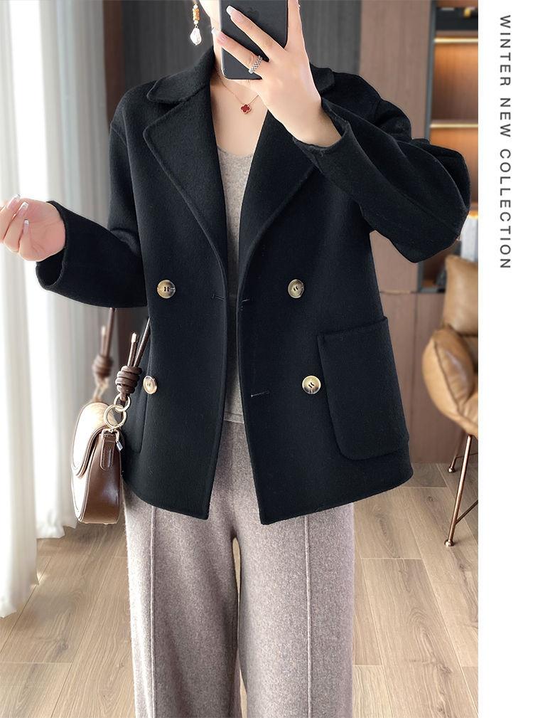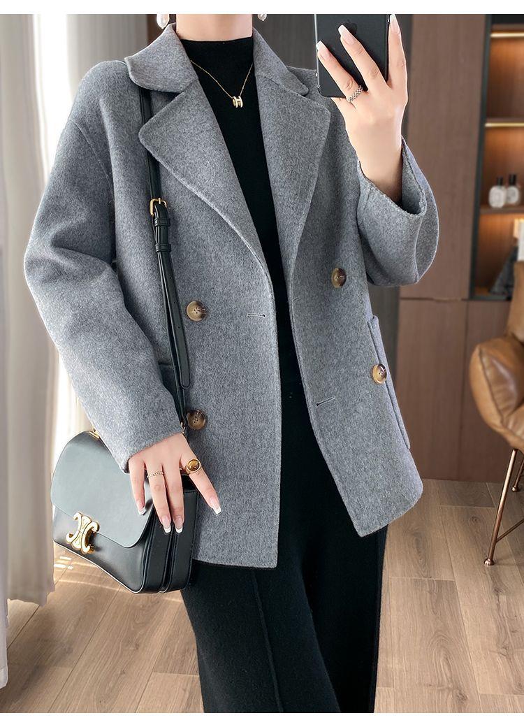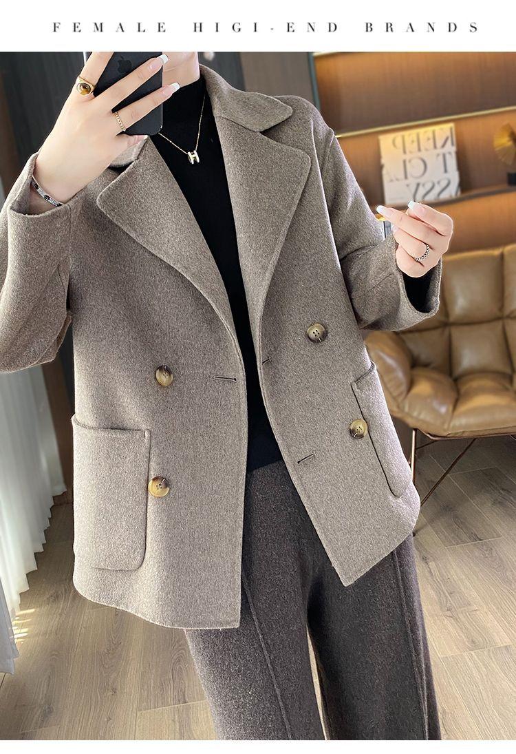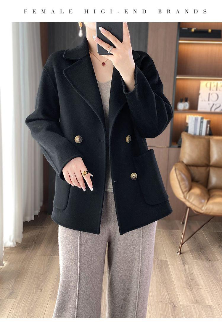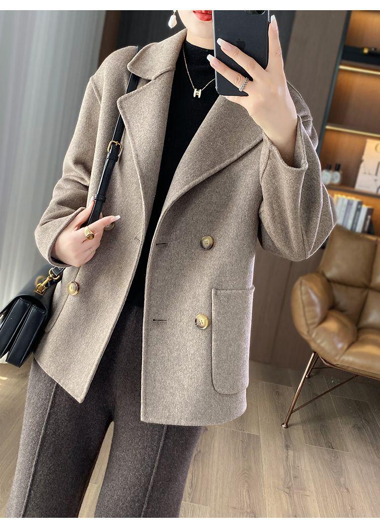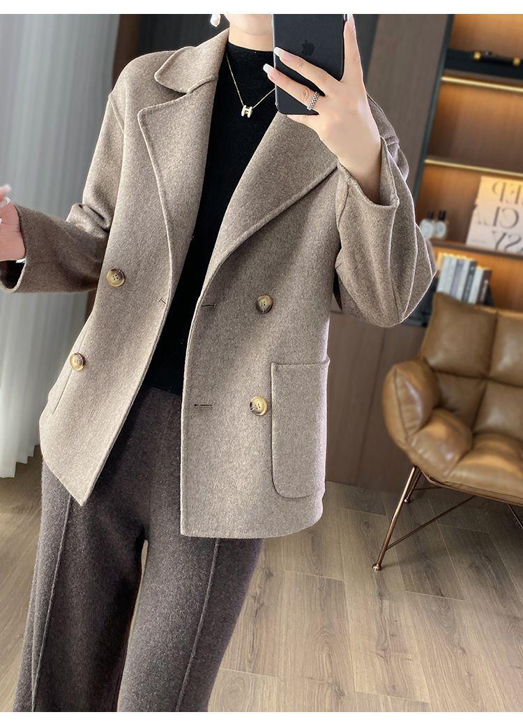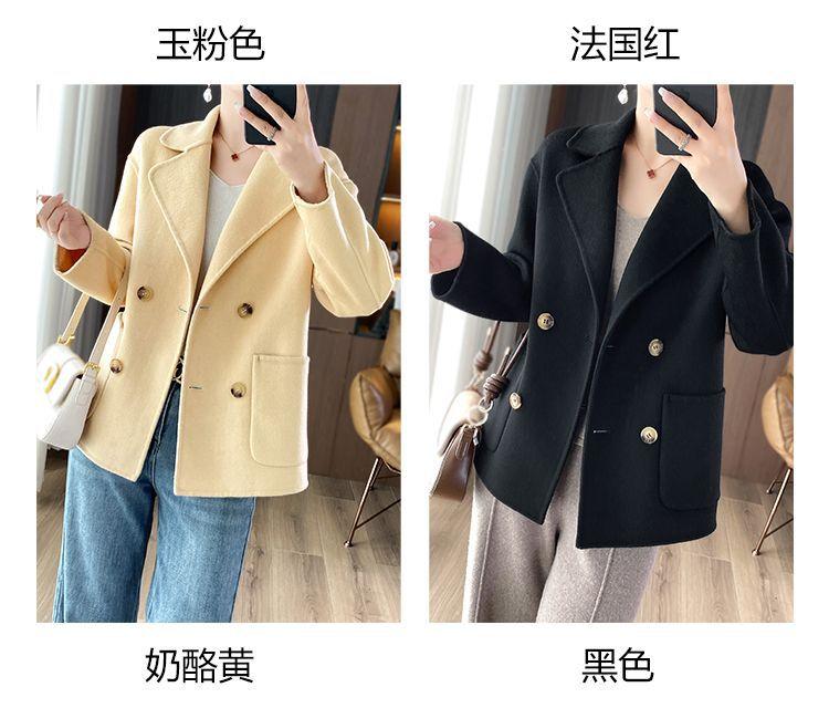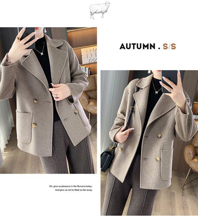 Abrigo de Lana para Mujer 2024 Corto Otoño e Invierno Conjunto Holgado Fuera de Temporada Abrigo de Lana con Cuello de Traje para Mujeres Pequeñas a la Moda