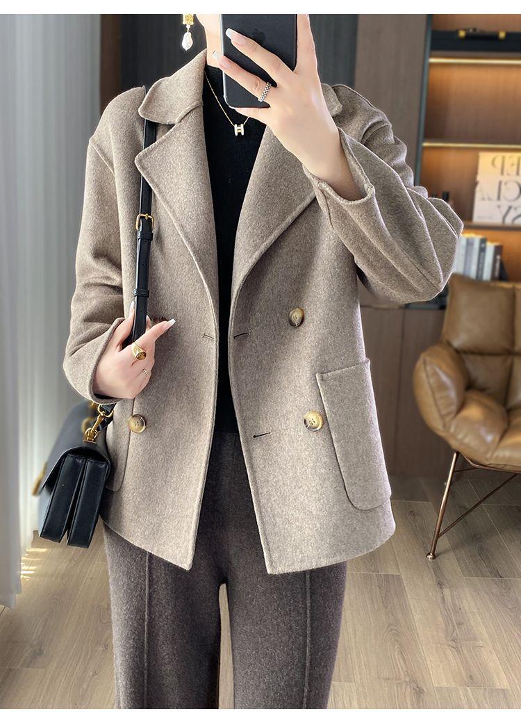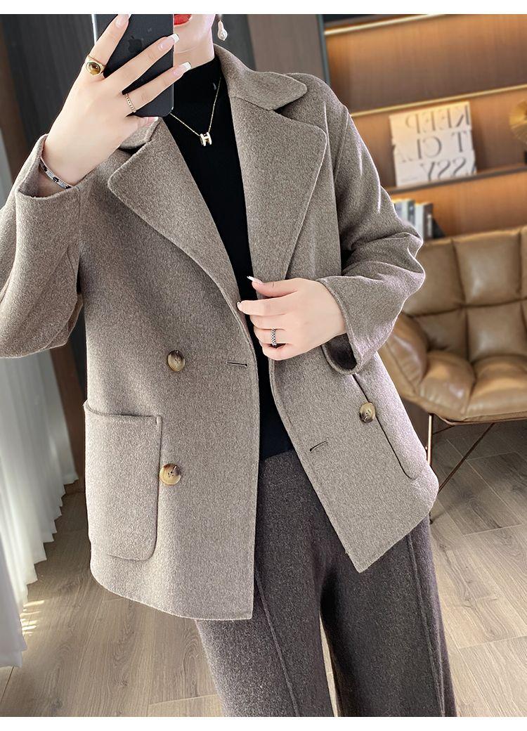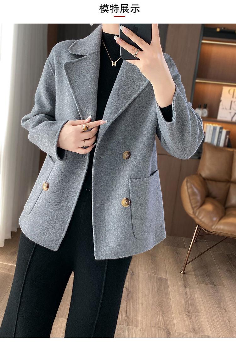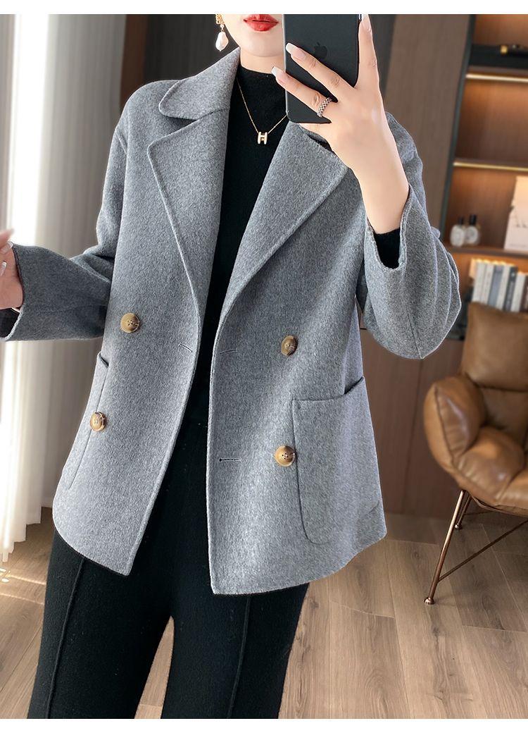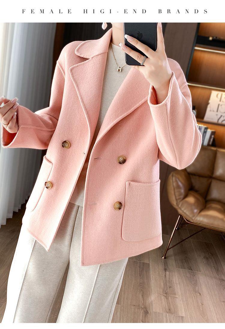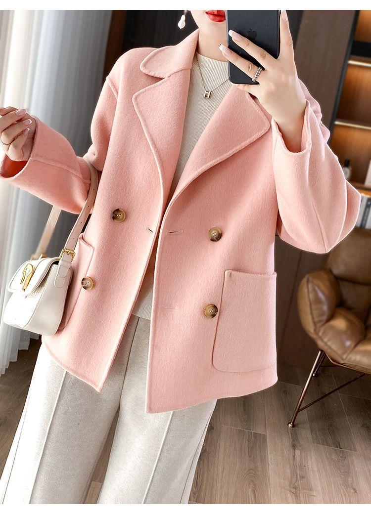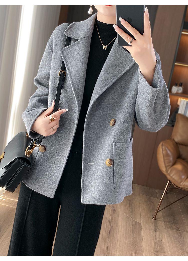 Abrigo de Lana para Mujer 2024 Corto Otoño e Invierno Conjunto Holgado Fuera de Temporada Abrigo de Lana con Cuello de Traje para Mujeres Pequeñas a la Moda