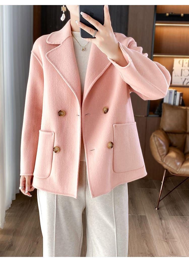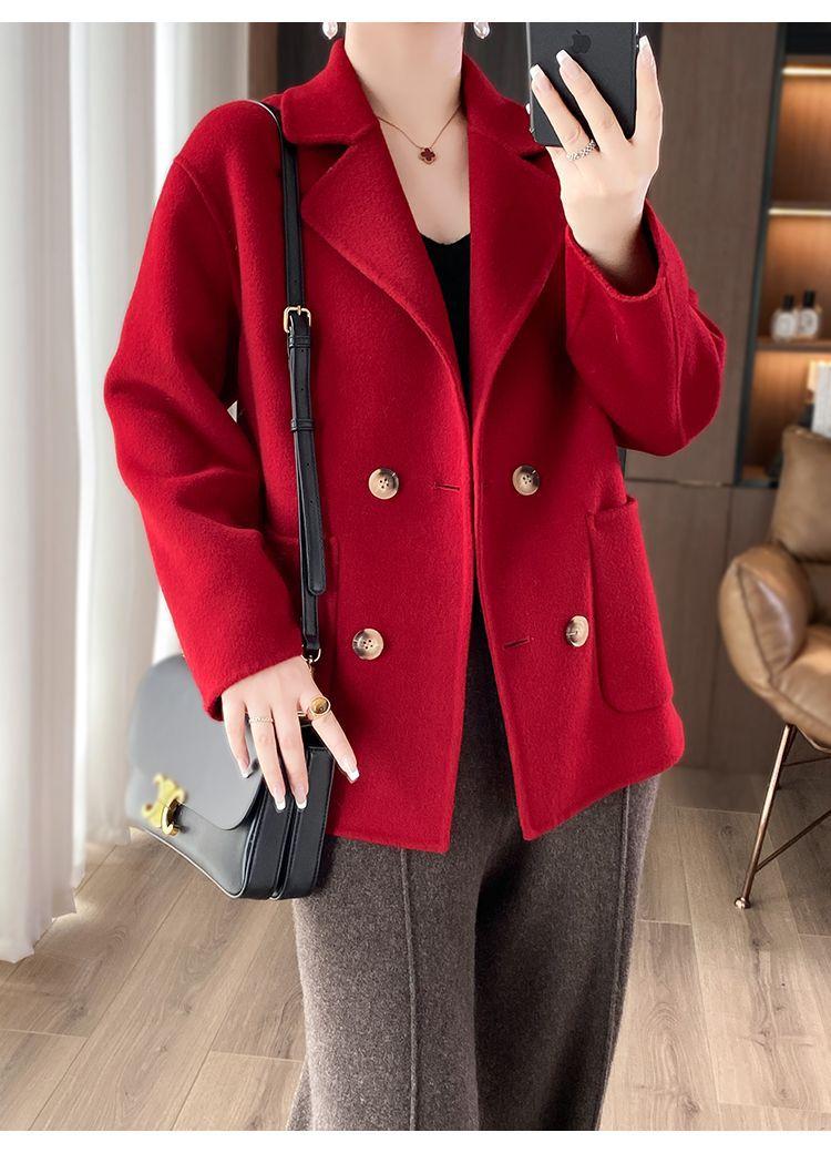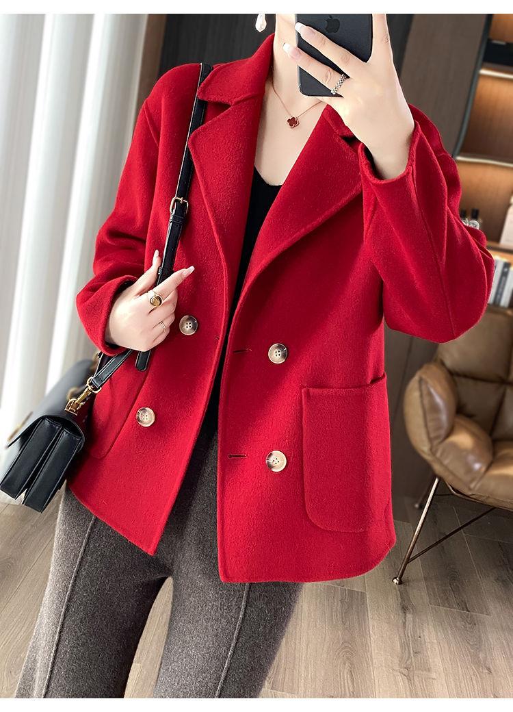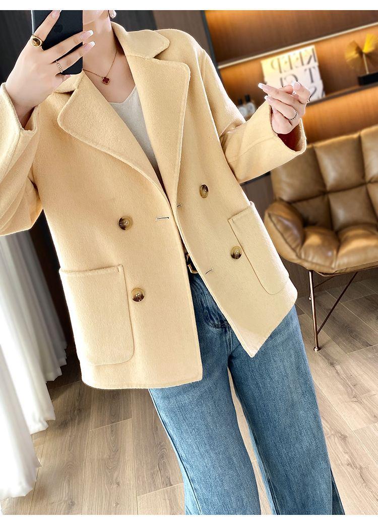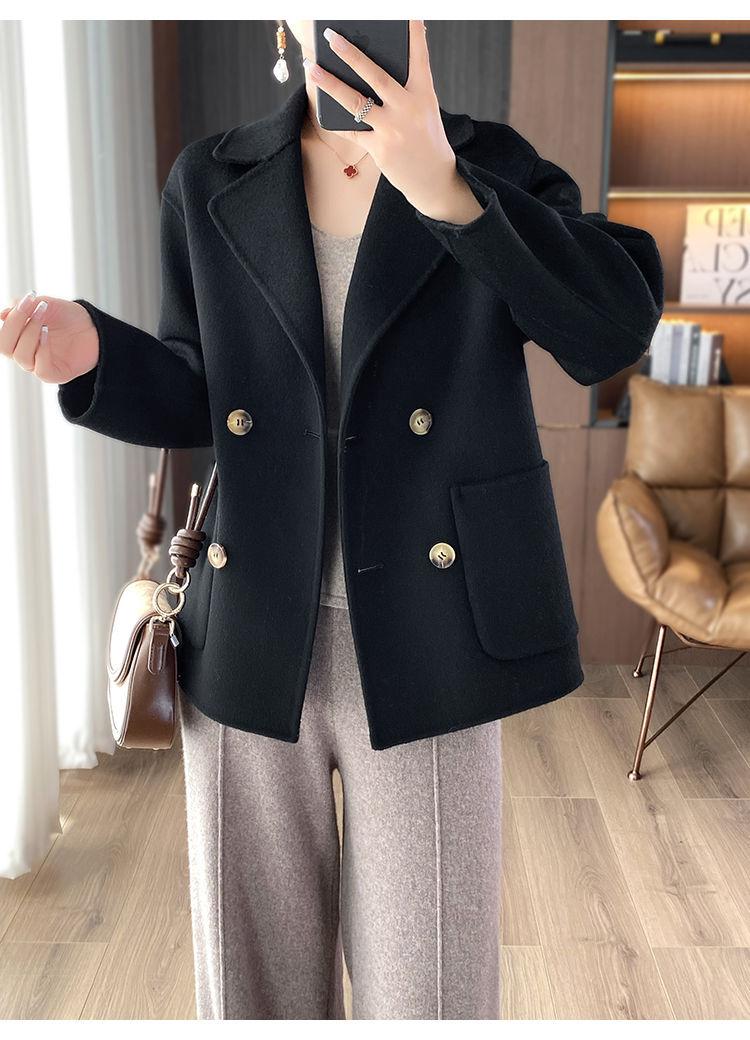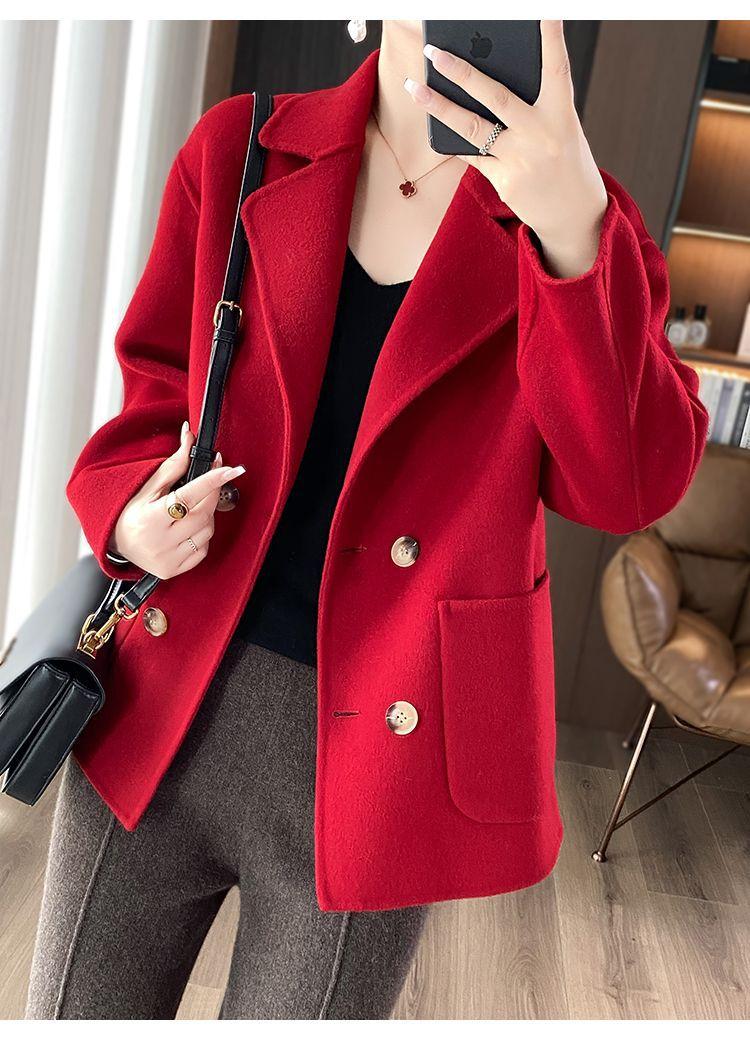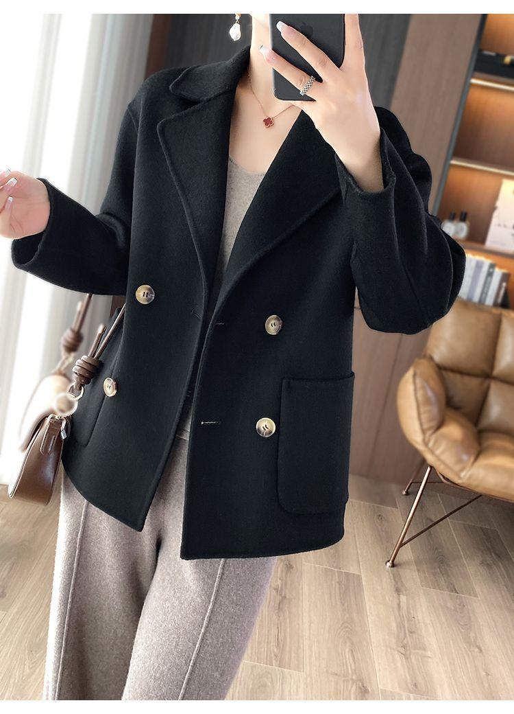 Abrigo de Lana para Mujer 2024 Corto Otoño e Invierno Conjunto Holgado Fuera de Temporada Abrigo de Lana con Cuello de Traje para Mujeres Pequeñas a la Moda