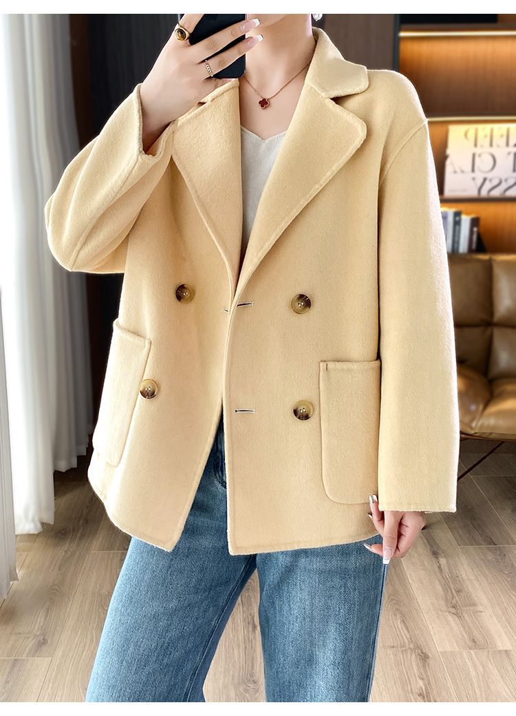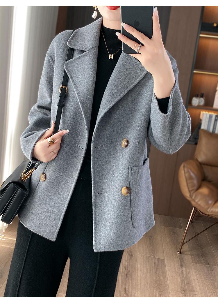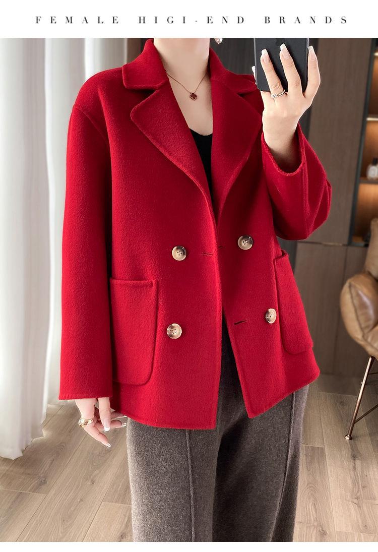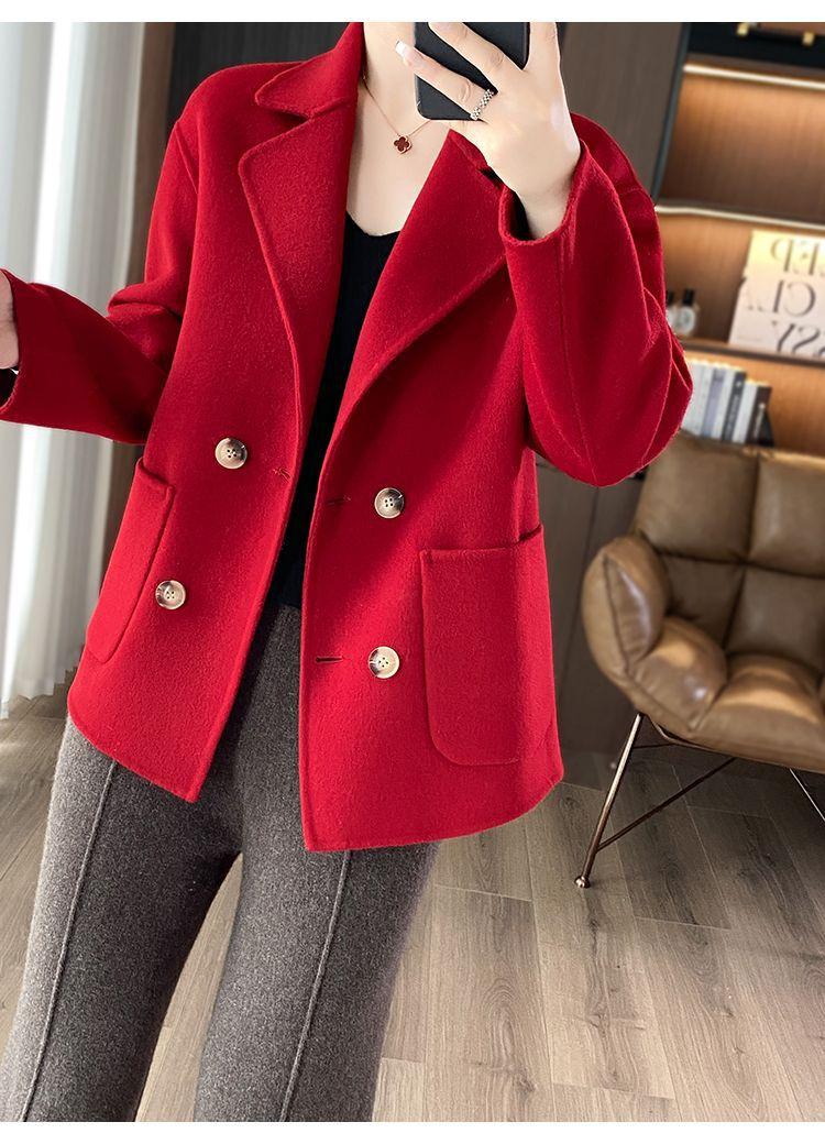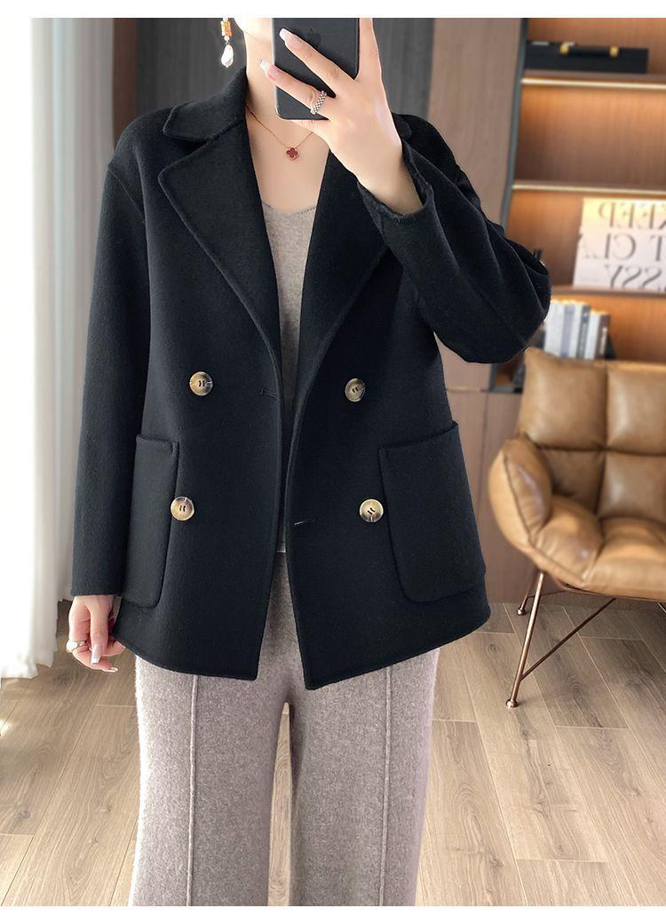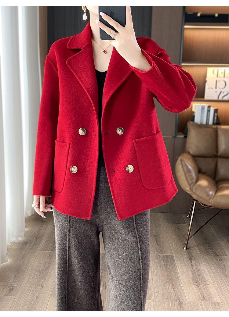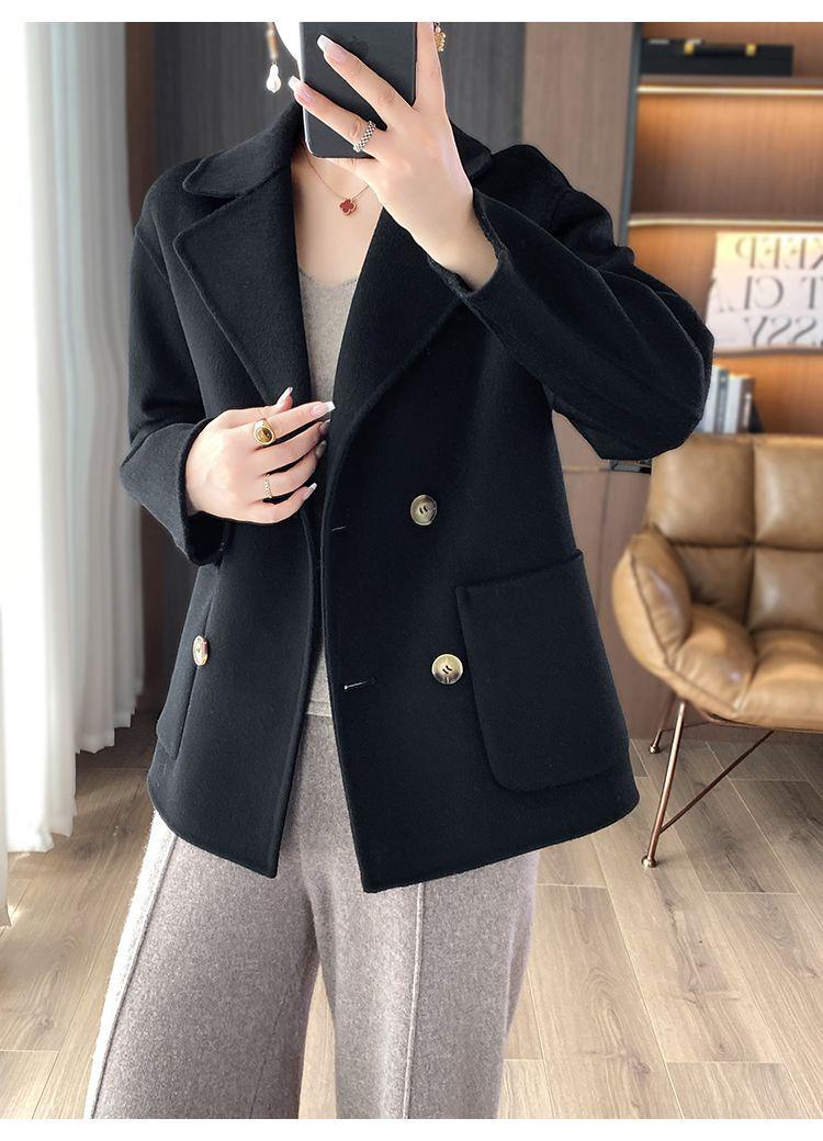 Abrigo de Lana para Mujer 2024 Corto Otoño e Invierno Conjunto Holgado Fuera de Temporada Abrigo de Lana con Cuello de Traje para Mujeres Pequeñas a la Moda
