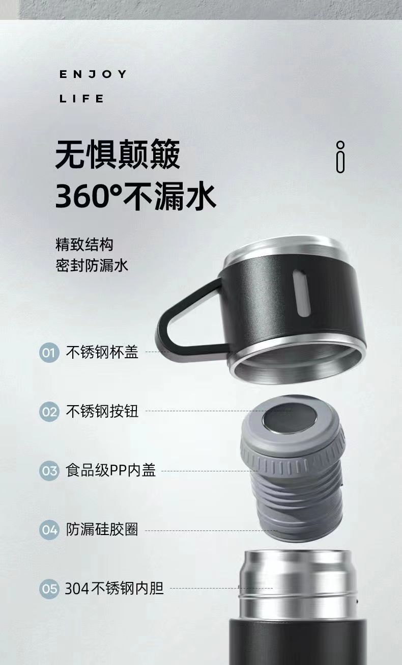 Vaso Termo Nuevo de Acero Inoxidable 304 Un Vaso Tres Tapas Caja de Regalo Vaso de Regalo Empresarial Sencillo Vaso Termo de Gran Capacidad