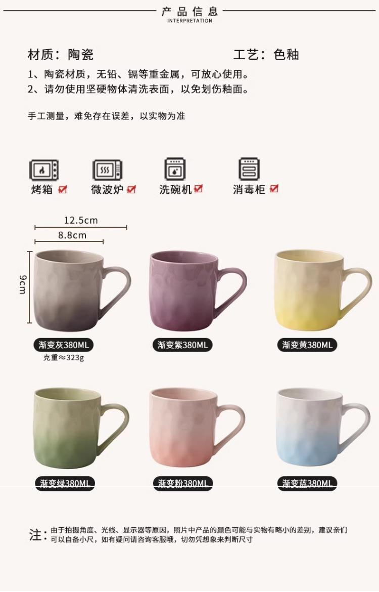 Taza Degradada de Alto Valor para el Hogar Taza para Beber para Niña Diseño Sensorial Taza de Cerámica Taza para Pareja Taza para Desayuno Taza para Café