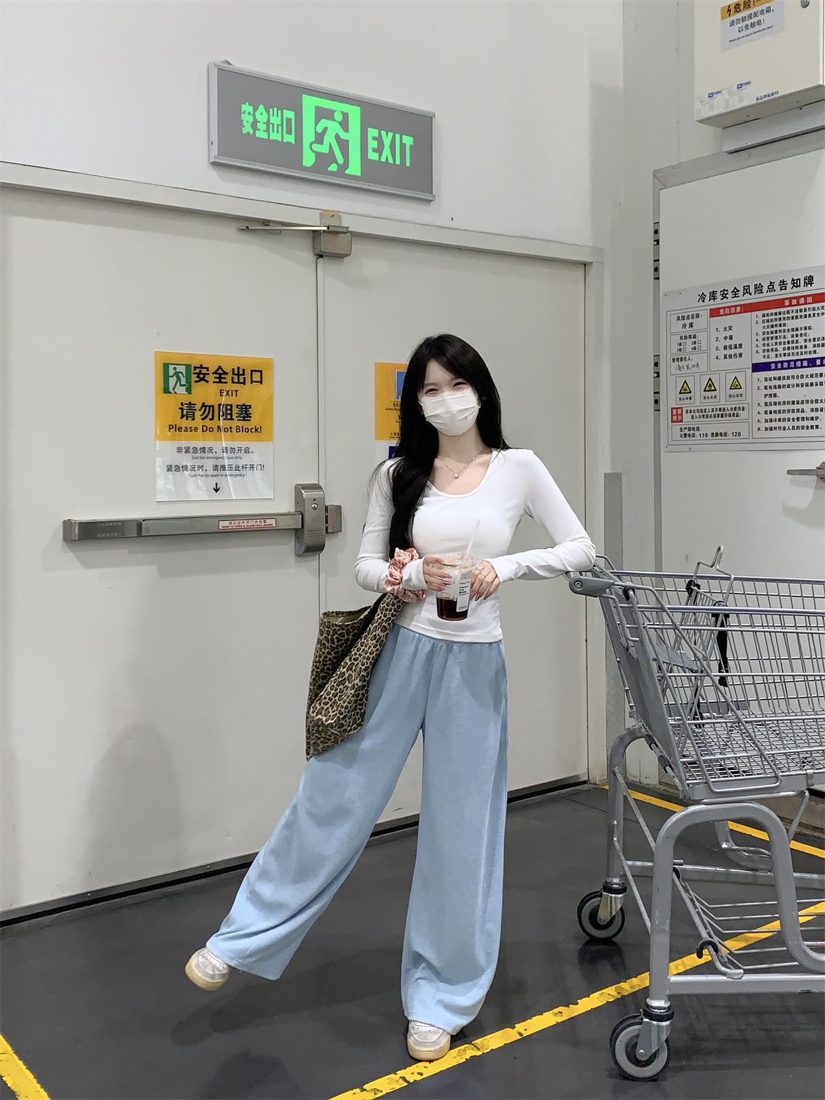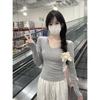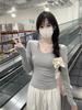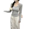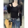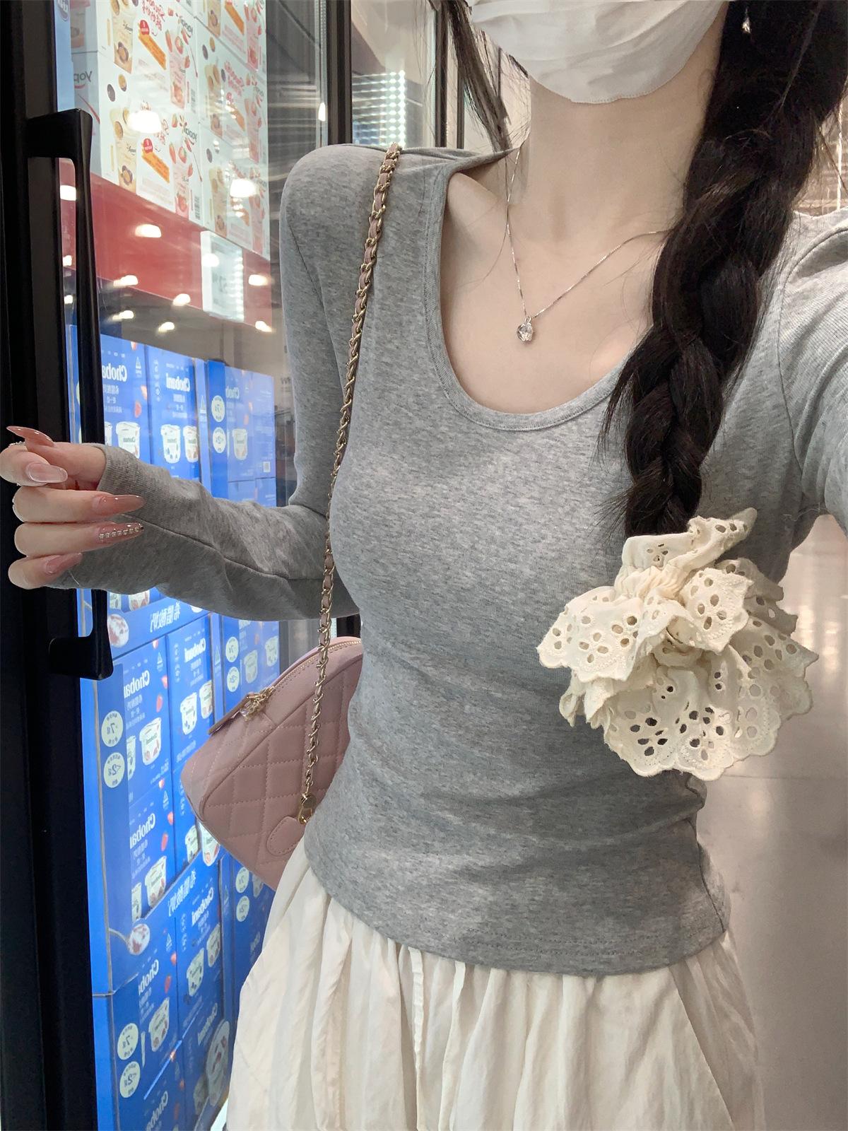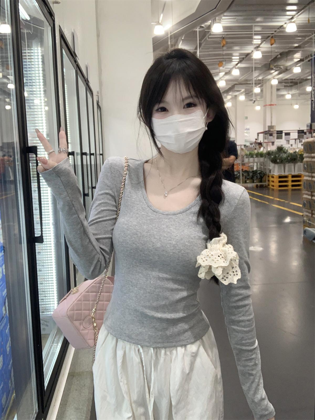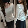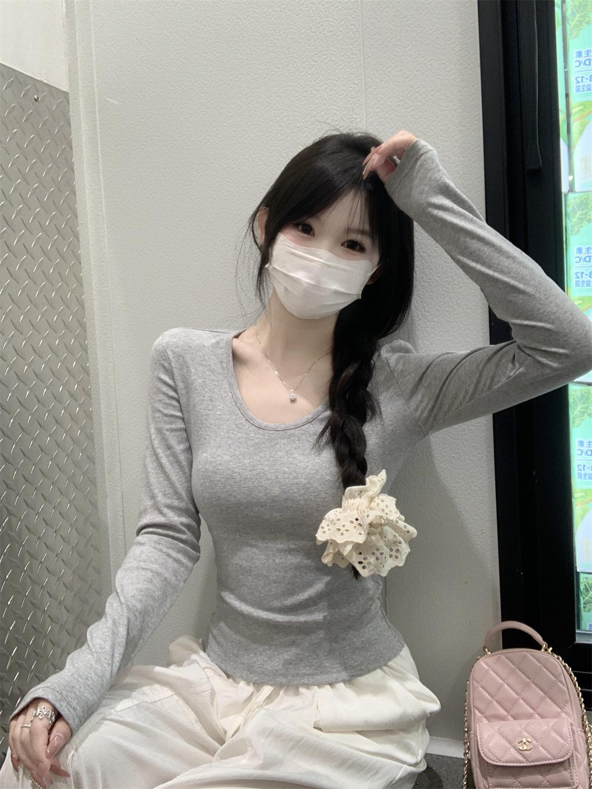 Cosas buenas otoño 2025 estilo coreano corte ajustado chica hot hombro recto color sólido cuello U interior camiseta de manga larga camisa base ropa de mujer top