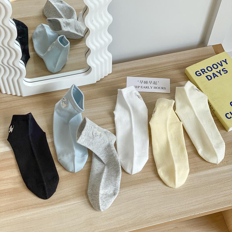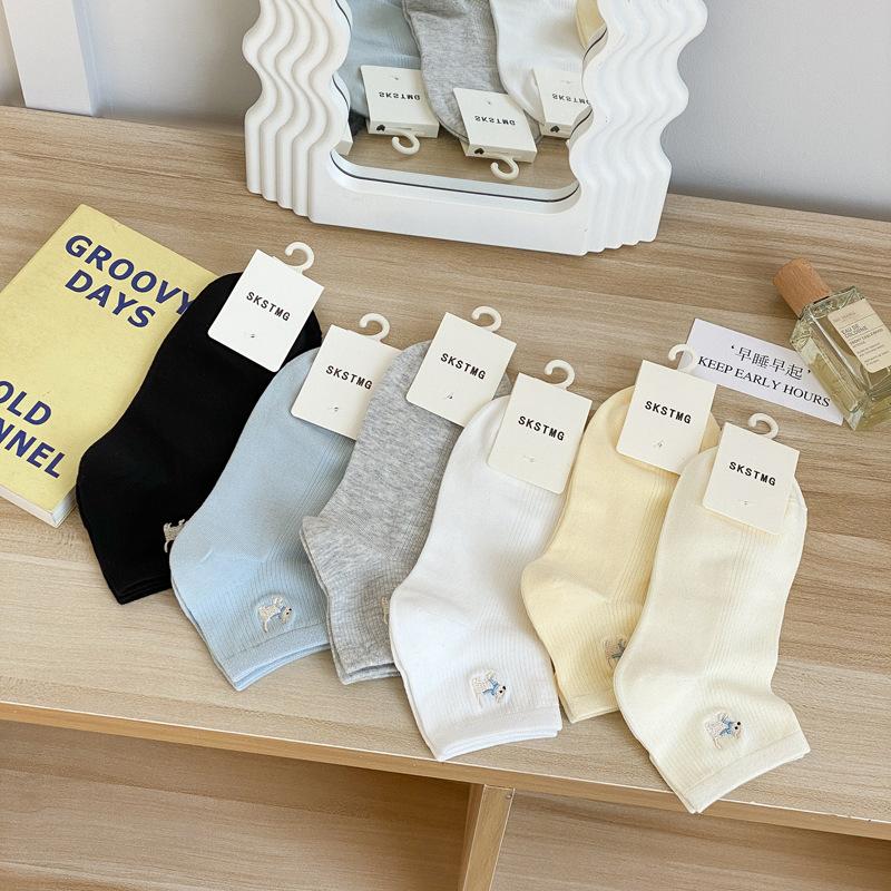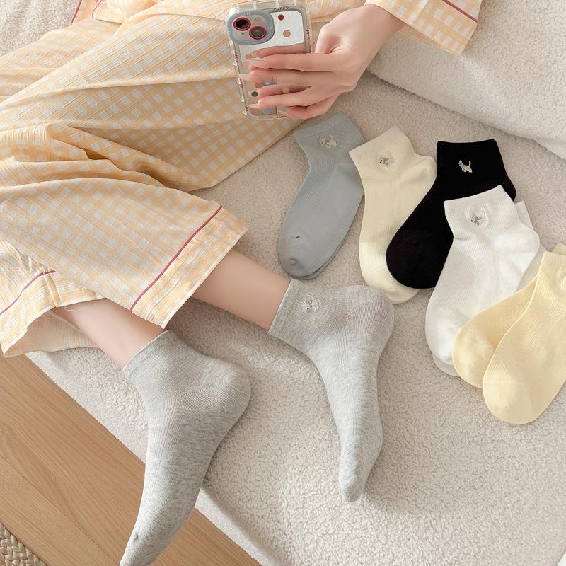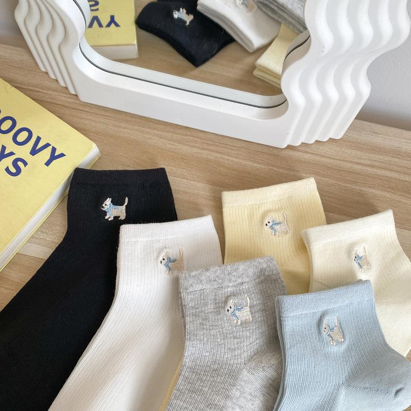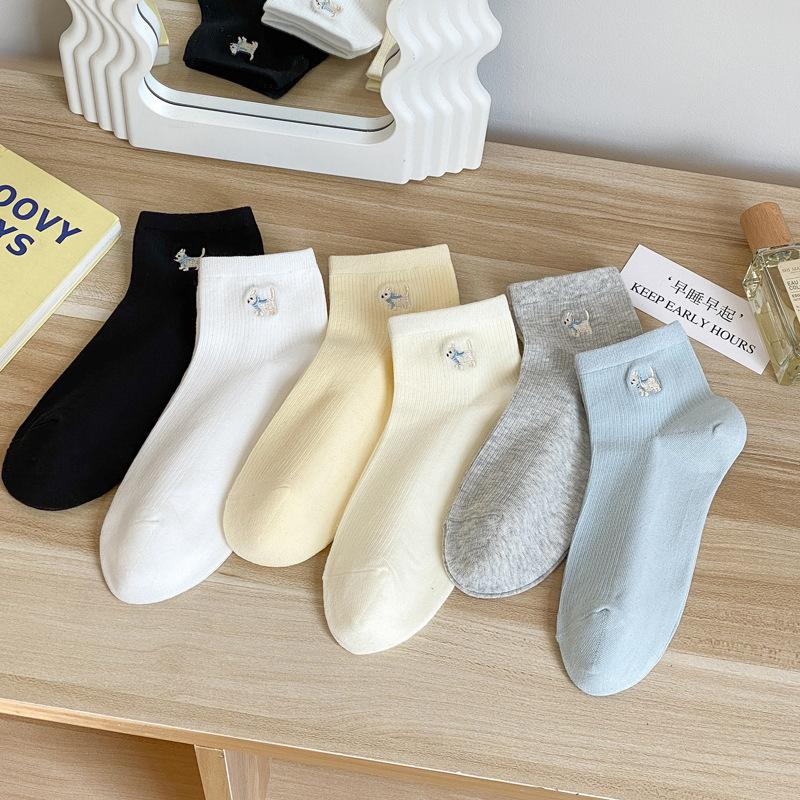 Calcetines de mujer primavera verano color sólido bordado calcetines de cachorro lindos algodón transpirables absorbe el sudor tubo corto versátiles estilo preppy calcetines de mujer