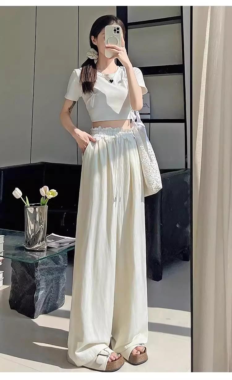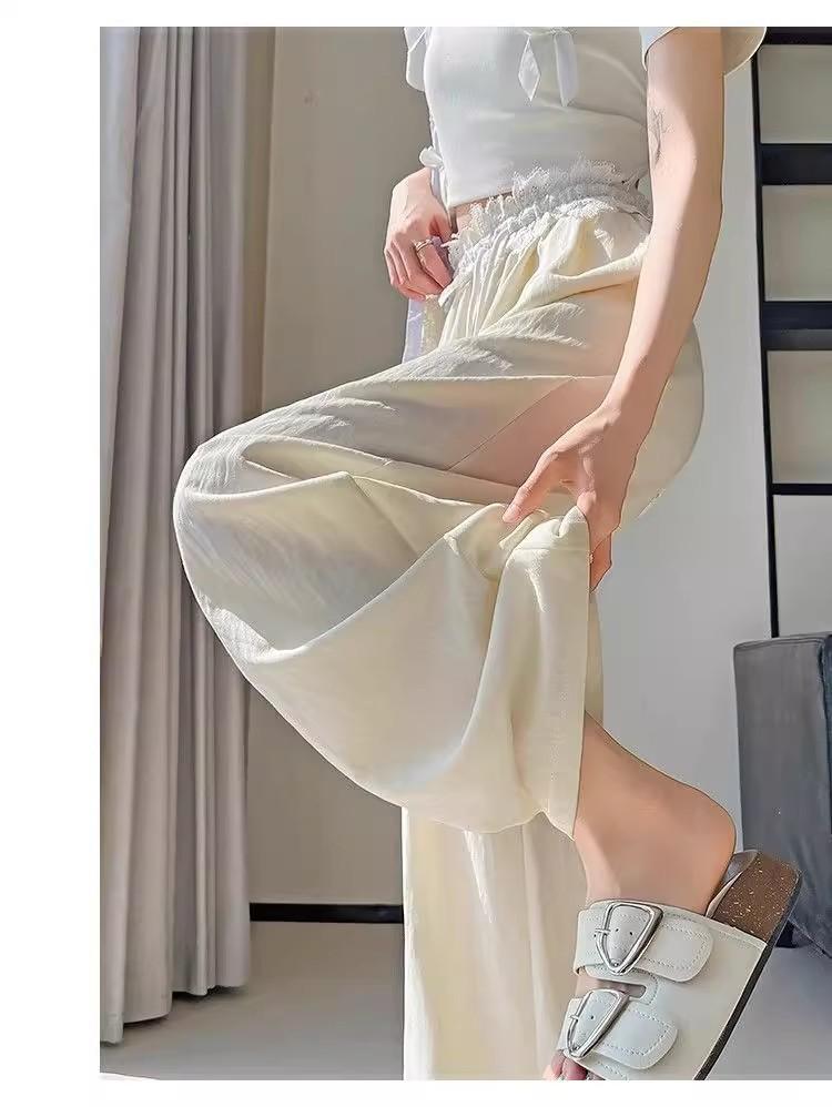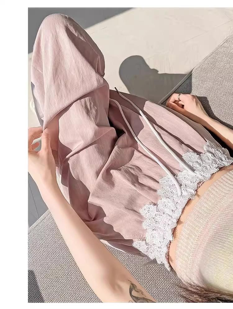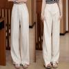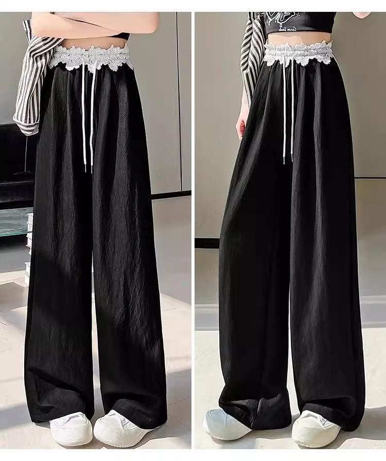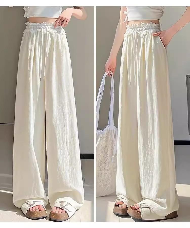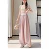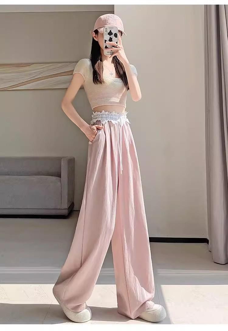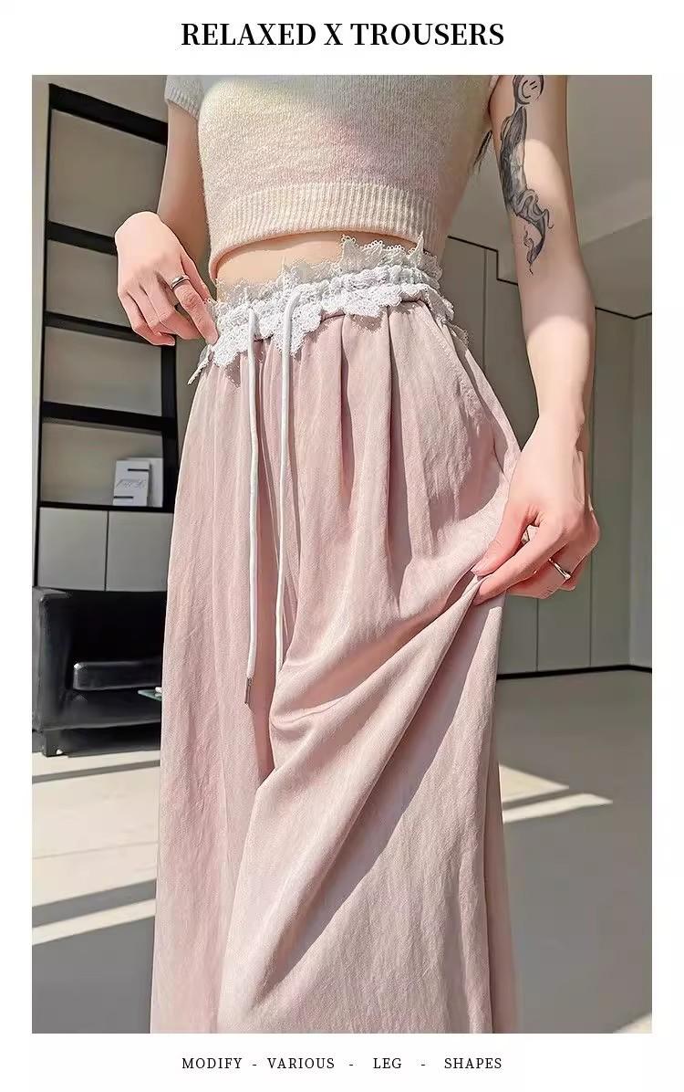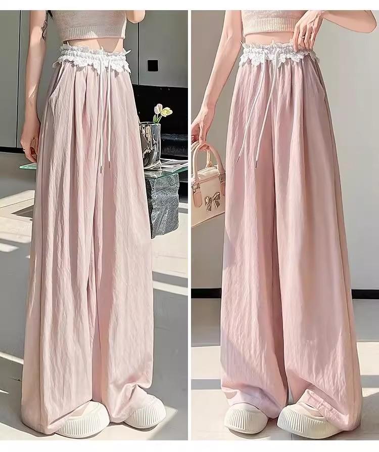 Pantalones rosas de pierna ancha de encaje Tencel Algodón y Lino para Mujer Verano 2025 Nuevo Cintura Alta Slim Rectos Casuales