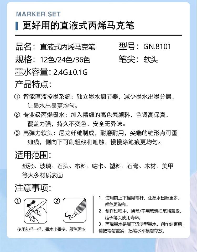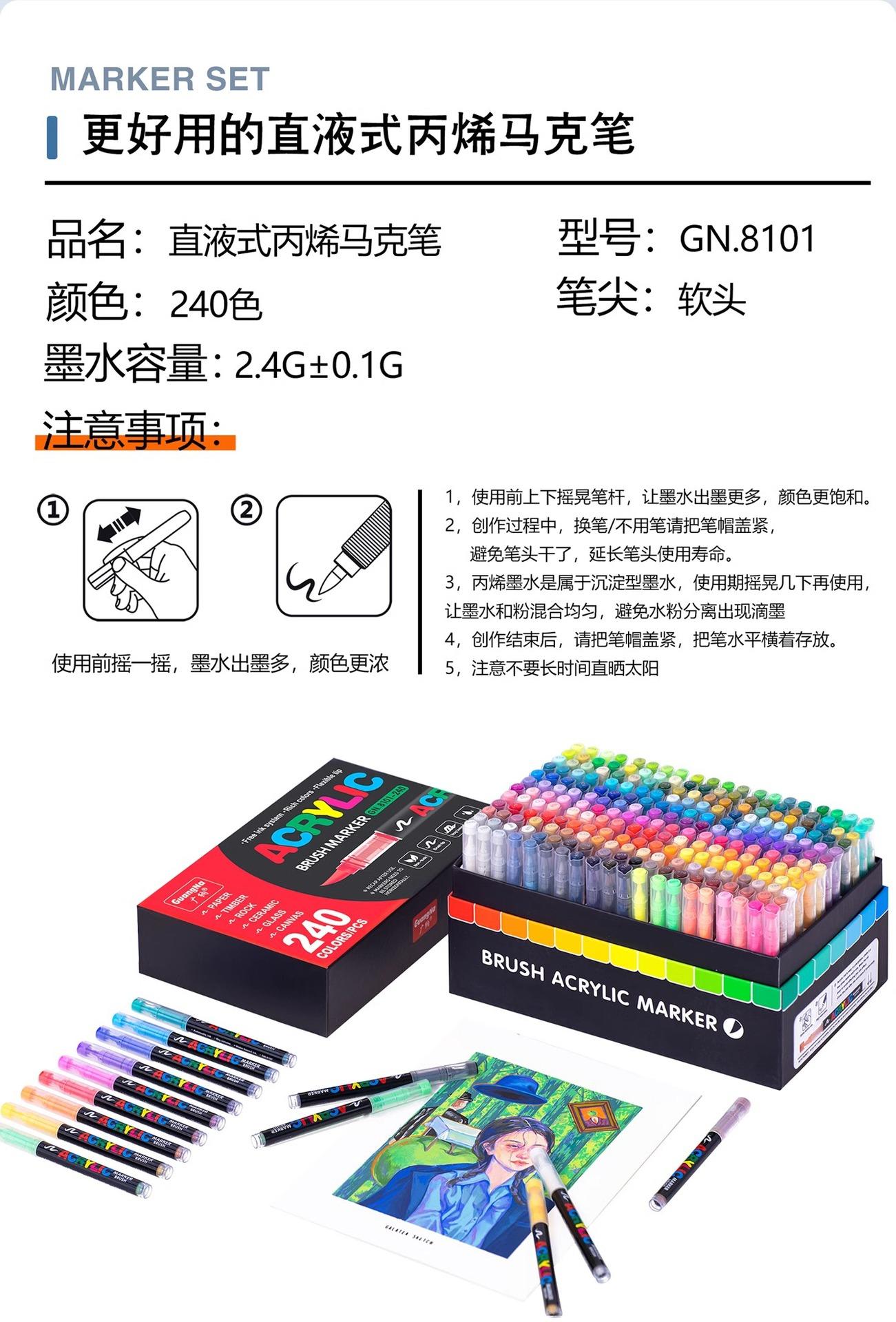 Marcador Acrílico Blanco de Líquido Directo Guangna 8101 Punta Suave Estudiante de Arte Animación diy Pintura a Mano Apilable Color