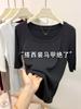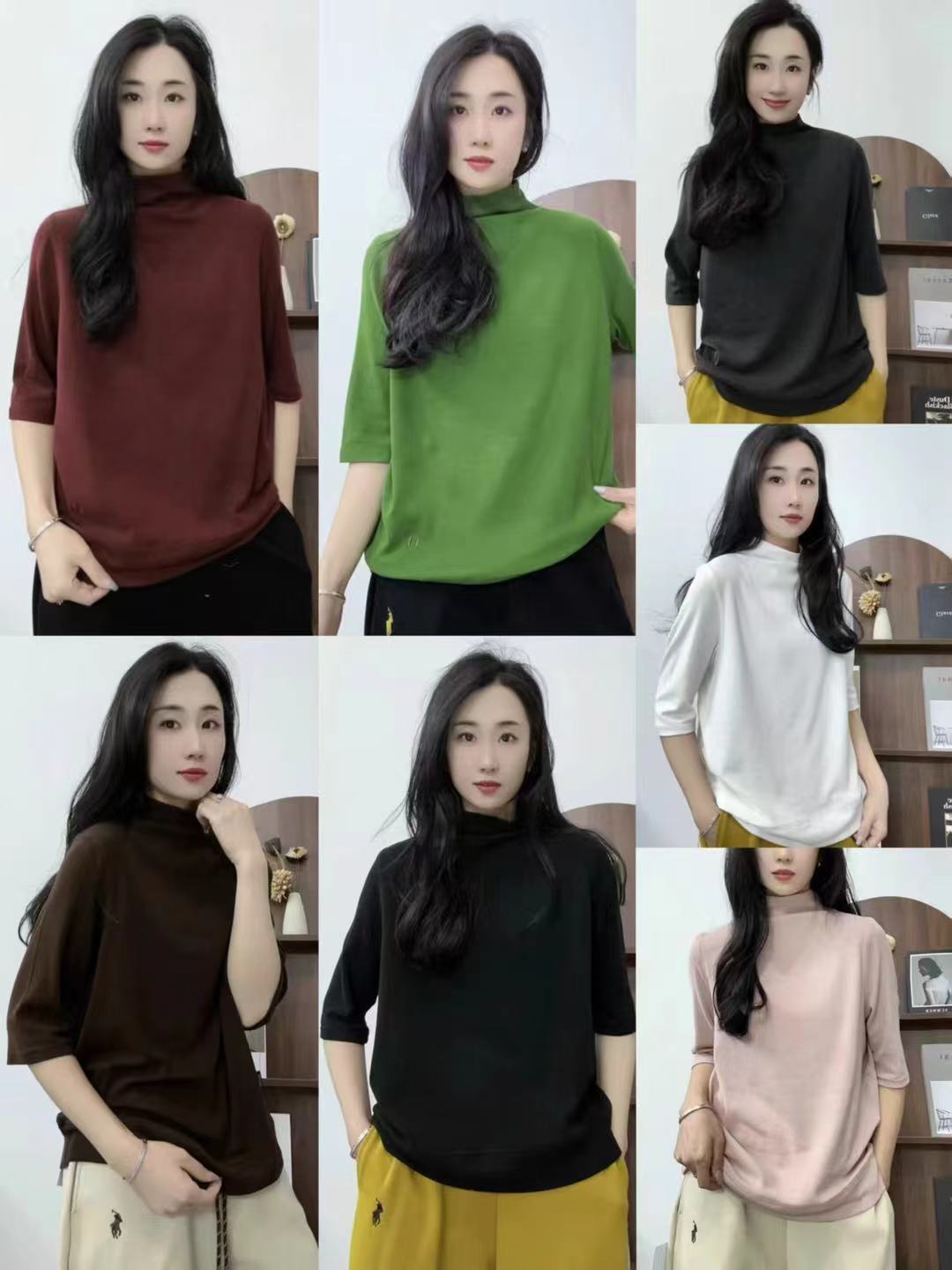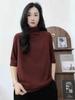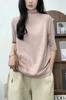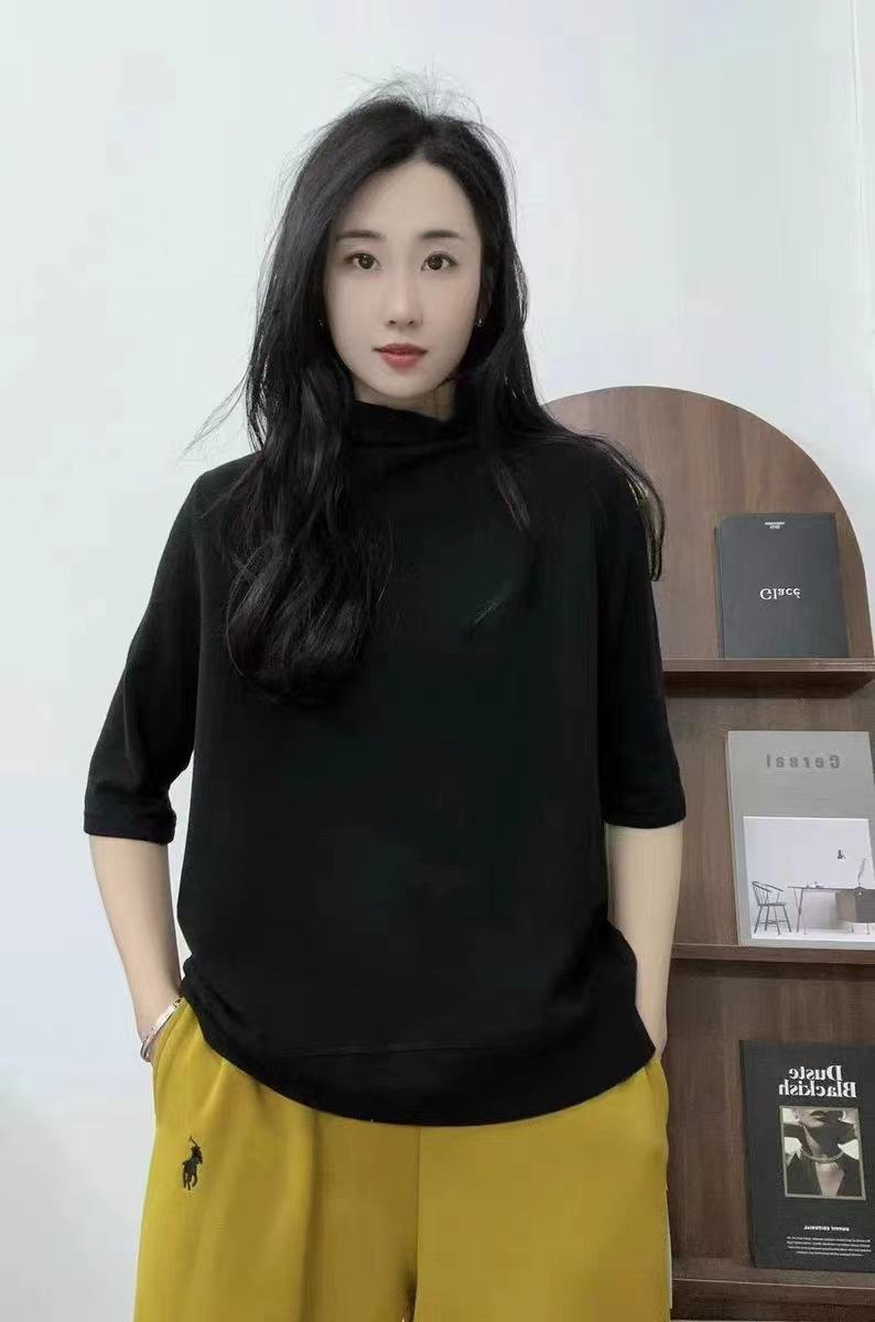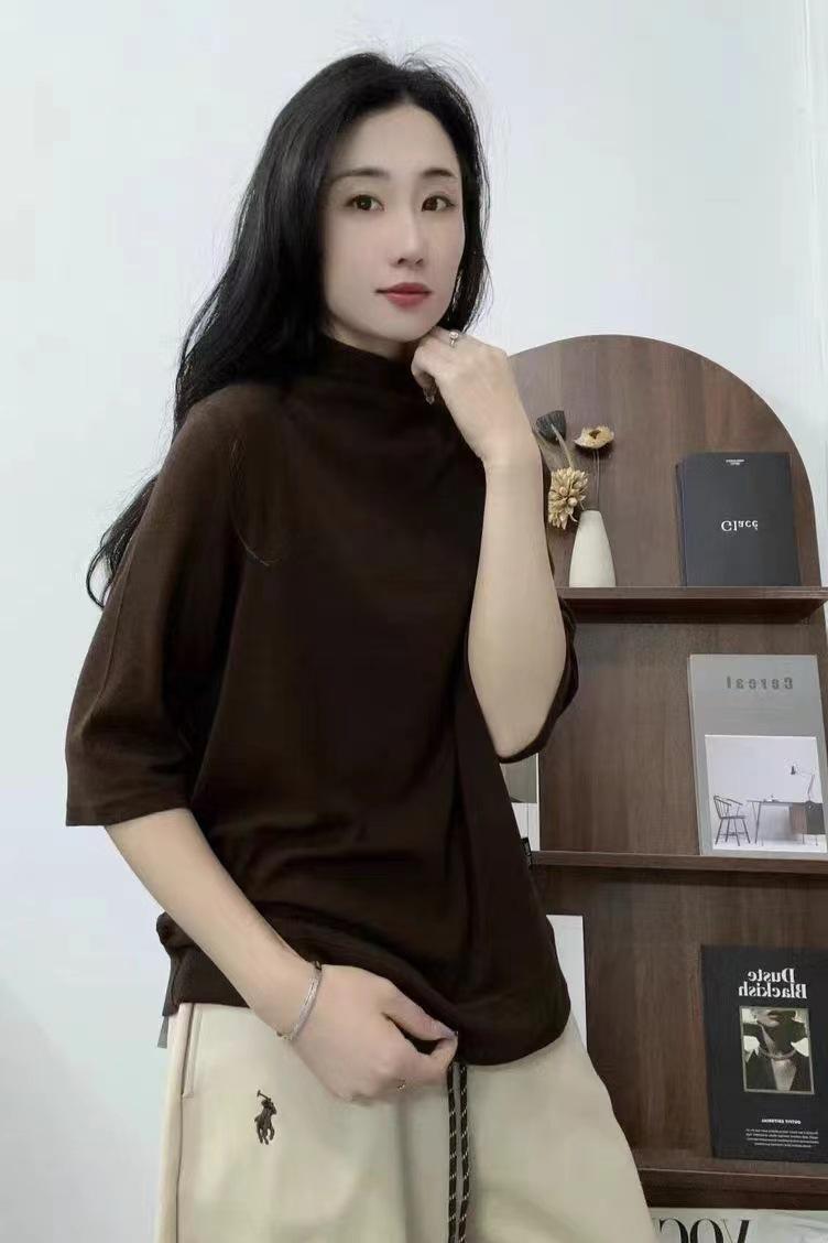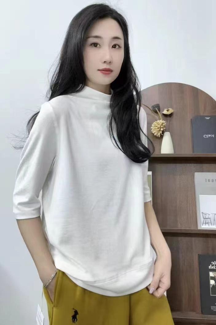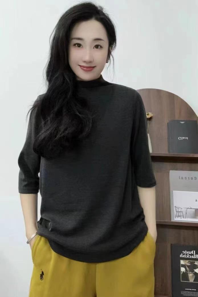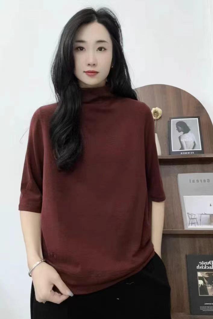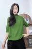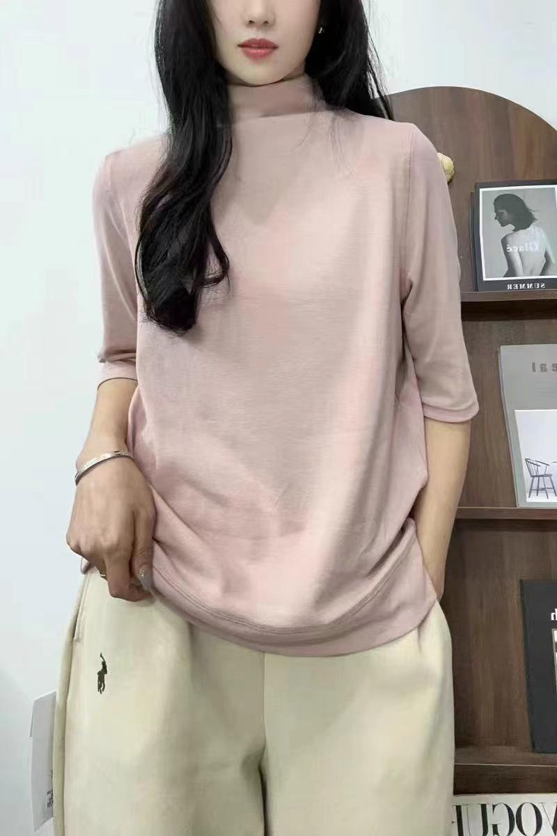 Verano 2025 Nueva Moda Semi-Cuello Alto Color Sólido Camiseta Base Elegante Adelgazante Versátil Camiseta de Cinco Mangas Top de Mujer