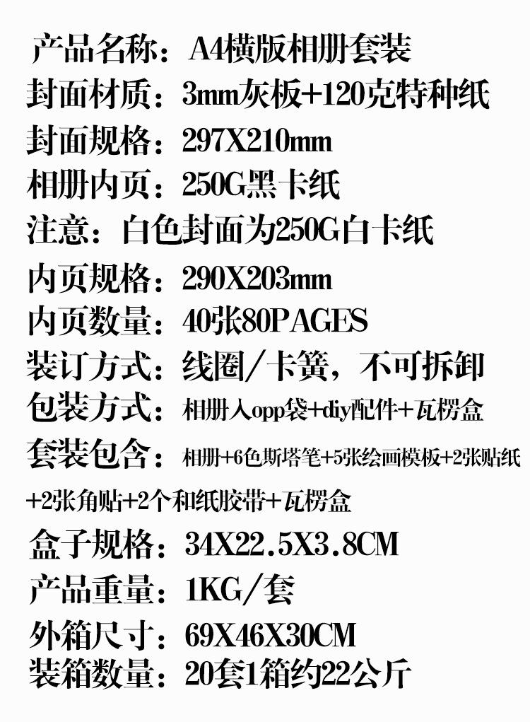 Ventas Calientes Transfronterizas Amazon DIY Álbum de Fotos A4 Álbum de Recortes Creativo Graffiti Hojas Interiores de Tarjeta Negra Colección Álbum Conmemorativo Set