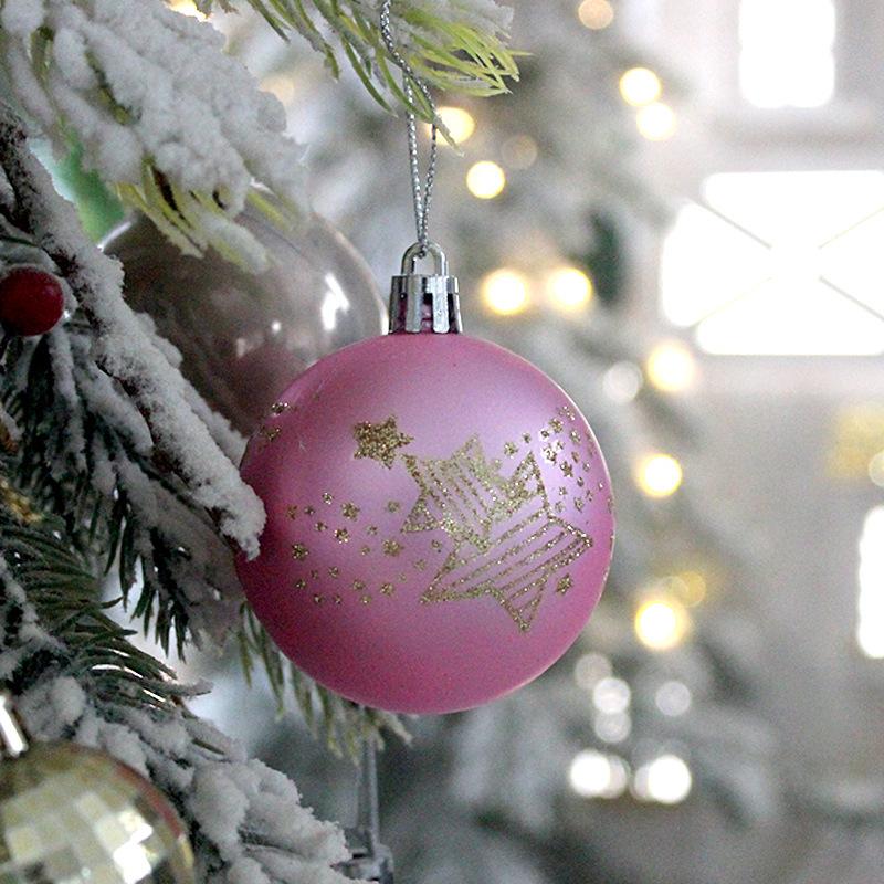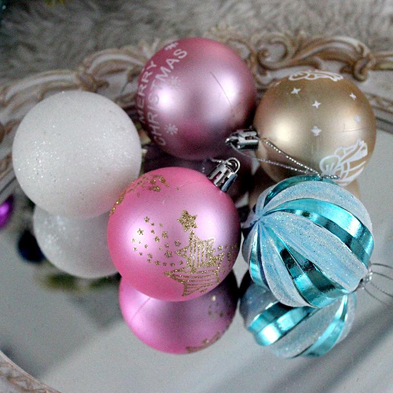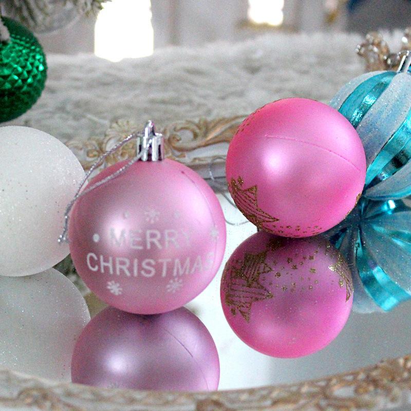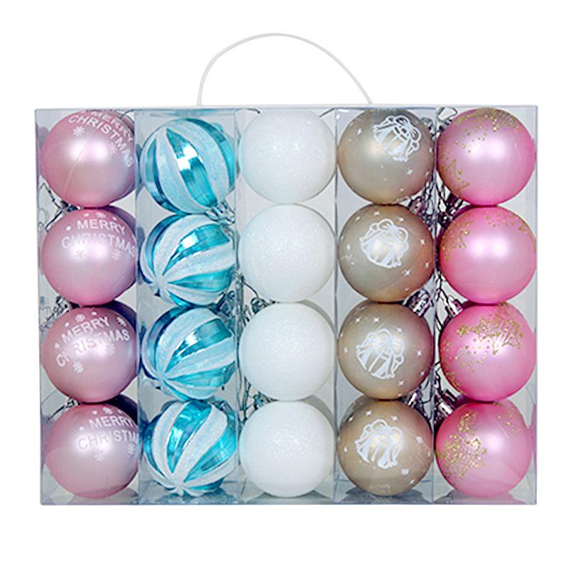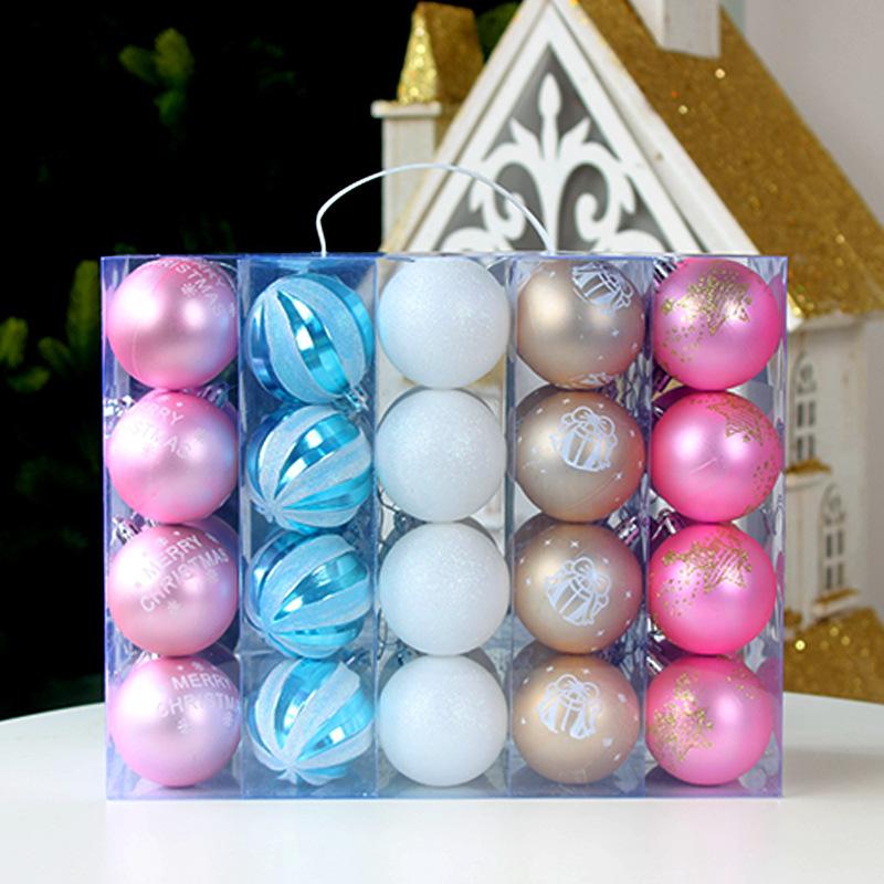 Amazon Set de Bolas Navideñas Transfronterizas 6cm 40 Decoraciones Navideñas Bolas de Plástico Pintadas Electrochapadas Azul y Blanco Rosa