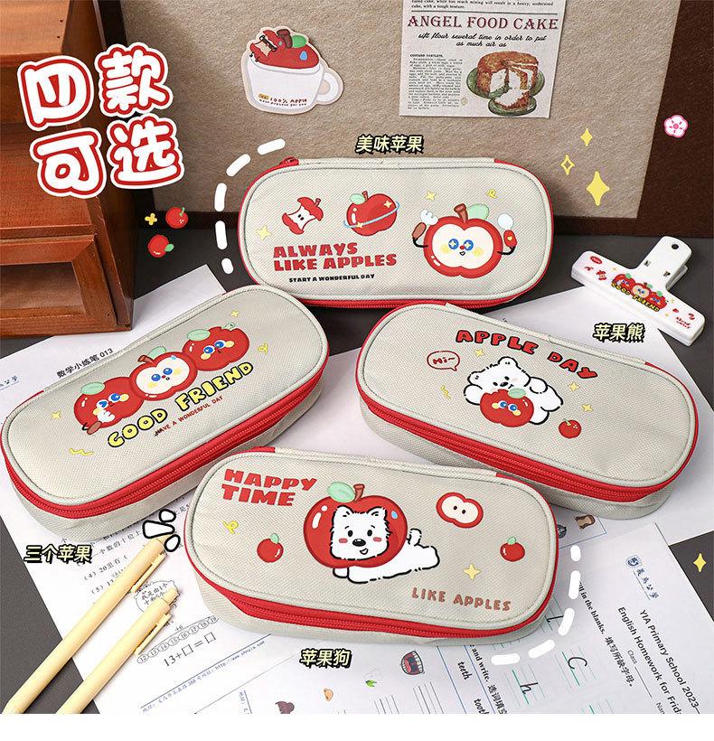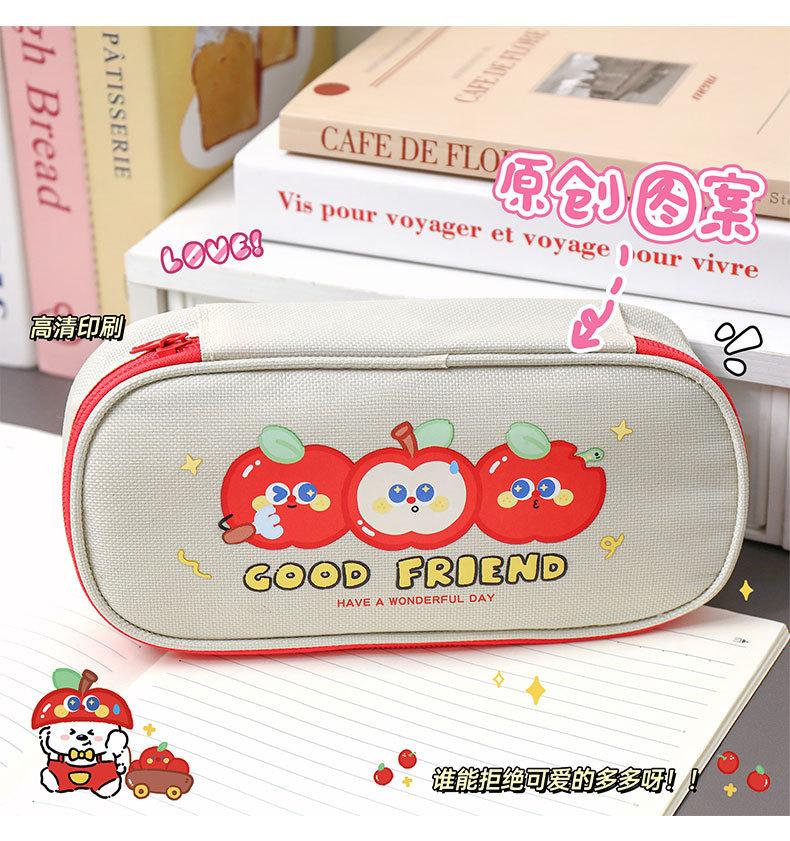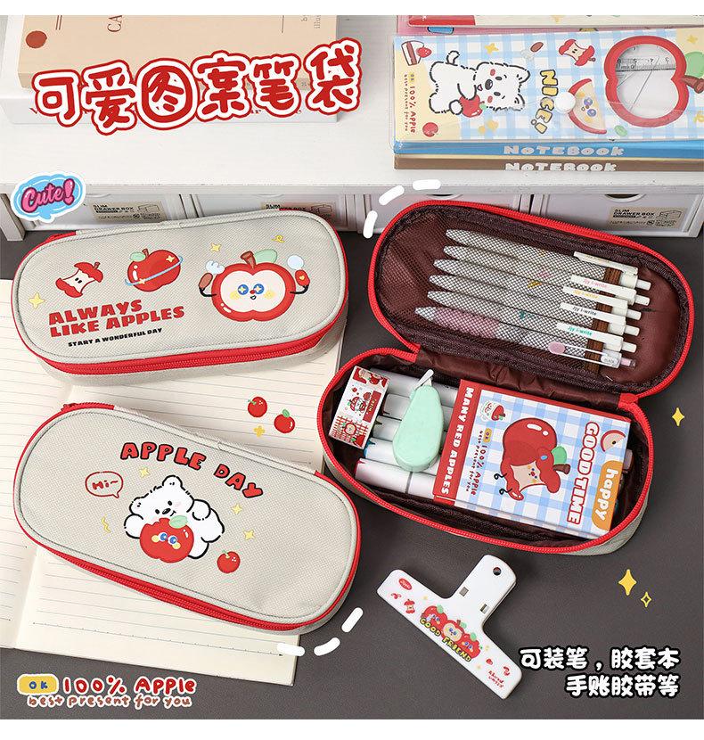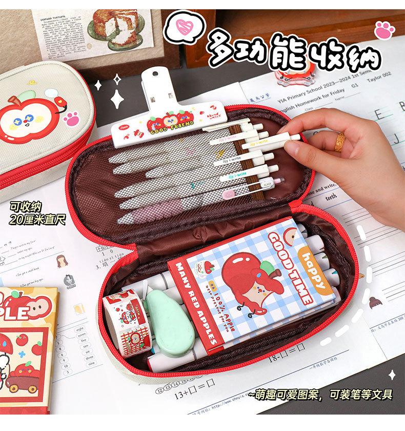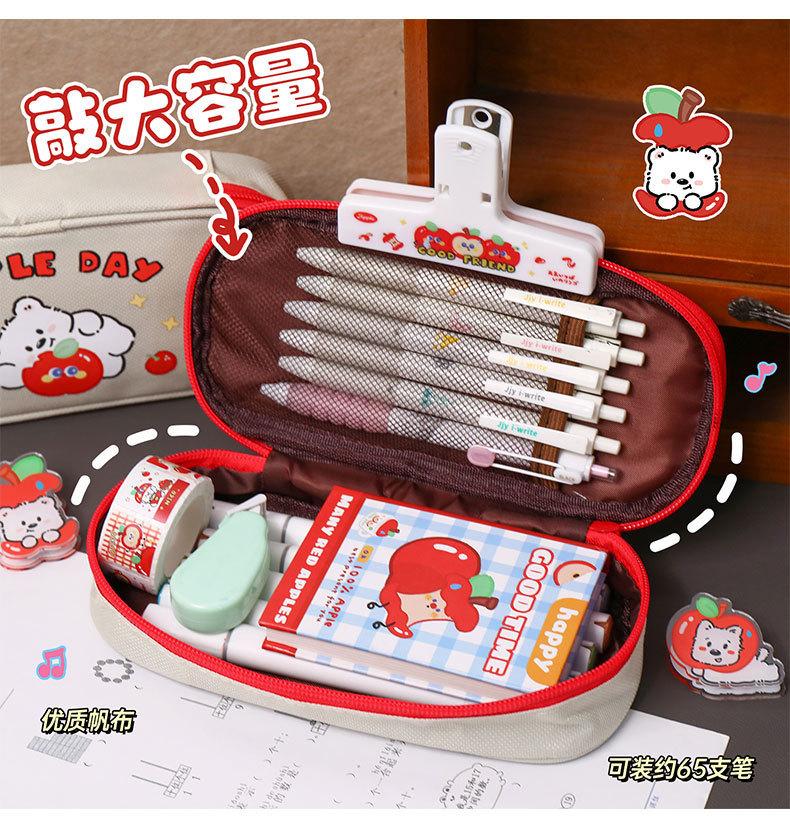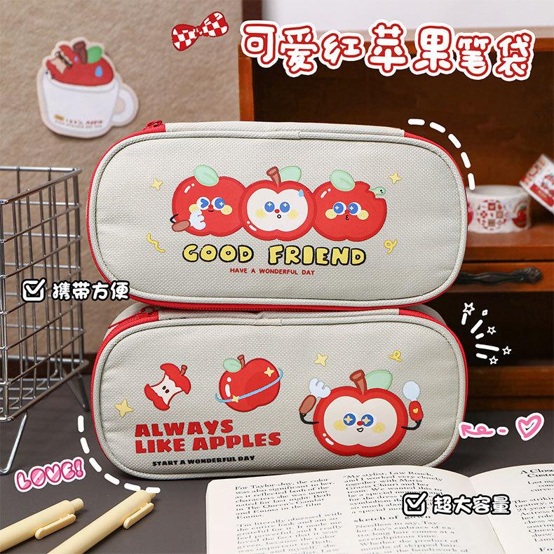 Estuche de Lápices de Manzana de Dibujos Animados Estilo ins Gran Capacidad Estuche de Lona para Lápices Caja de Lápices para Estudiantes de Primaria y Secundaria Linda Caja de Papelería Almacenamiento