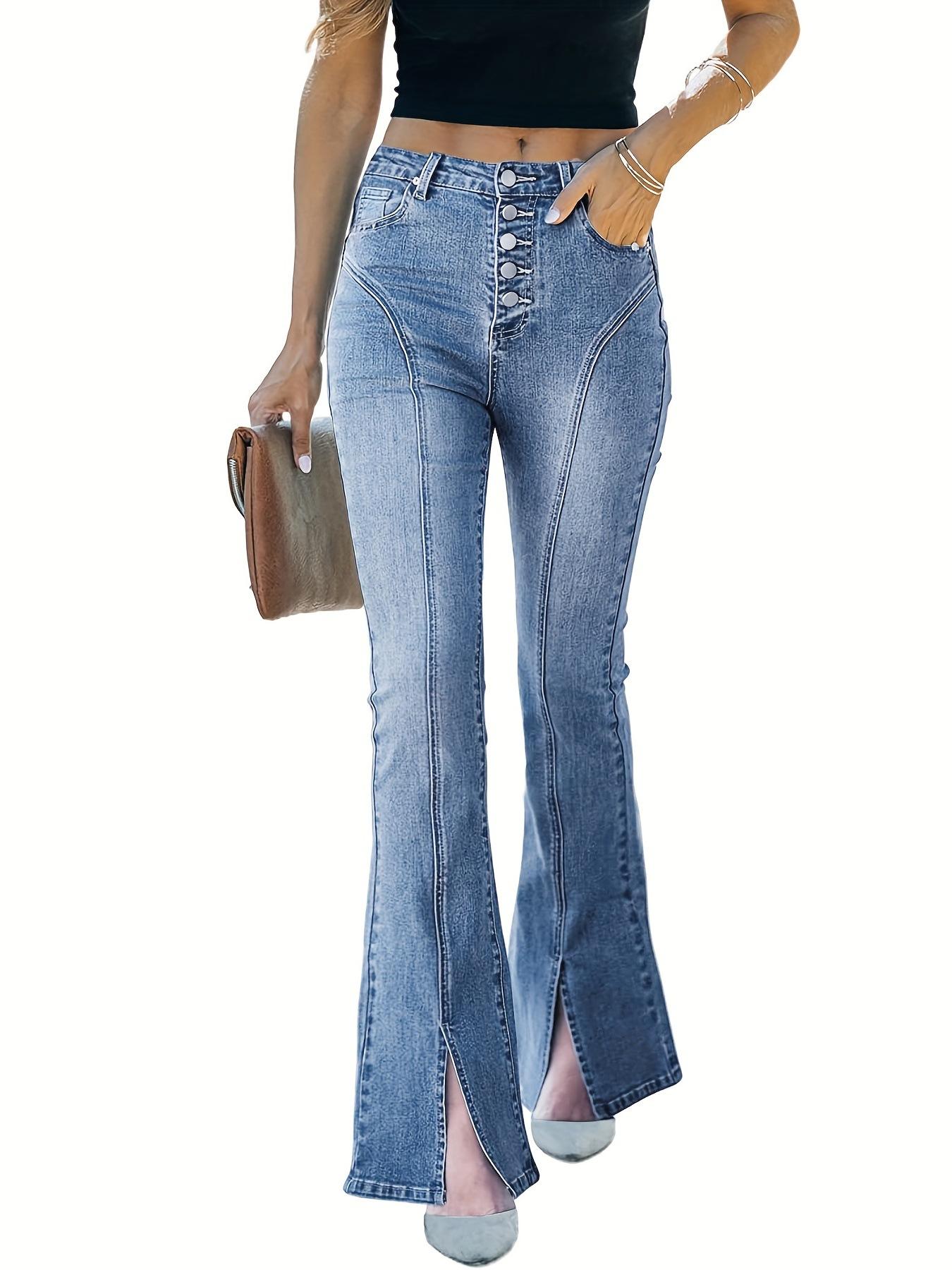 Europeo y Americano 2023 otoño nuevo comercio exterior transfronterizo AliExpress Americano retro slim adelgazante acampanado dividido jeans para mujer