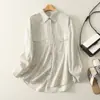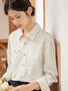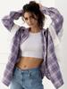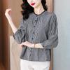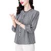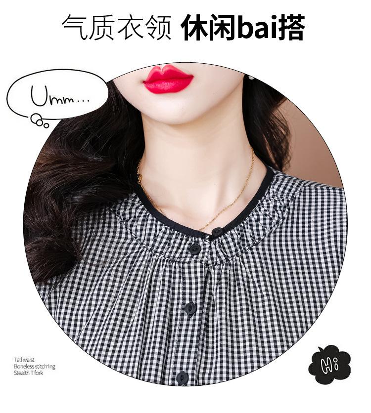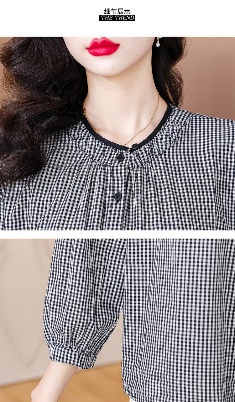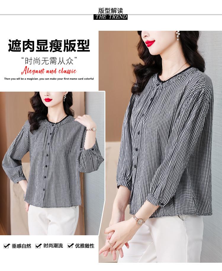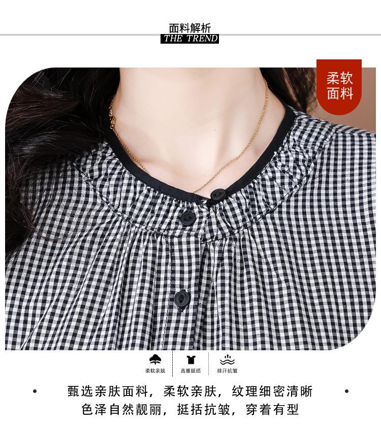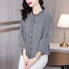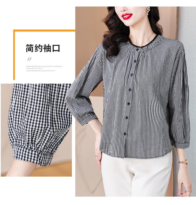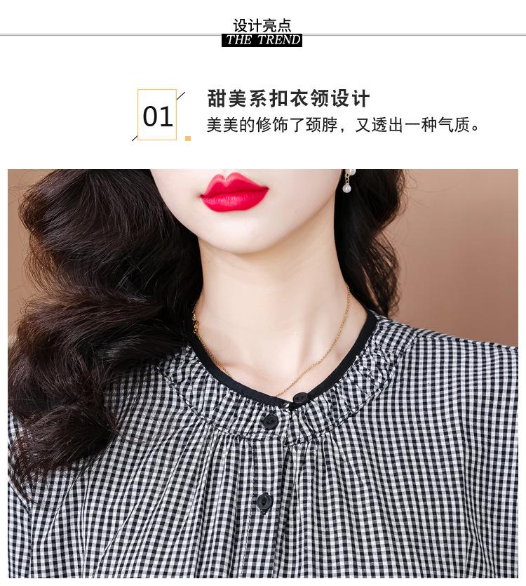 Foto real otoño nueva camisa de cuadros para mujer diseño suelto retro sentido cuello redondo manga larga top