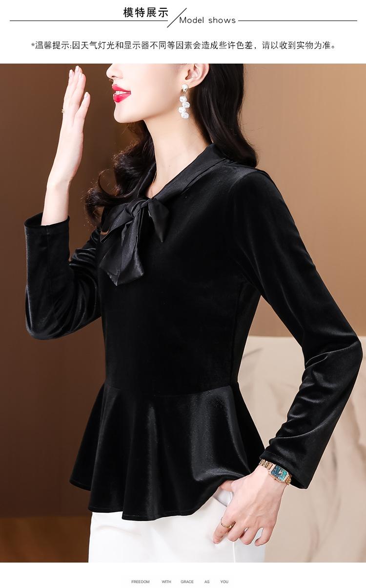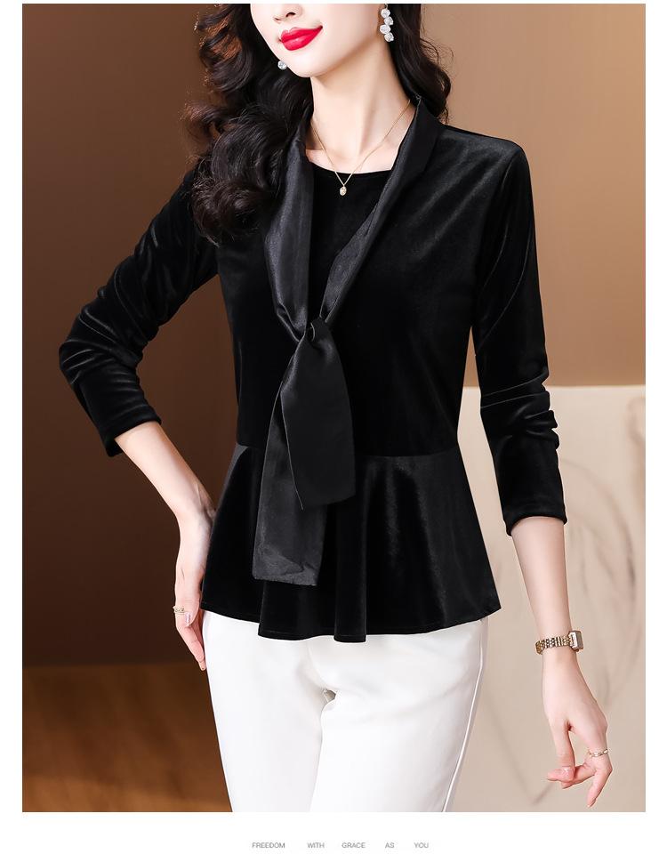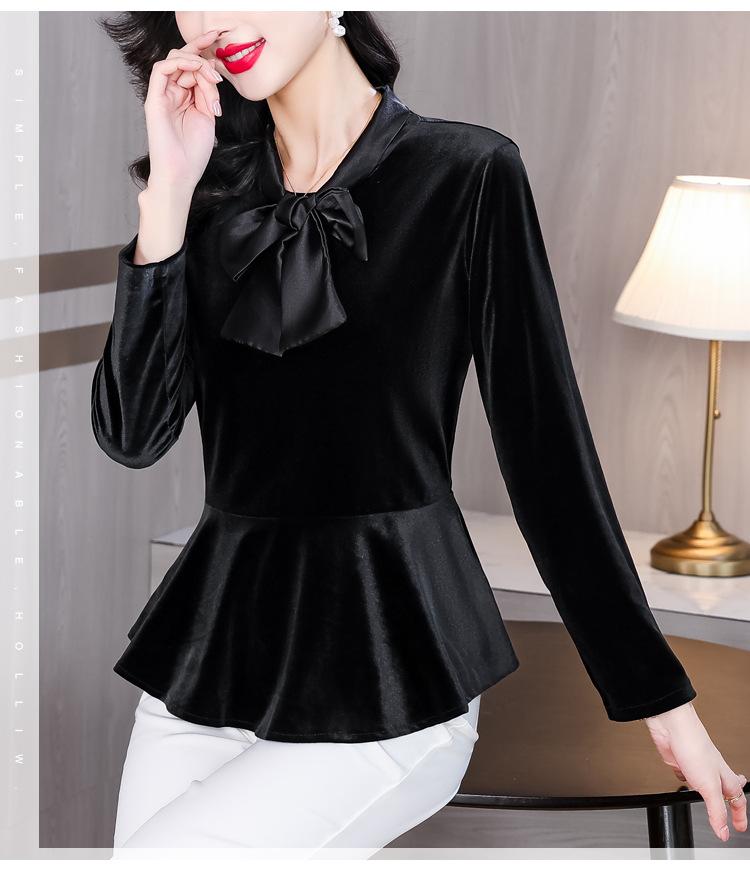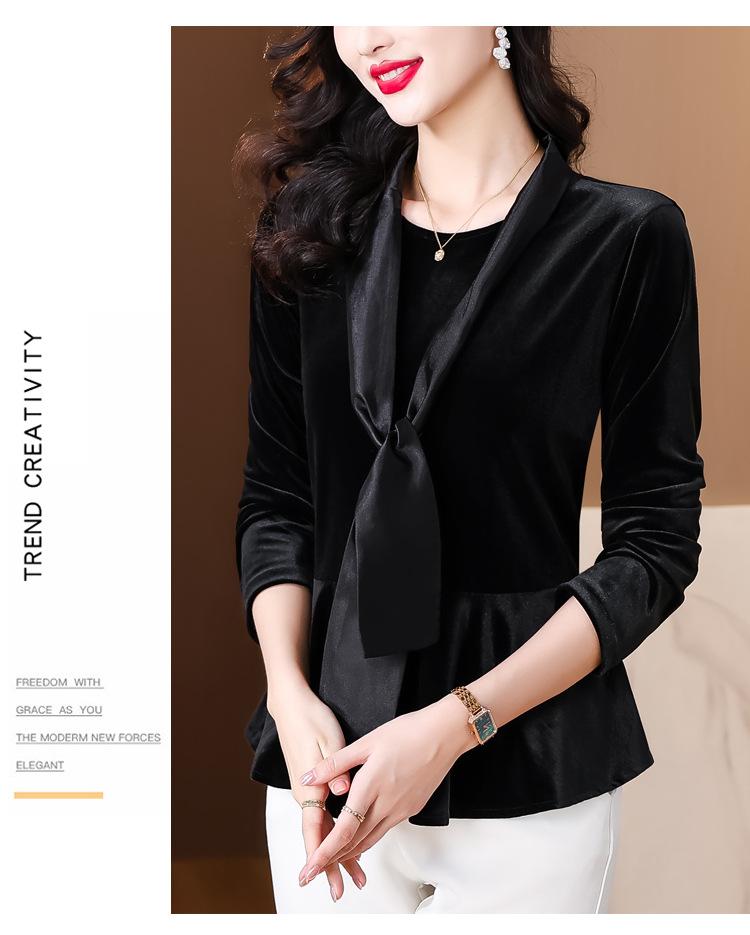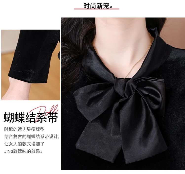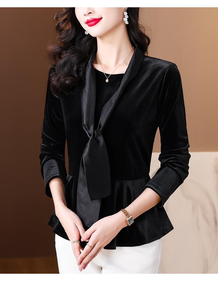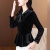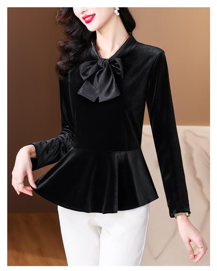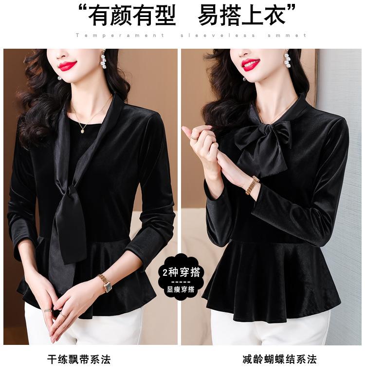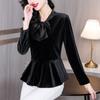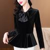 Toma real otoño nuevo camisa base de terciopelo dorado mujer manga larga lazo cintura adelgazante falda bajo top