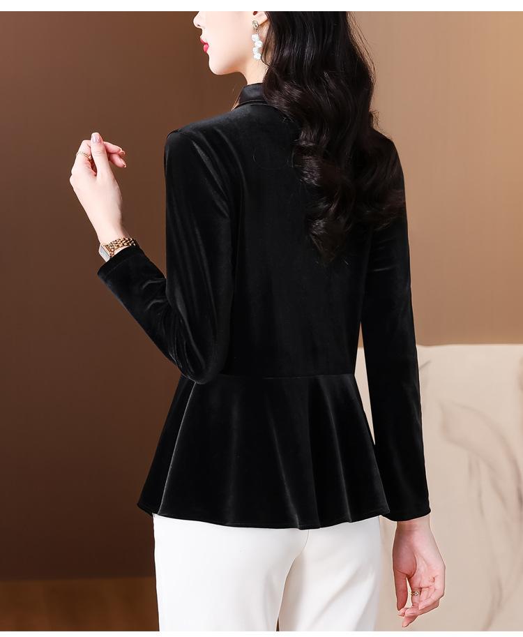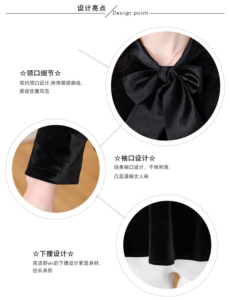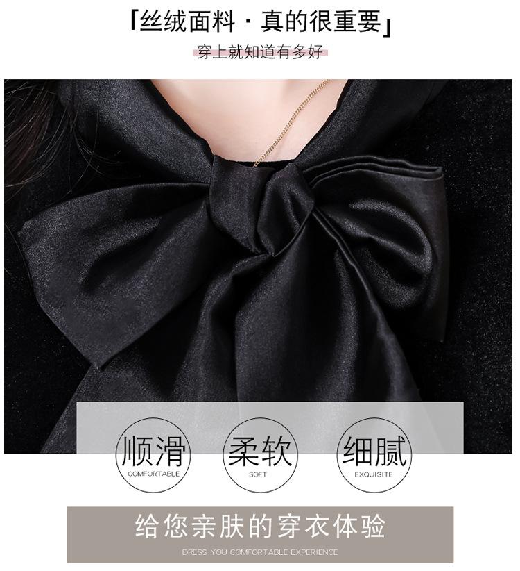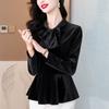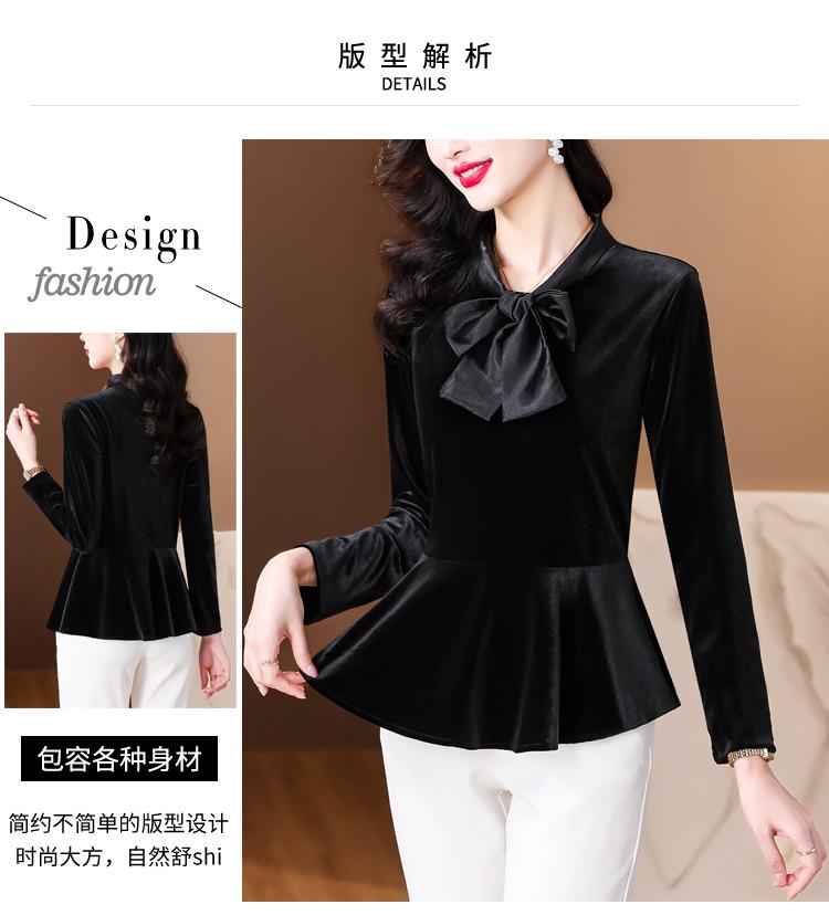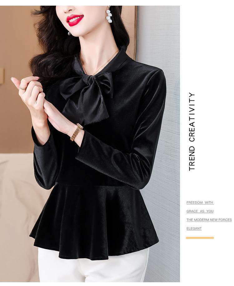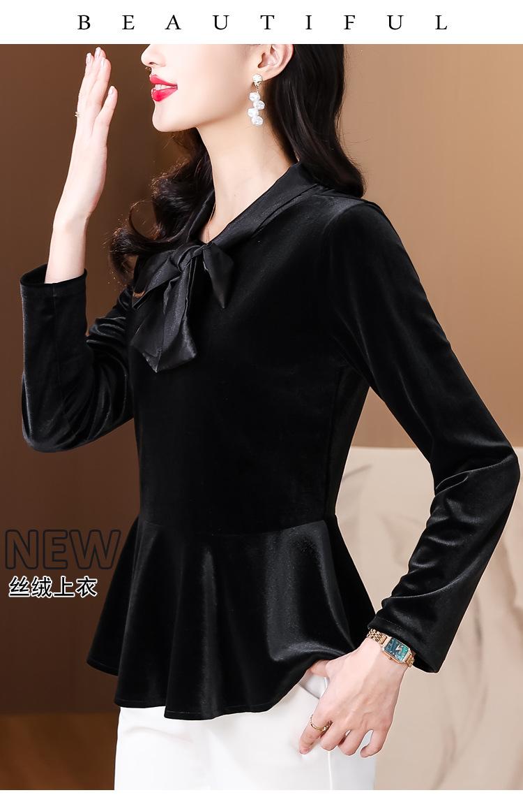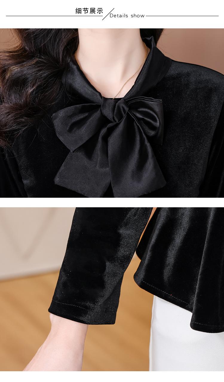 Toma real otoño nuevo camisa base de terciopelo dorado mujer manga larga lazo cintura adelgazante falda bajo top