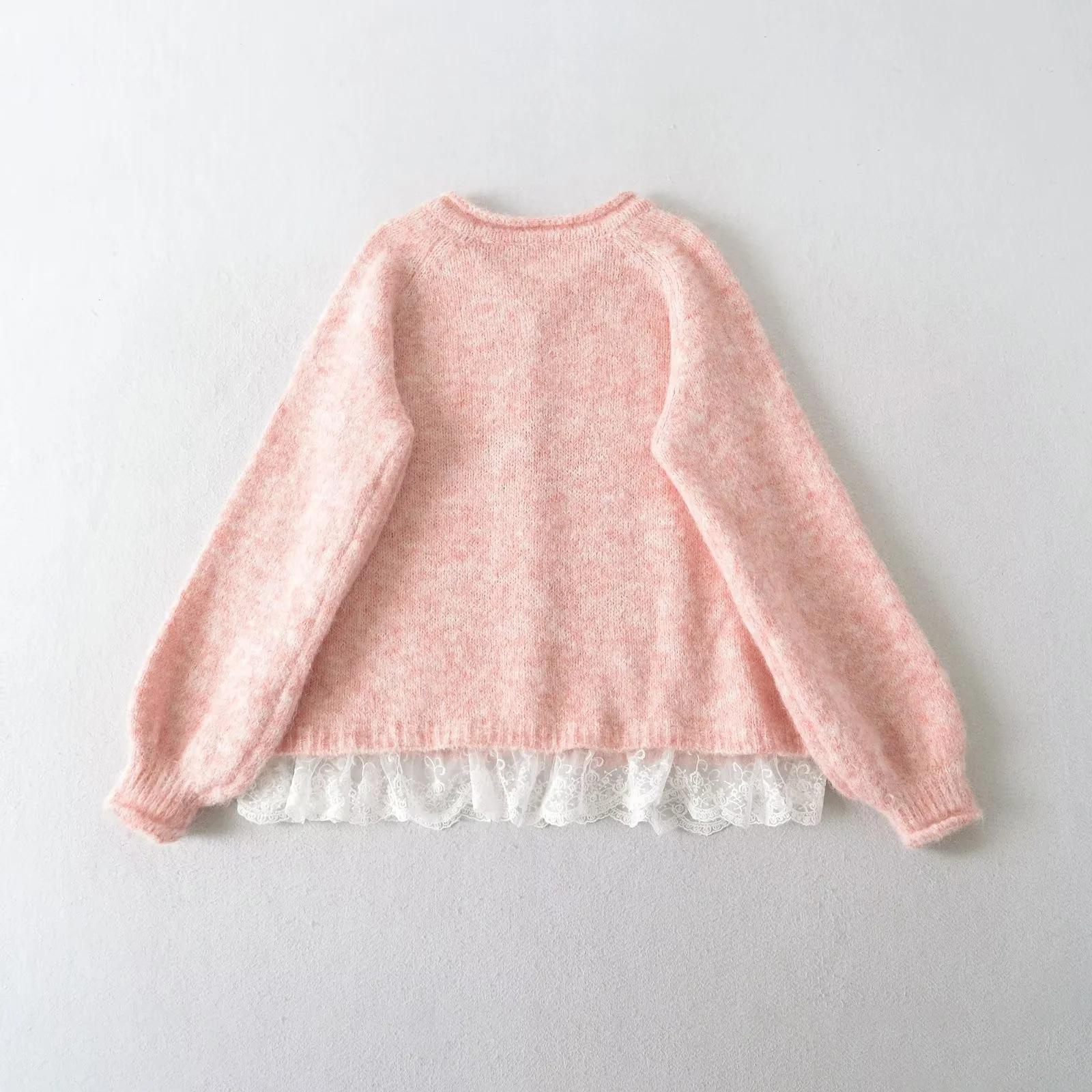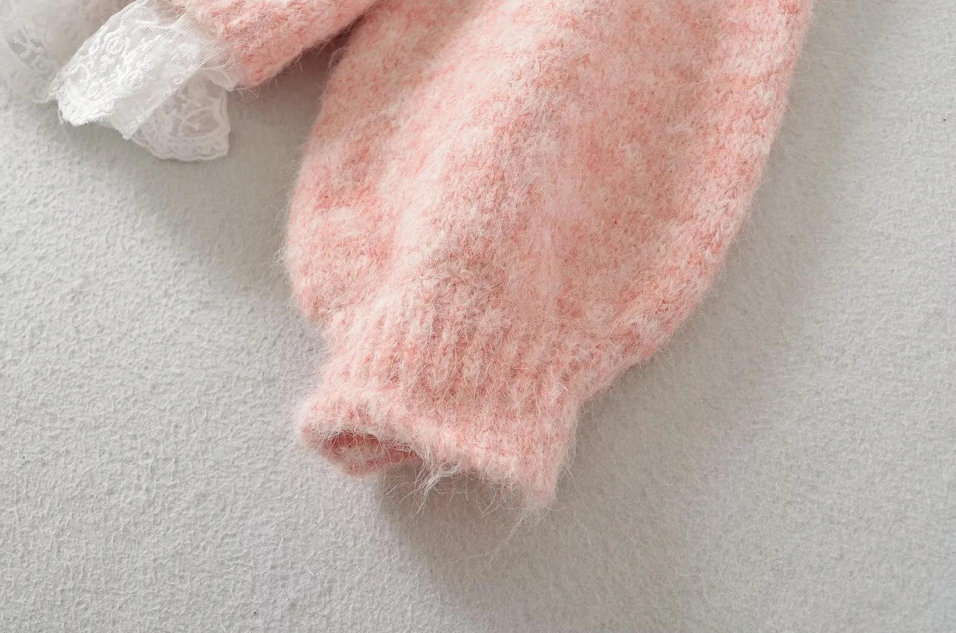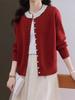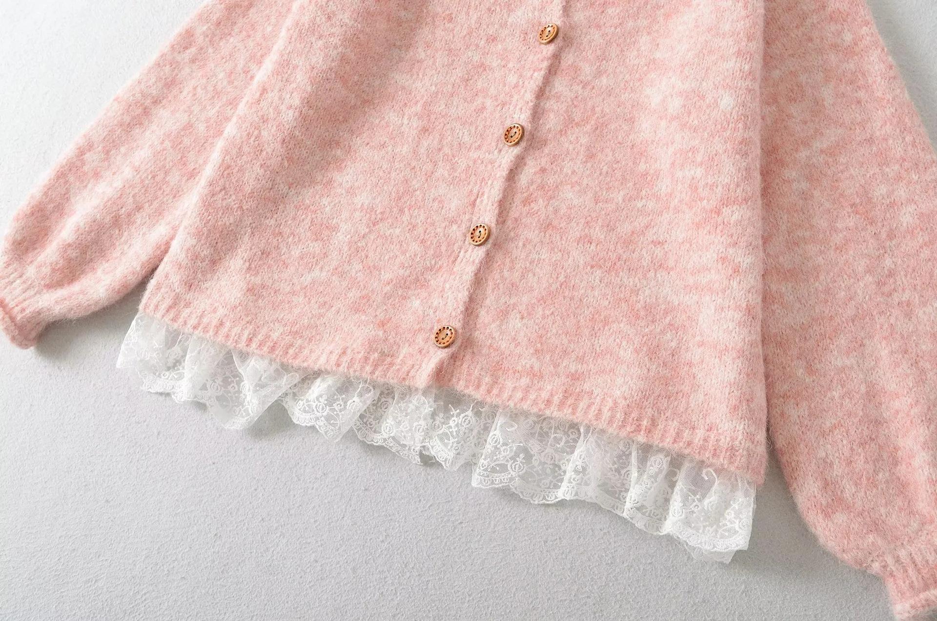 Nuevo Cárdigan de Punto de Lana Merino con Parche de Encaje para Otoño e Invierno para Mujer, Suéter Holgado Adelgazante Corto para Exterior