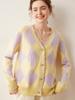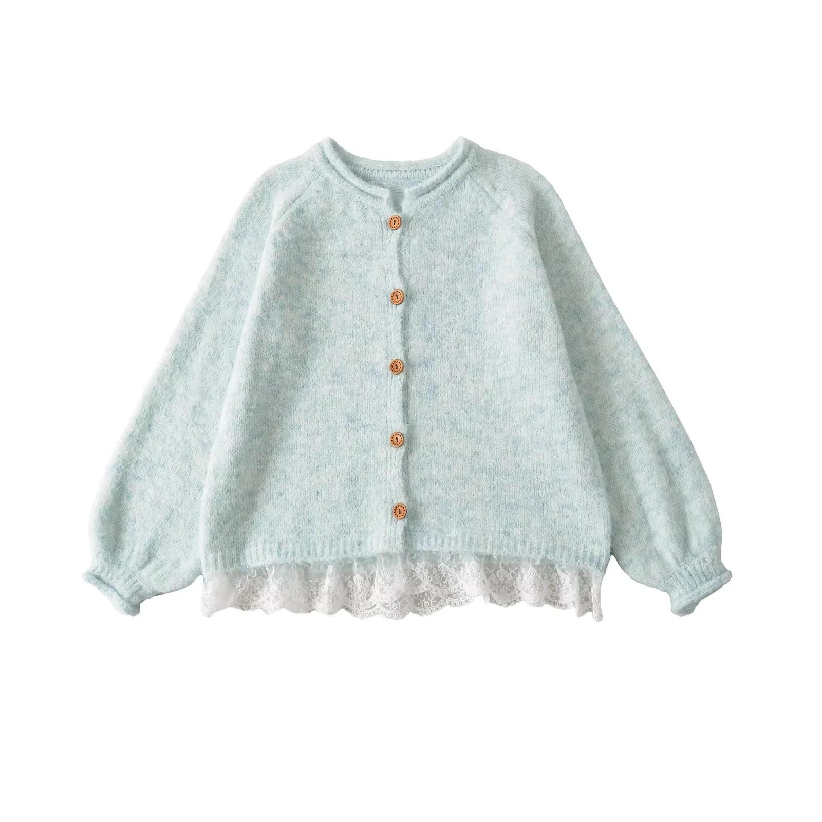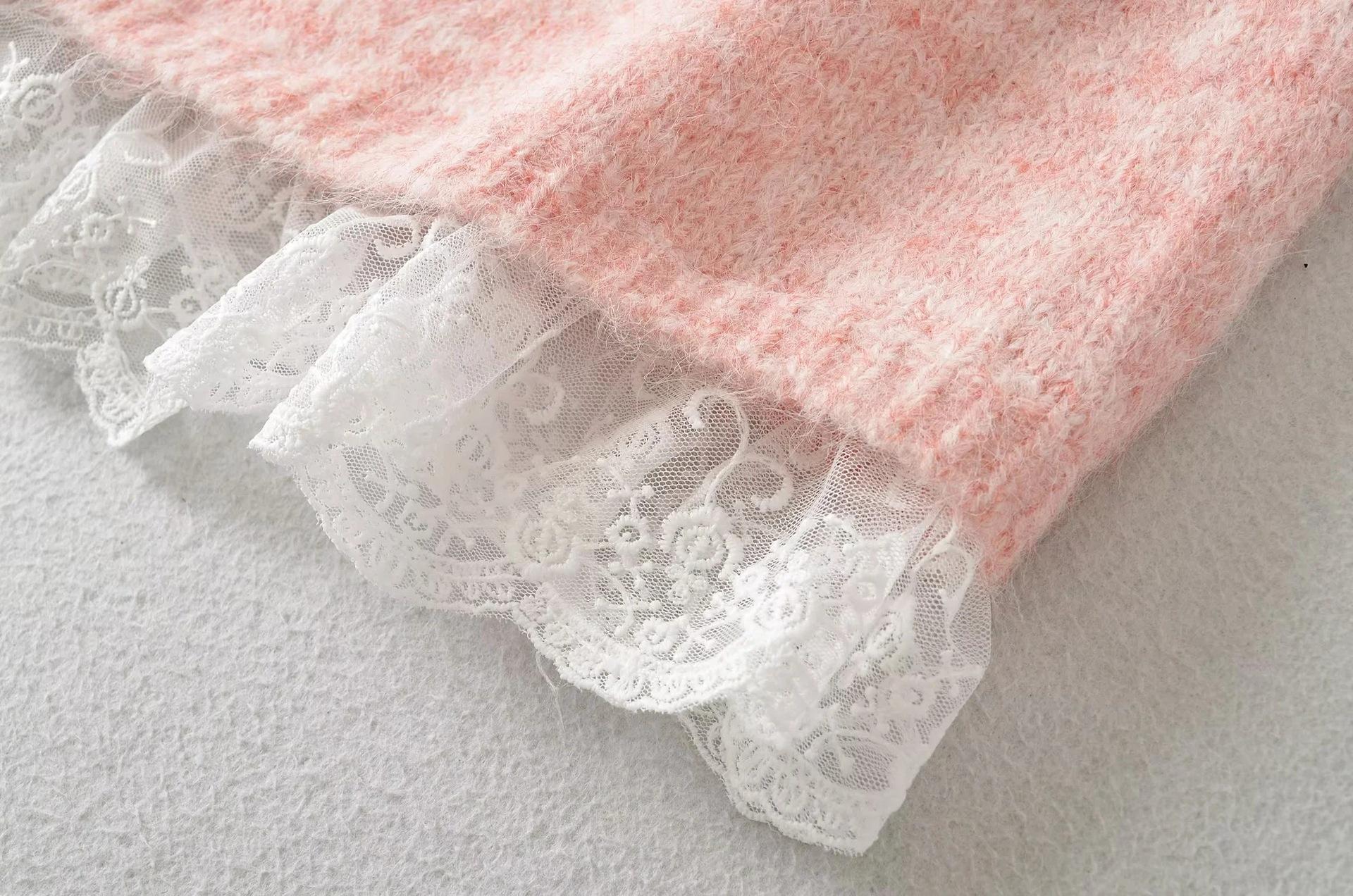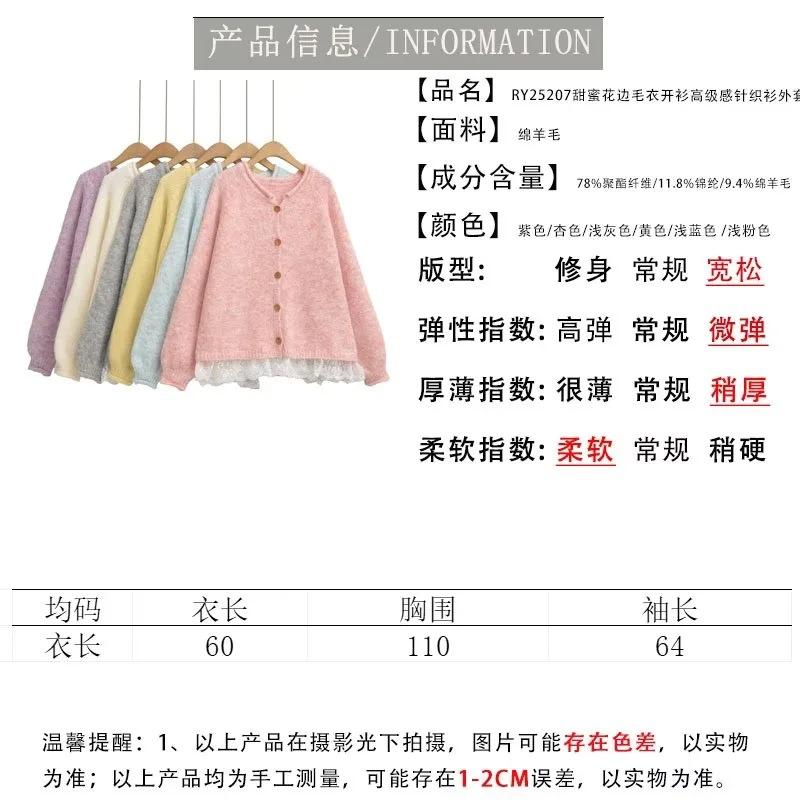 Nuevo Cárdigan de Punto de Lana Merino con Parche de Encaje para Otoño e Invierno para Mujer, Suéter Holgado Adelgazante Corto para Exterior