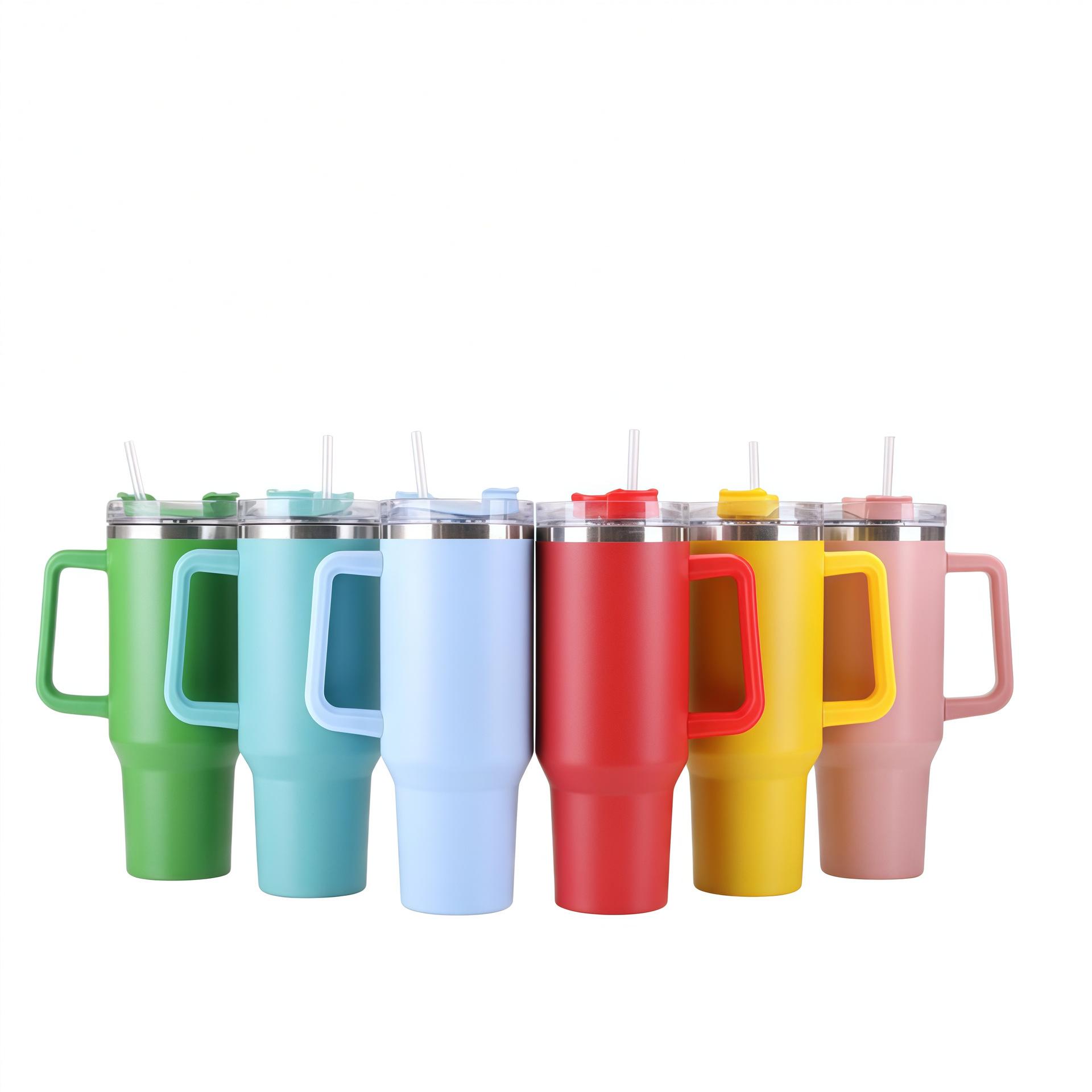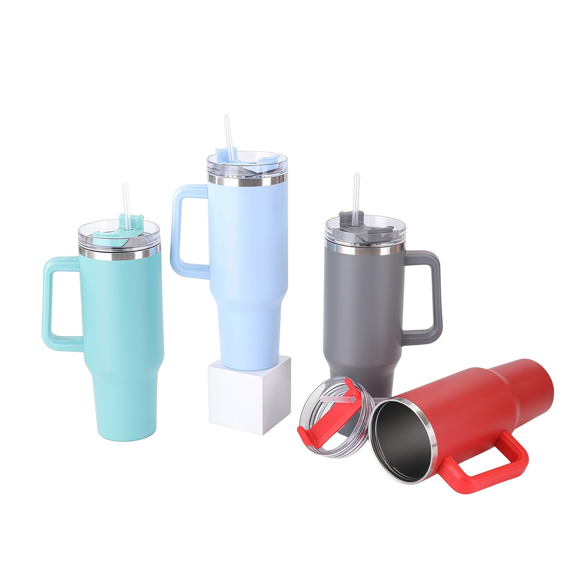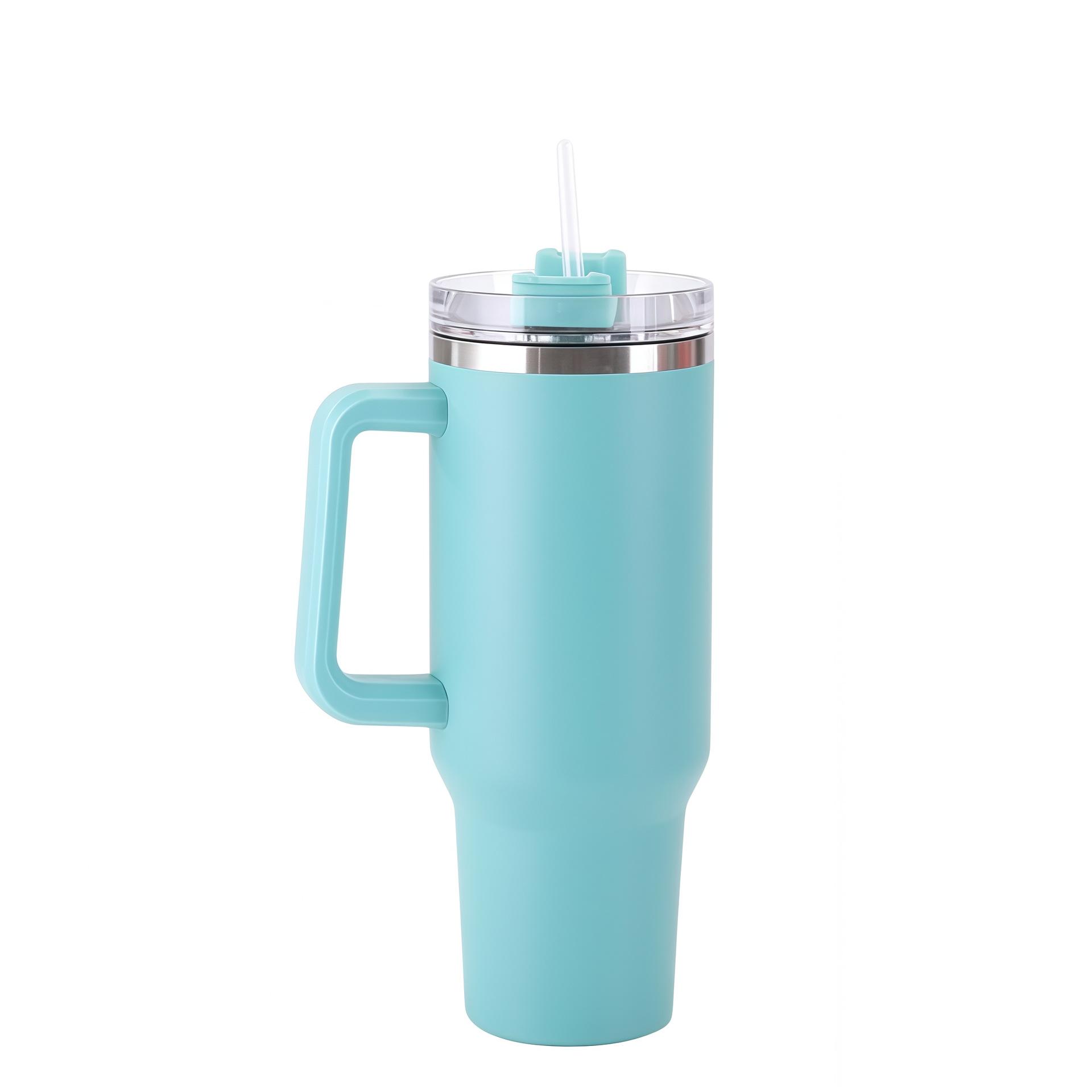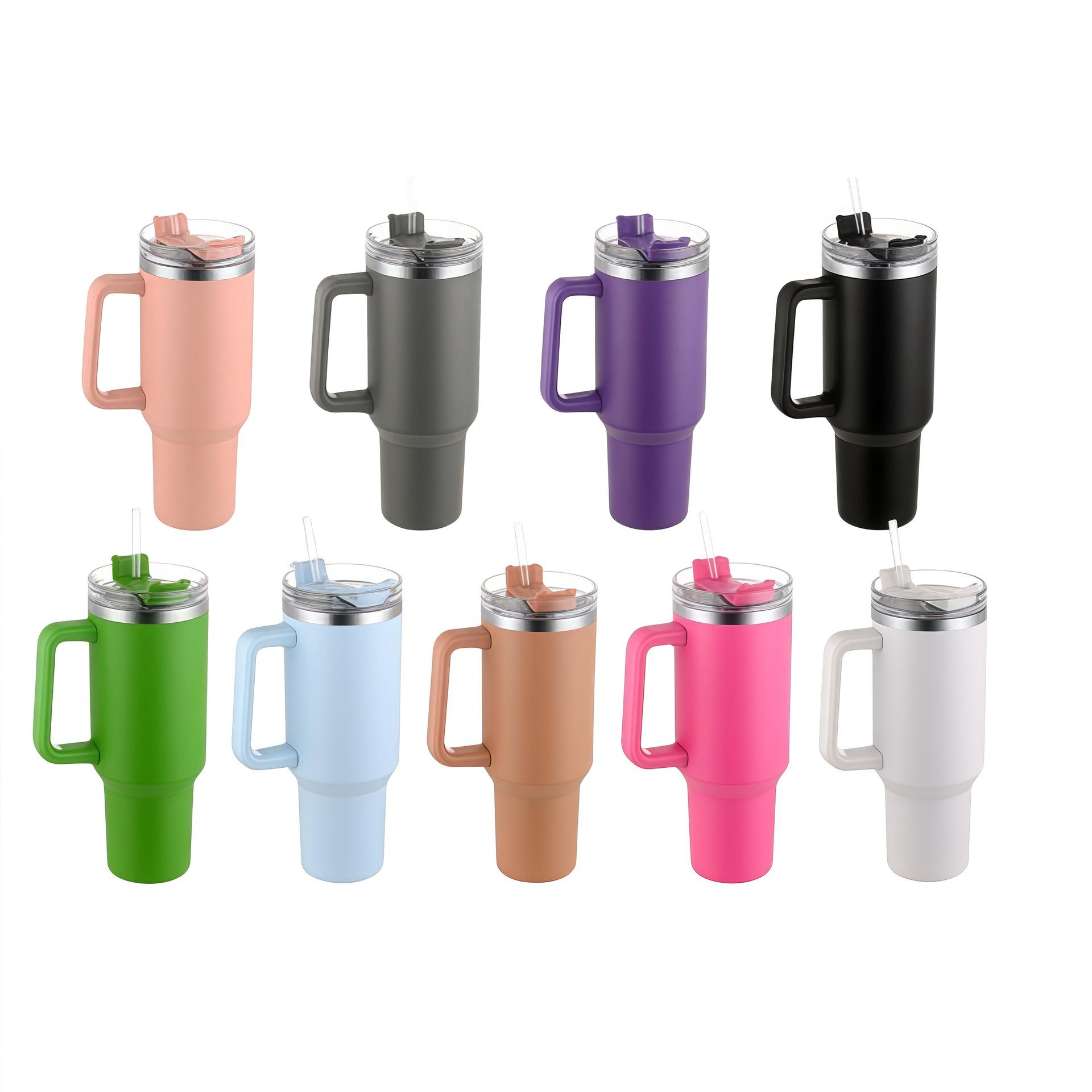 Taza para Coche de 40 oz de Generación Transfronteriza, Acero Inoxidable 304, Gran Capacidad, Doble Capa, Taza Ice King con Pajita, Portátil, con Asa