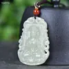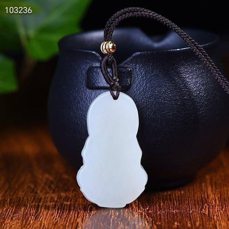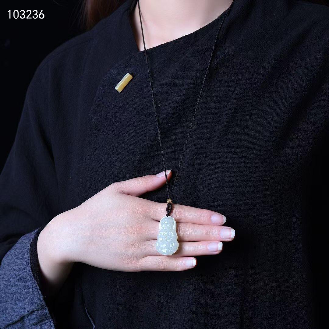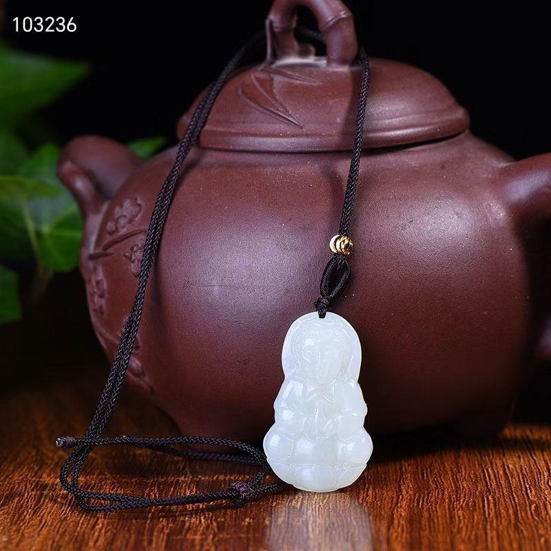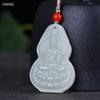 Jade Hetian Crudo Natural Guanyin Sosteniendo Botella Colgante de Jade Guanyin Bodhisattva Estatua de Buda Colgante Amuleto de Jade