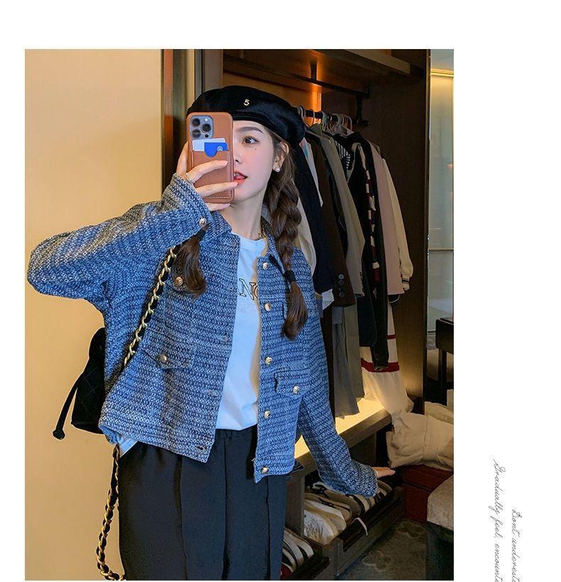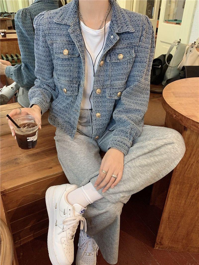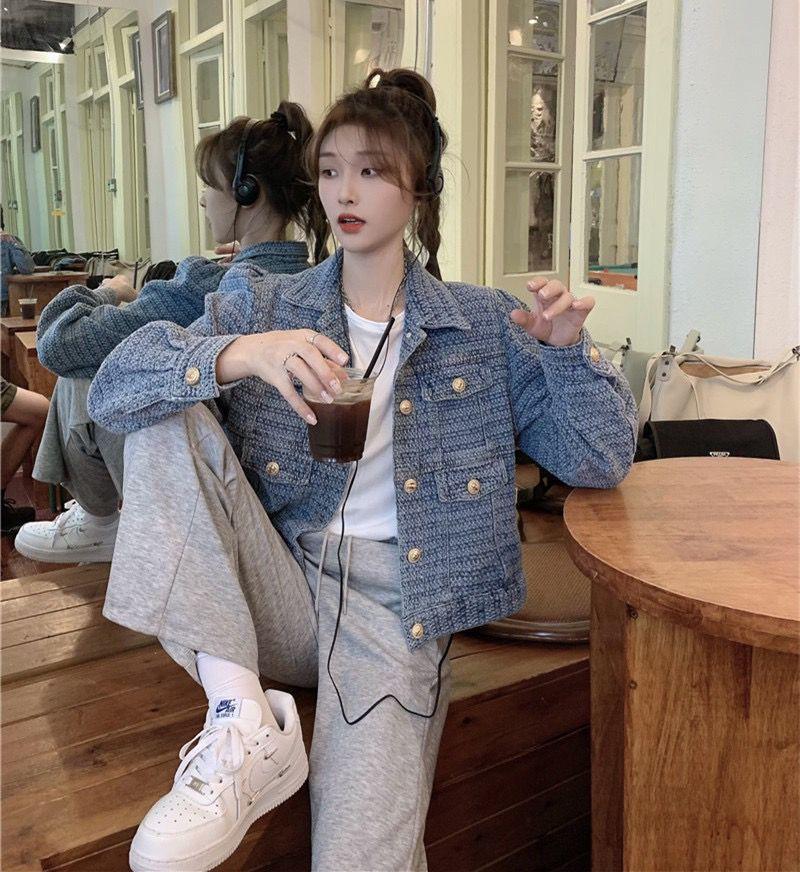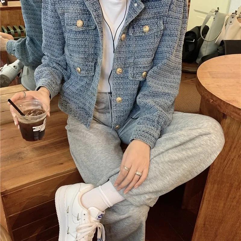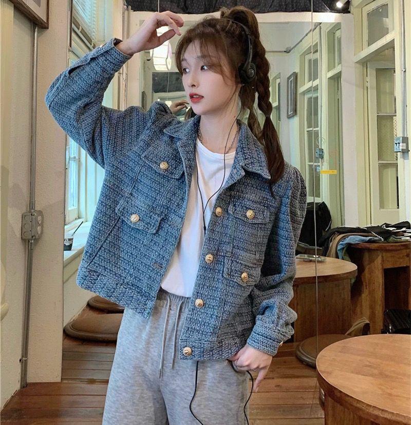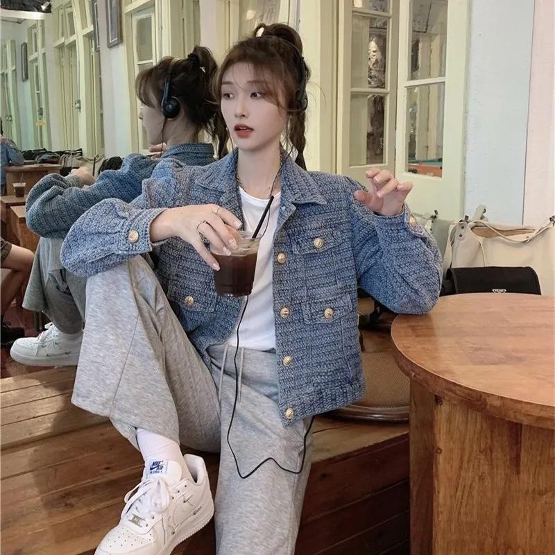 Chaqueta corta de mezclilla estilo Chanel retro para mujer, nueva de otoño e invierno, temperamento, adelgazante, versátil, tejida