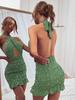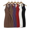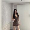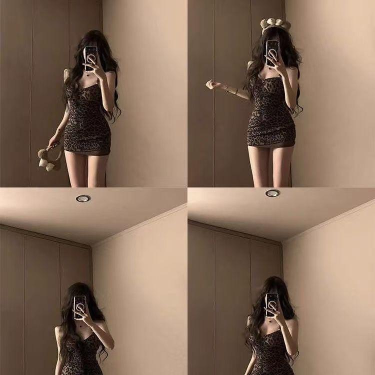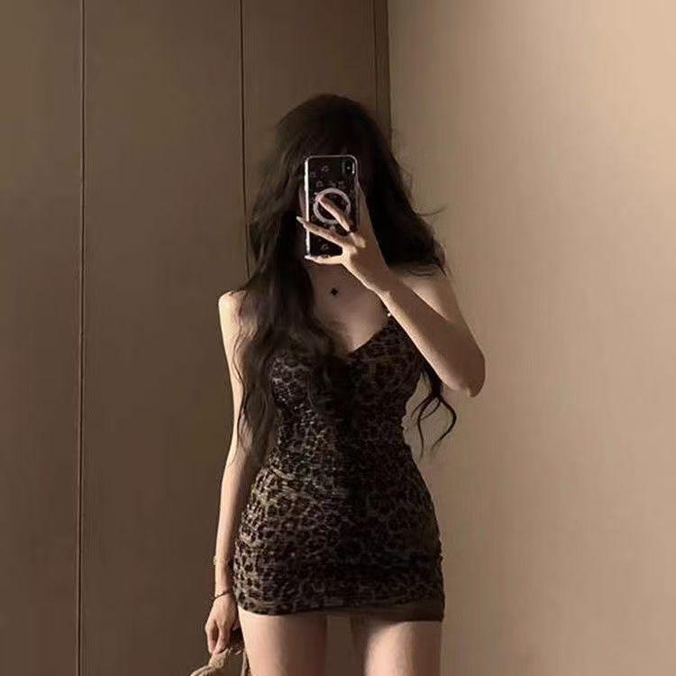 Vestido Halterneck Sexy y Caliente con Tirantes y Estampado de Leopardo para Mujer Estilo Nuevo de Principios de Primavera Look Adelgazante de Cintura Falda Corta Interior Ajustada a las Caderas