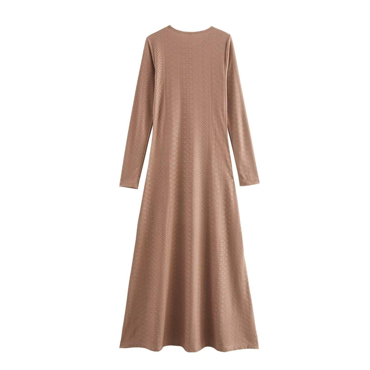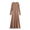 Ropa de Otoño para Mujer 2024 Nuevo Estilo Europeo y Americano Moda Simple Cuello Redondo Manga Larga Vestido Ajustado
