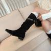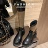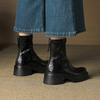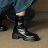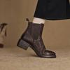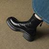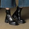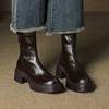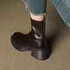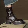 Botas de caballero versátiles de cuero genuino para otoño e invierno, tacón medio, talla grande, botas de cuero, punta redonda, plataforma, tacón cuadrado, nuevas botas de media caña para mujer