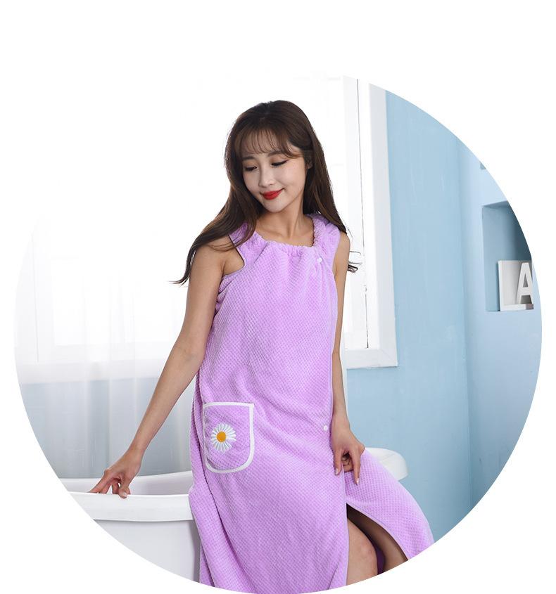 Toalla de Baño para Vestir Falda de Baño Doméstica Baño Albornoz Espesado para Adultos Envoltorios Albornoz de Tirantes Absorbente de Forro Polar Coral Largo para Mujer