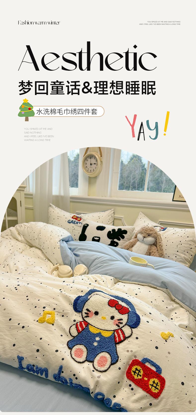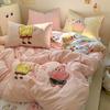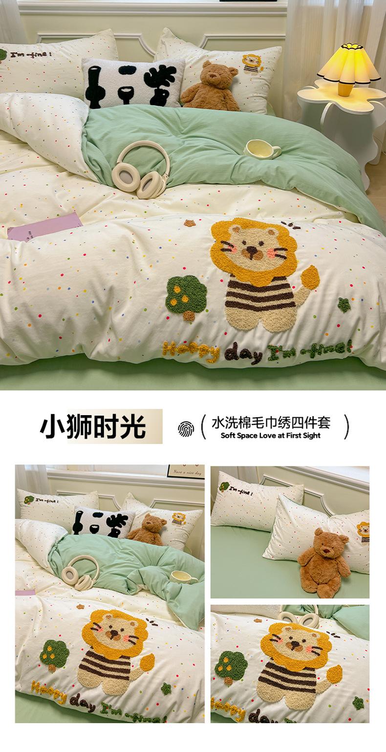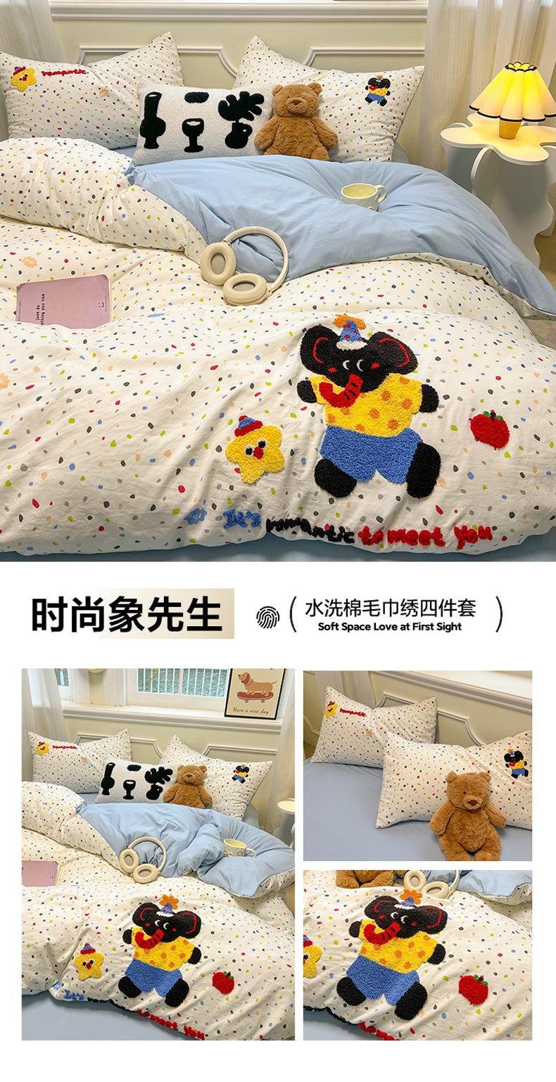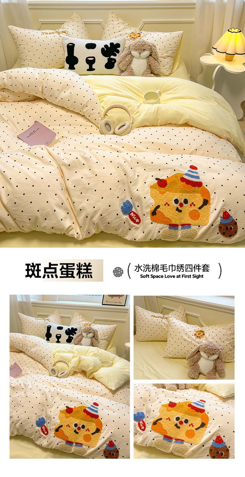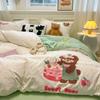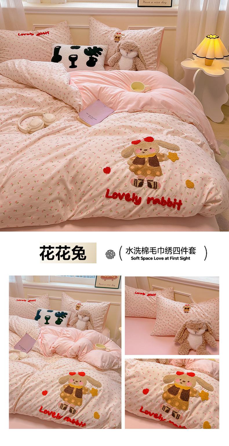 Ins toalla de dibujos animados bordado algodón puro juego de cuatro piezas Clase A pequeño fresco dormir desnudo lindo algodón funda de colchón ropa de cama