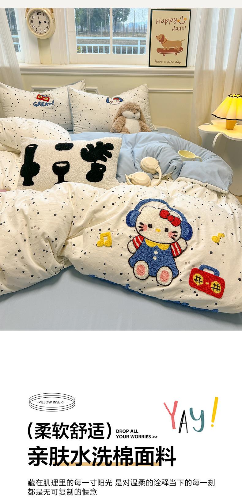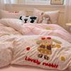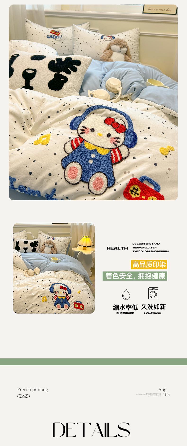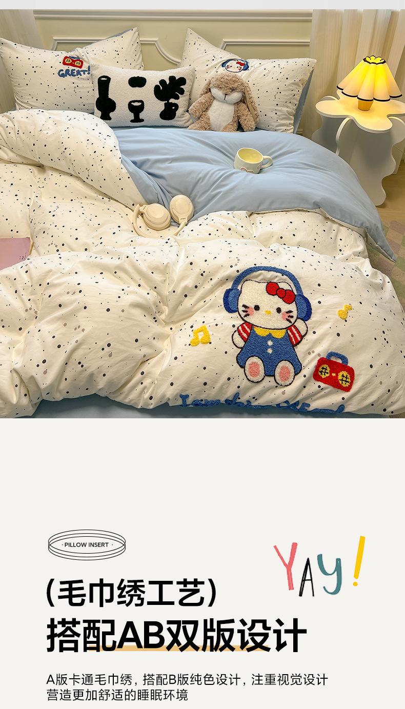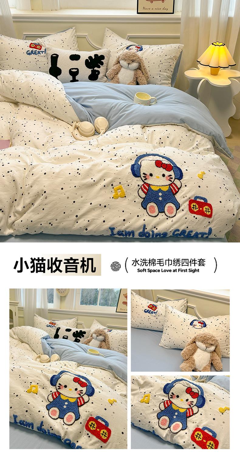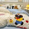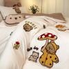 Ins toalla de dibujos animados bordado algodón puro juego de cuatro piezas Clase A pequeño fresco dormir desnudo lindo algodón funda de colchón ropa de cama