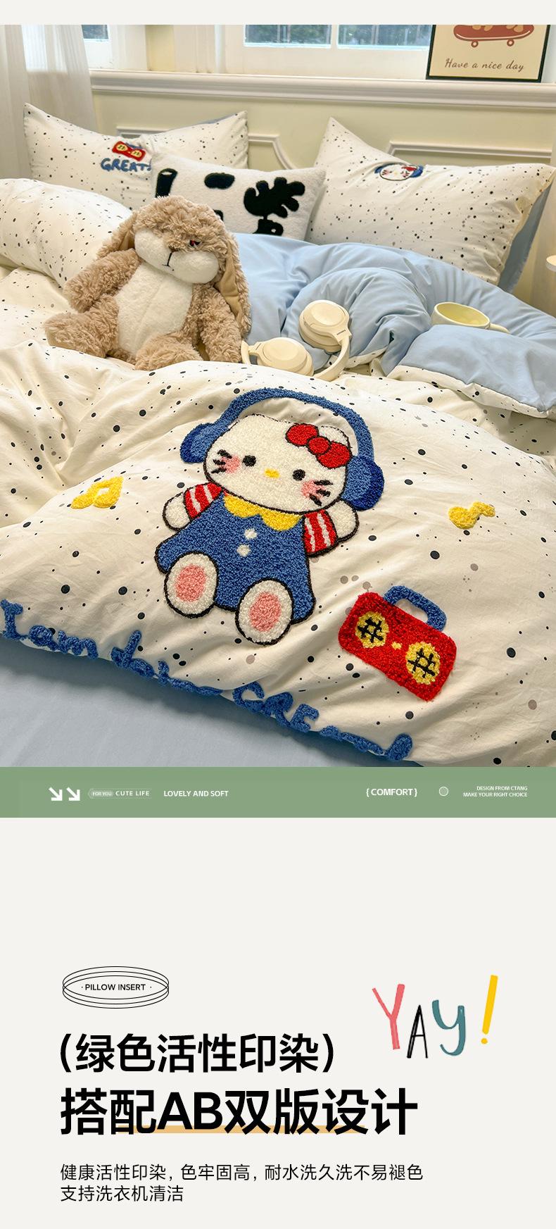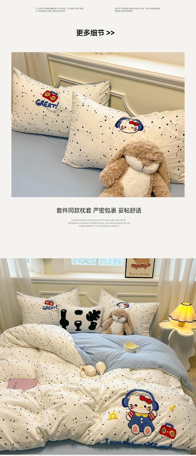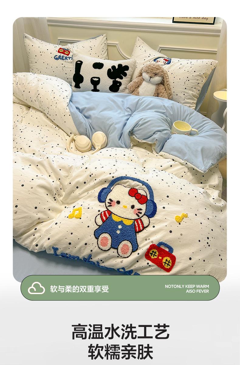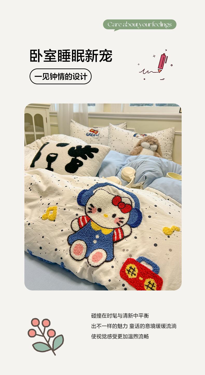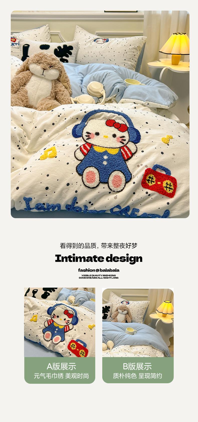 Ins toalla de dibujos animados bordado algodón puro juego de cuatro piezas Clase A pequeño fresco dormir desnudo lindo algodón funda de colchón ropa de cama