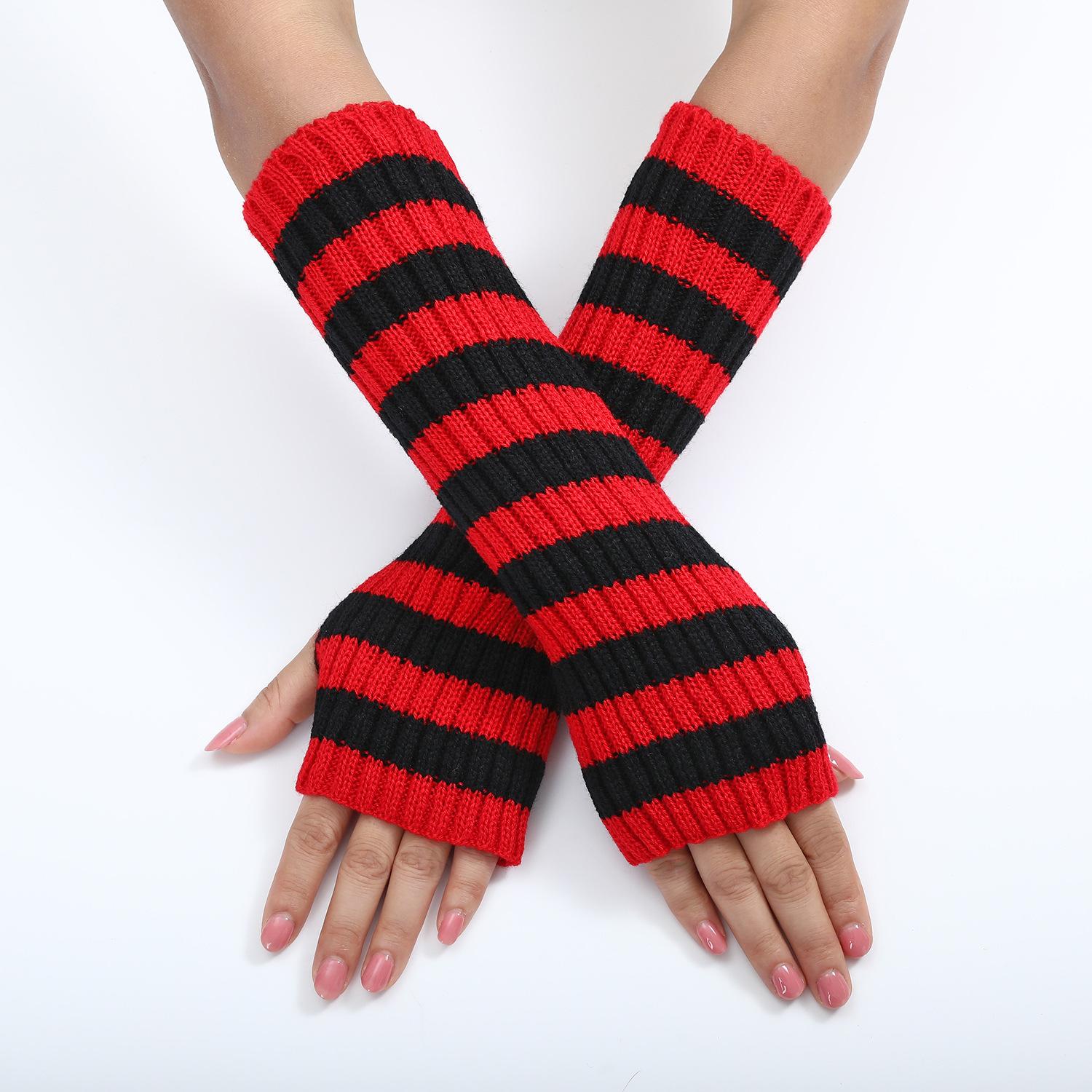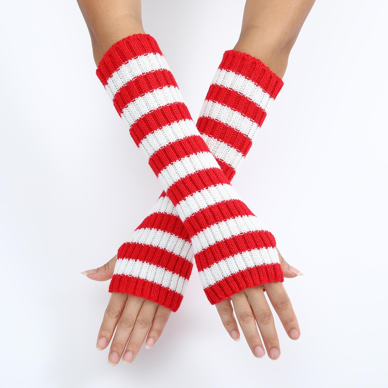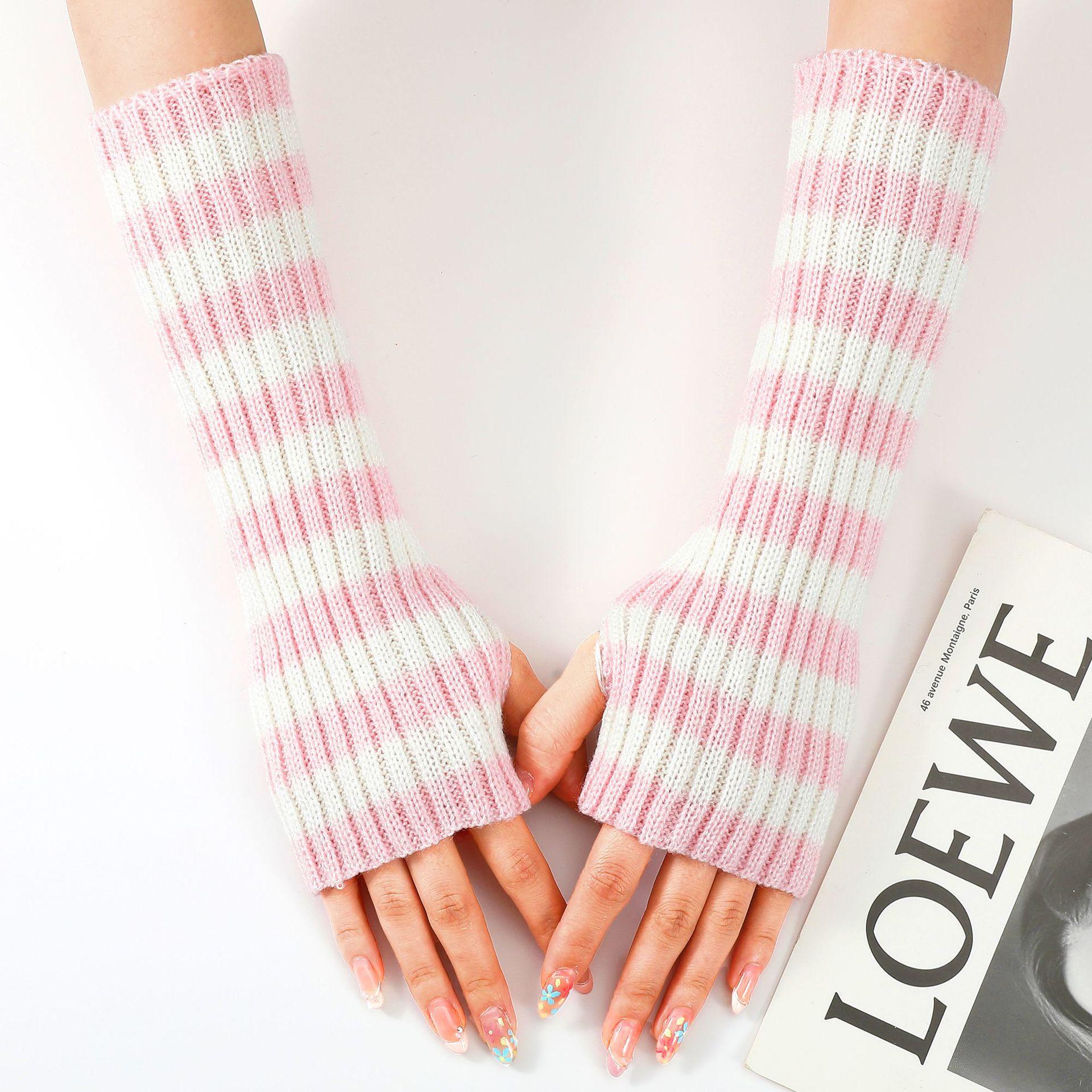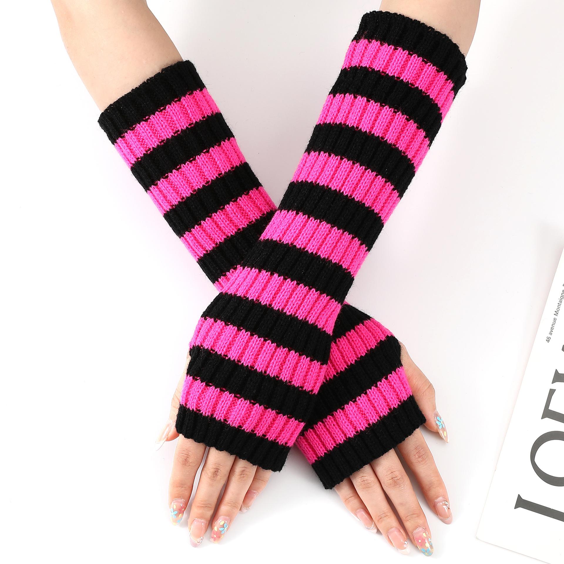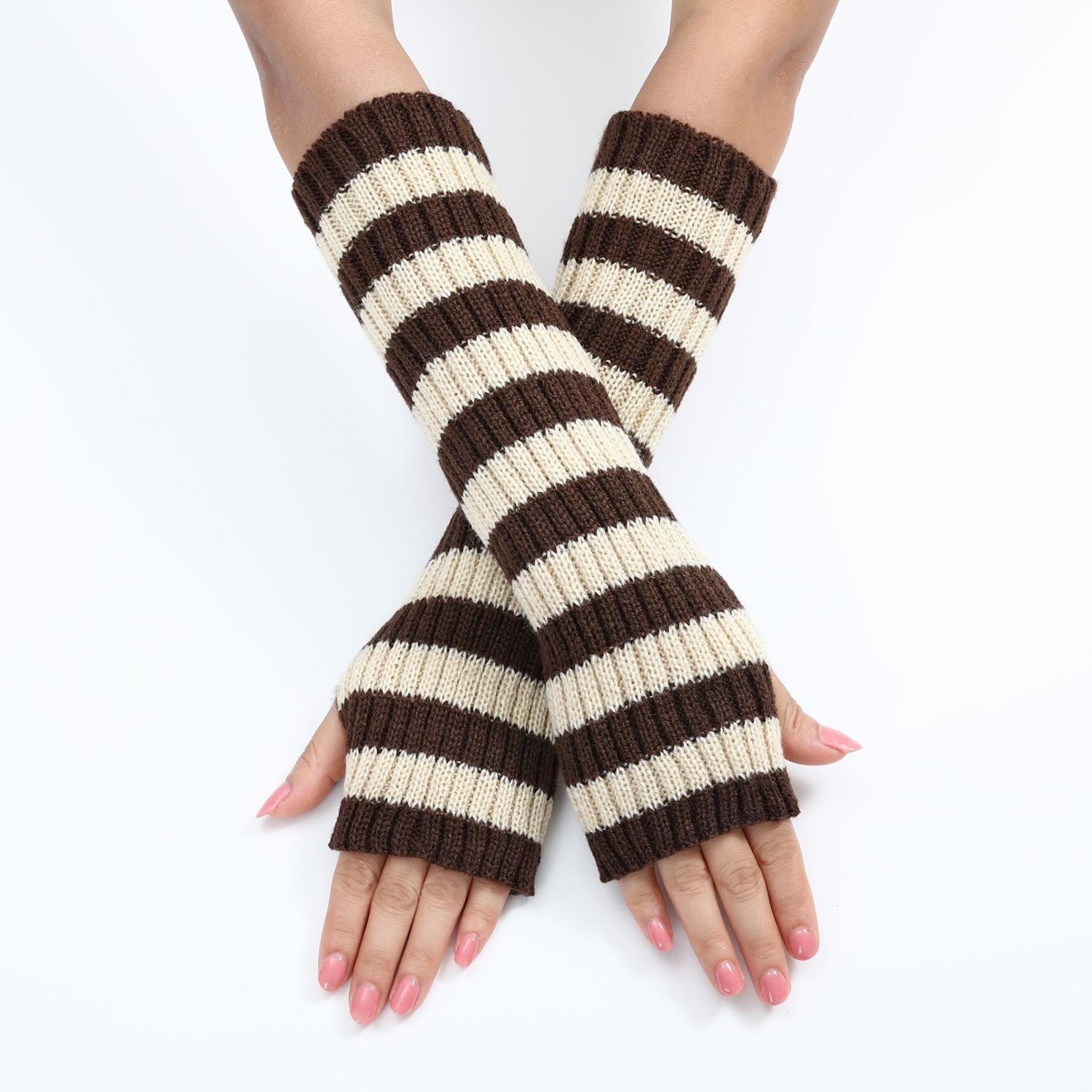30 guantes largos de lana a rayas con bloques de color otoño e invierno nuevos de longitud media sin dedos para mujer cálidos de moda calentadores de brazo tejidos mangas
