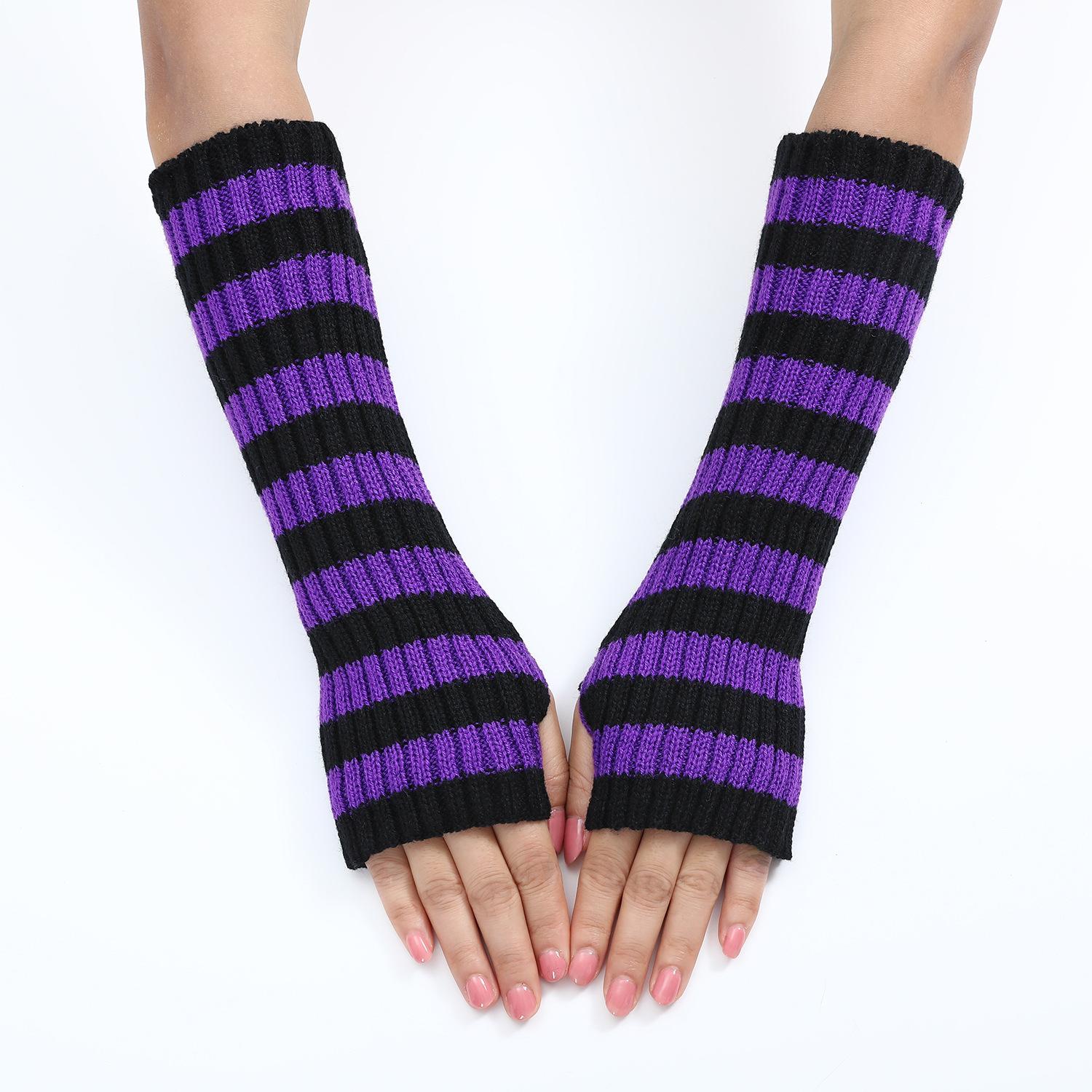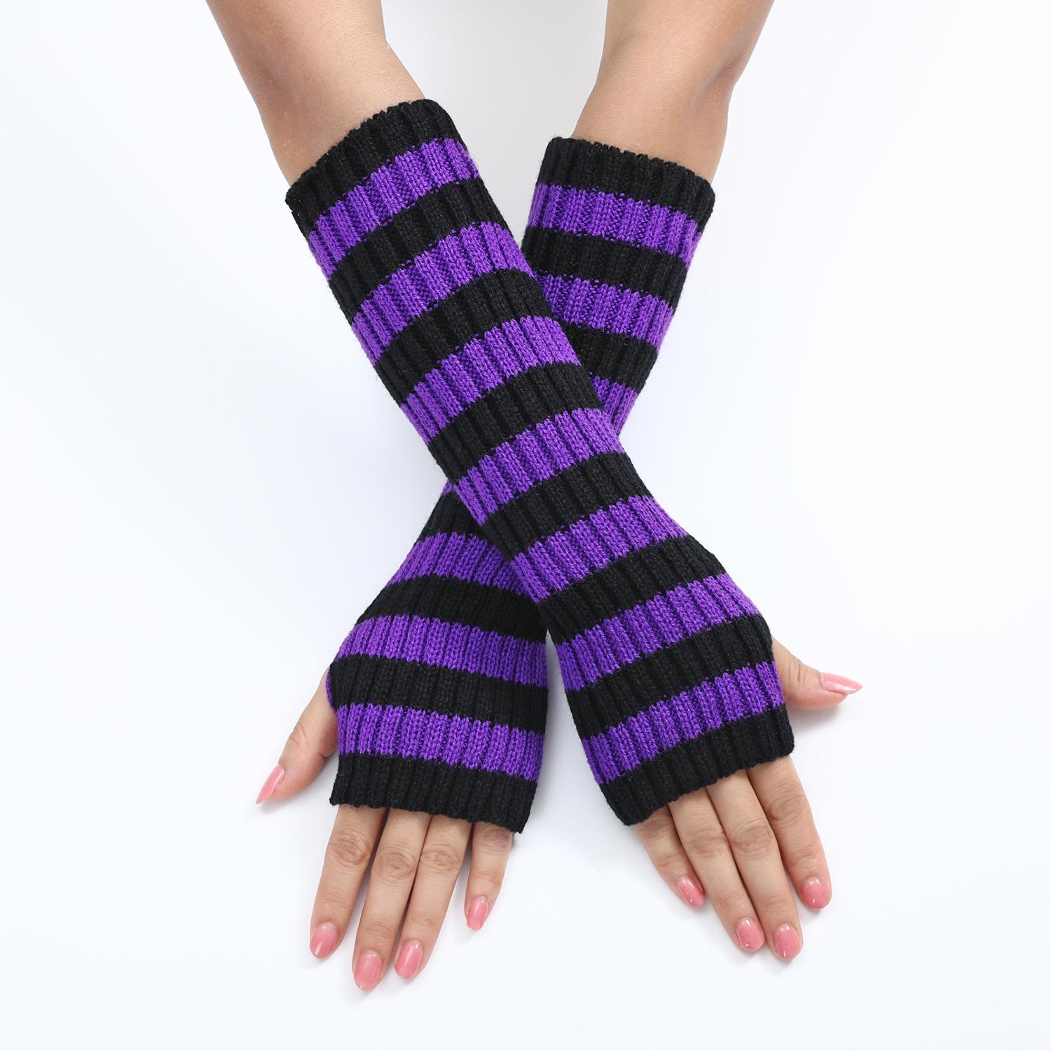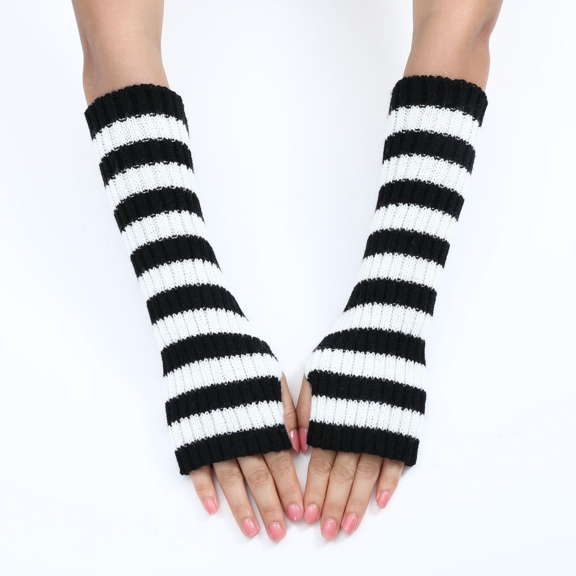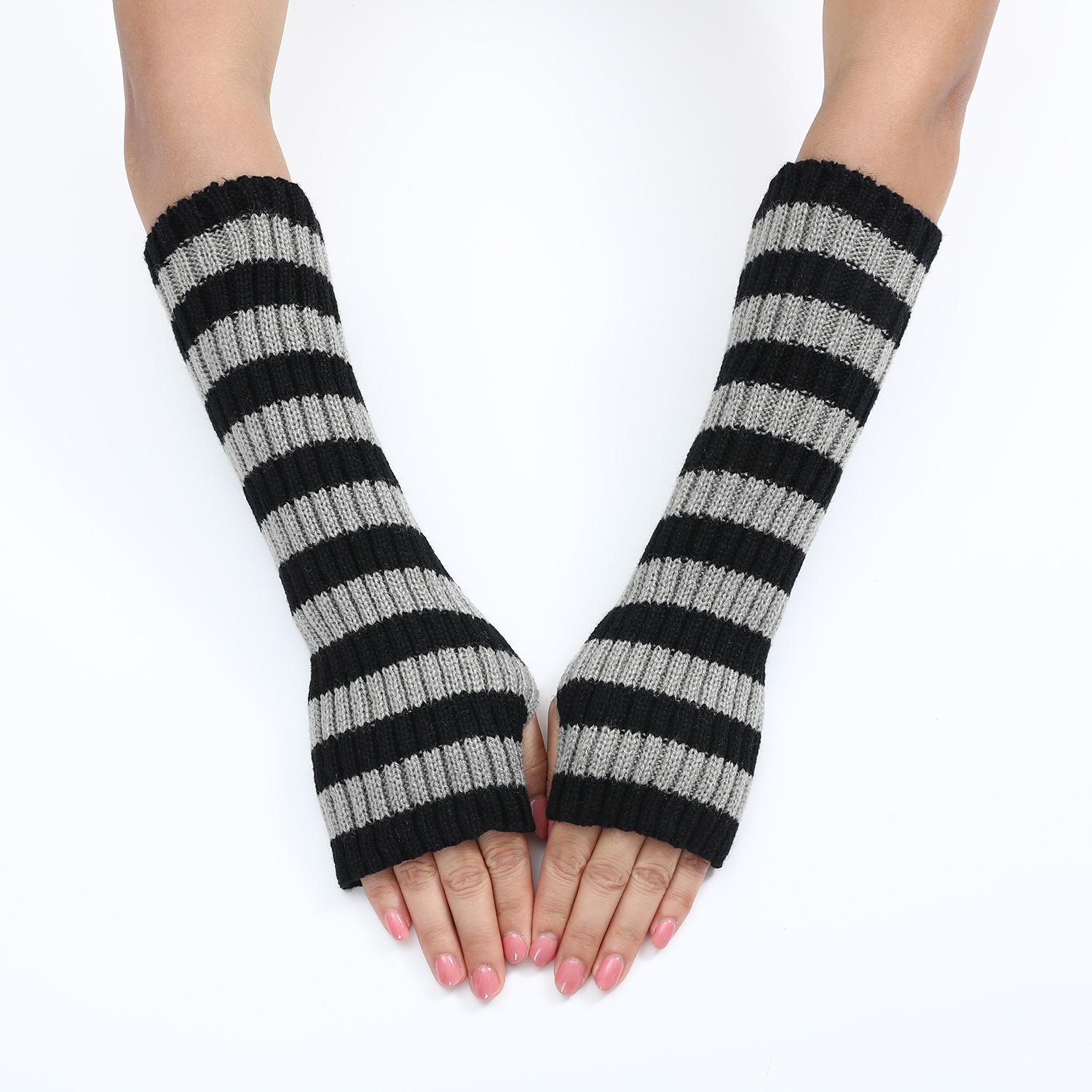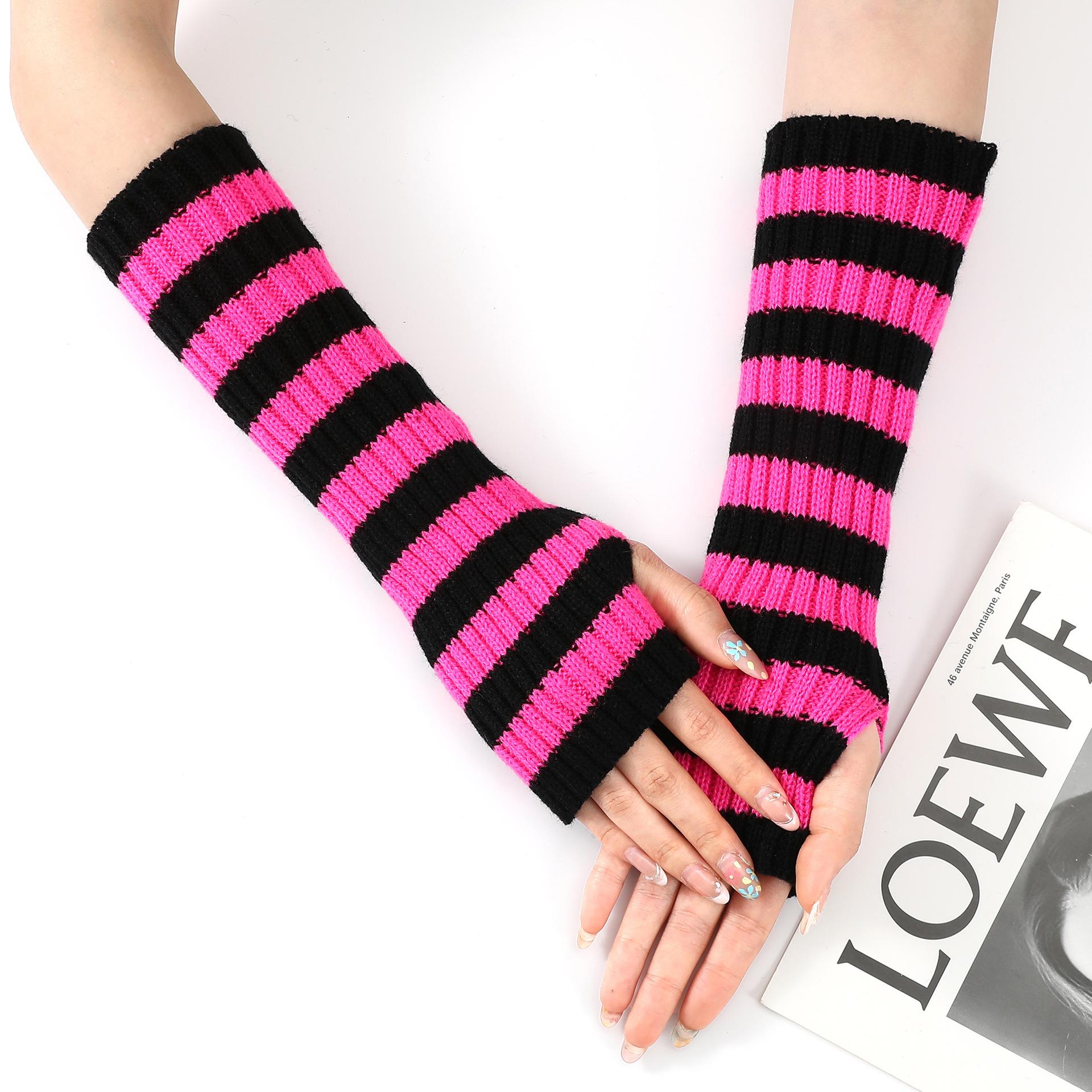 30 guantes largos de lana a rayas con bloques de color otoño e invierno nuevos de longitud media sin dedos para mujer cálidos de moda calentadores de brazo tejidos mangas