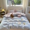 Toalla de Algodón Lavado Ins Bordado Música Pingüinito Cama Juego de Cuatro Piezas Algodón Puro 1.5m 1.8m Juego de Tres Piezas para Estudiante