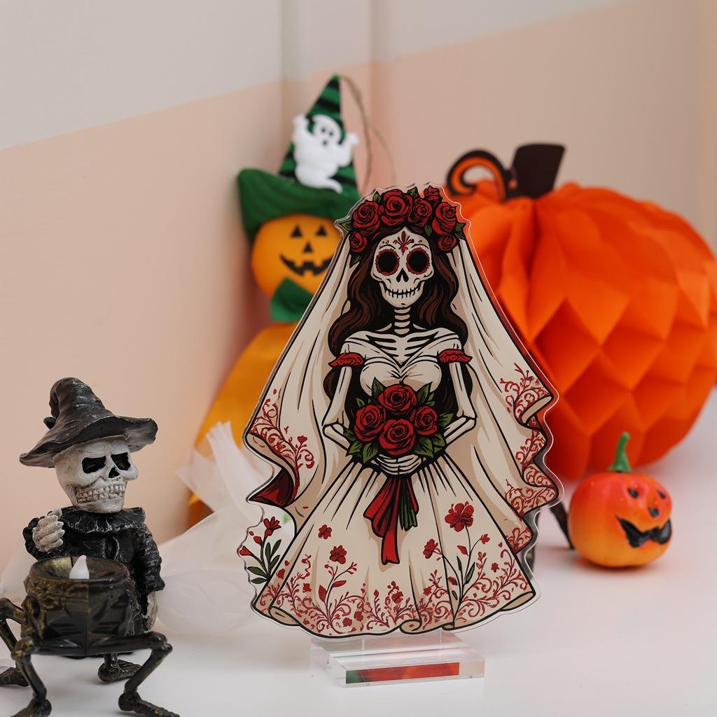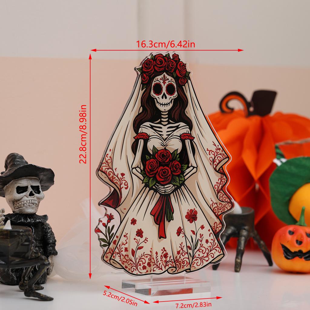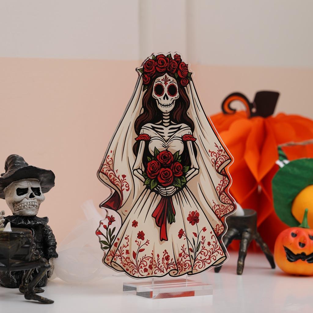 Decoración acrílica estilo novia esqueleto de Halloween Decoración acrílica con tema de Halloween Día de Muertos adorno