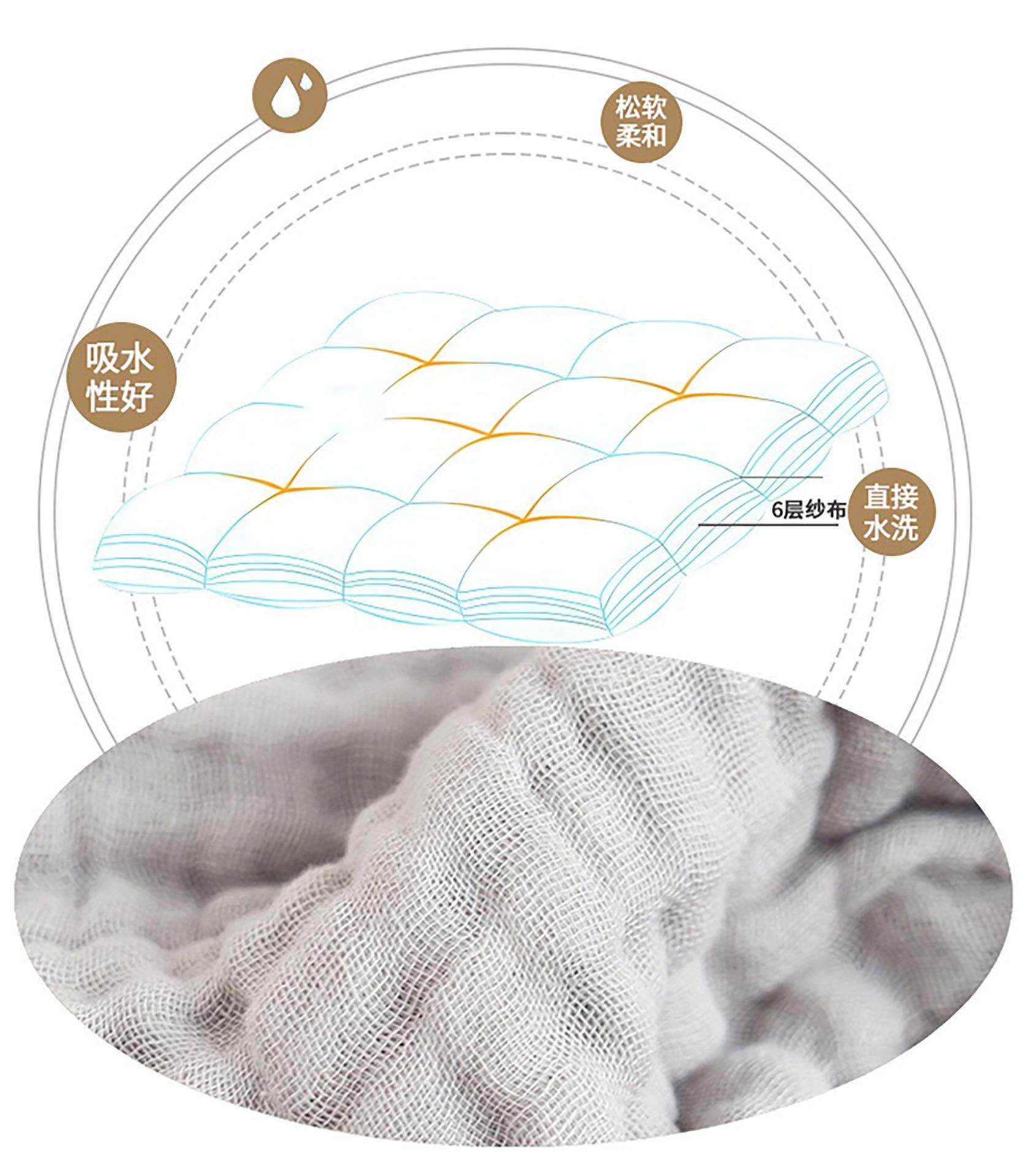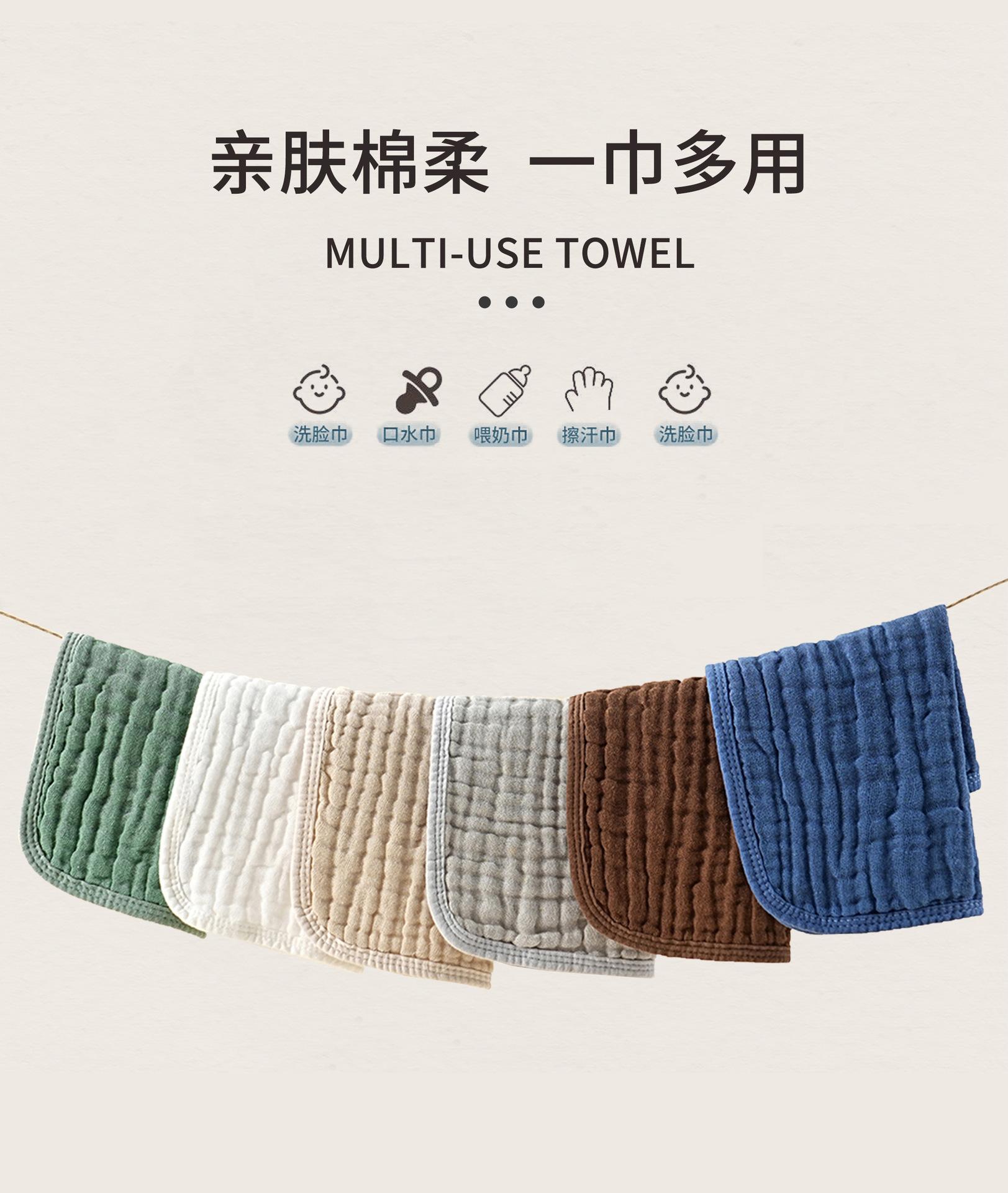 Toalla cuadrada de gasa lisa de algodón puro de 6 capas transfronteriza de Amazon, toalla para saliva de bebé recién nacido, toalla para eructos de bebé, toalla para leche regurgitada