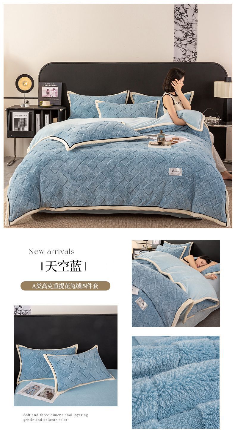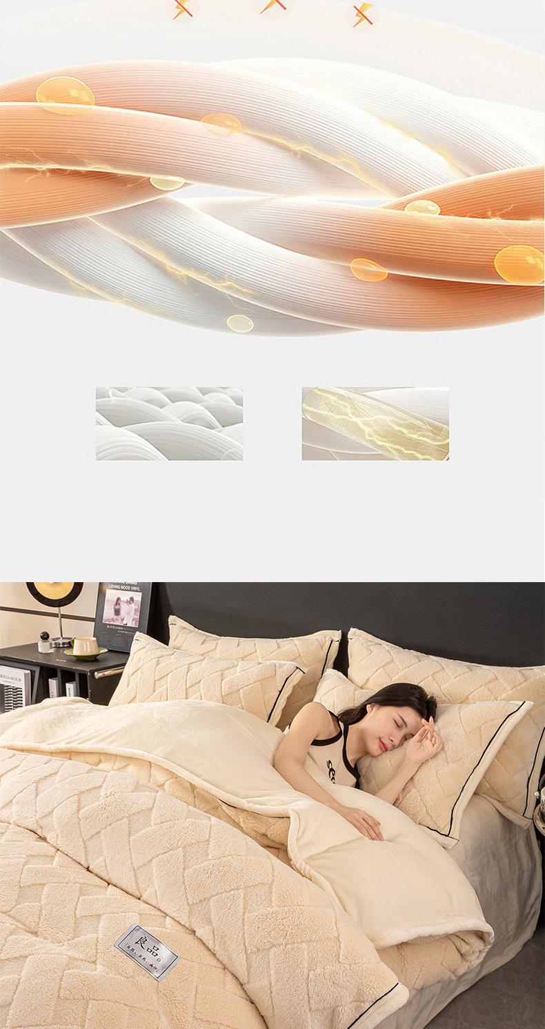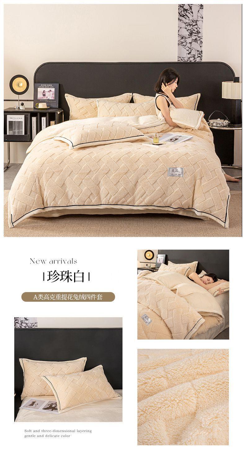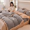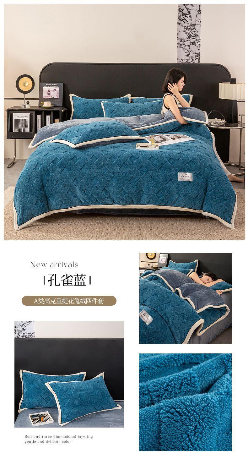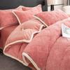 Funda Nórdica de Terciopelo de Leche Espesado Invierno Cálido Coral Fleece Juego de Cuatro Piezas Franela de Doble Cara Sábana Individual y Doble Forro Polar de Doble Cara