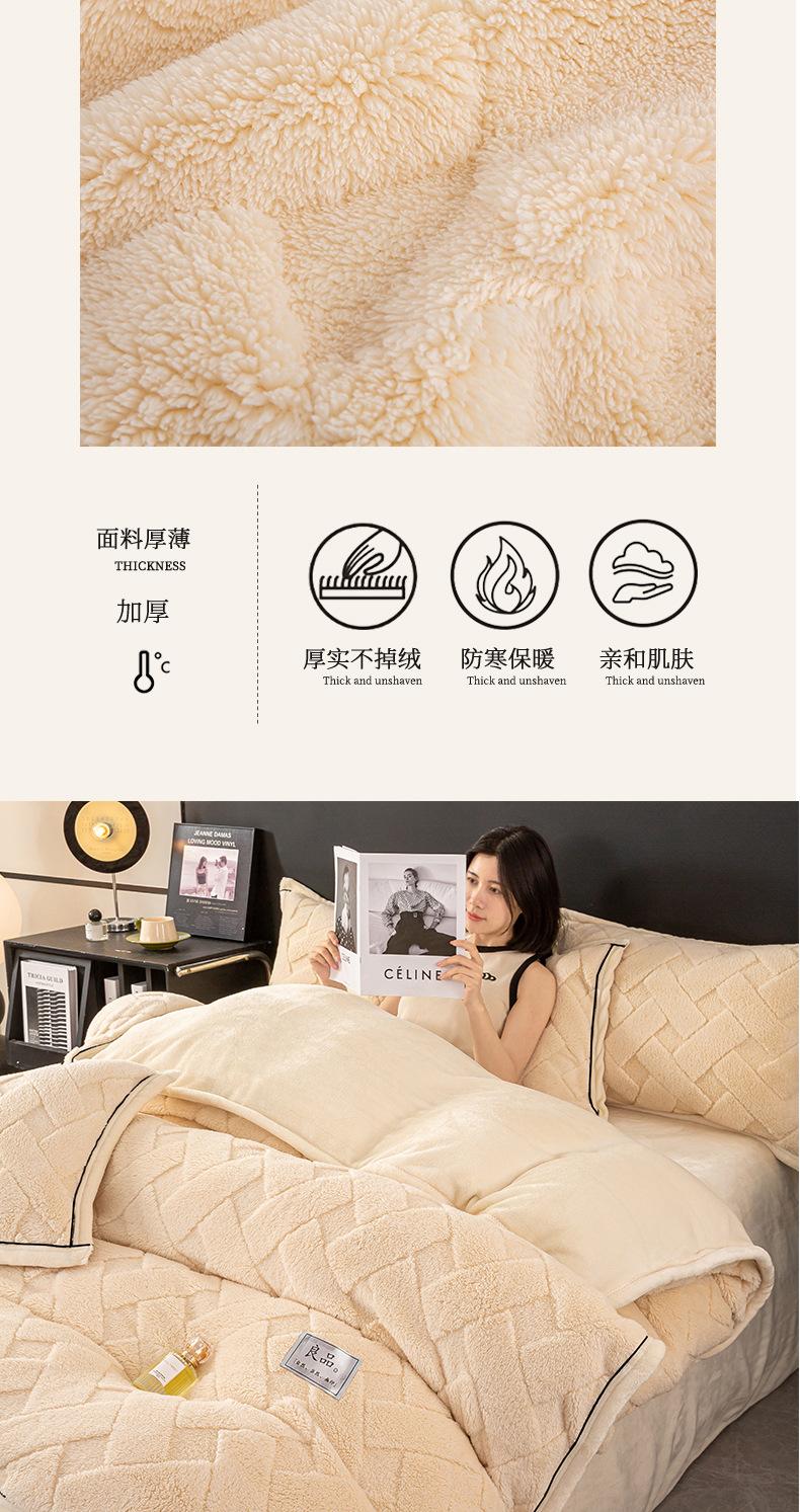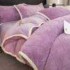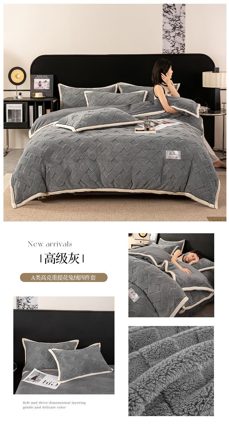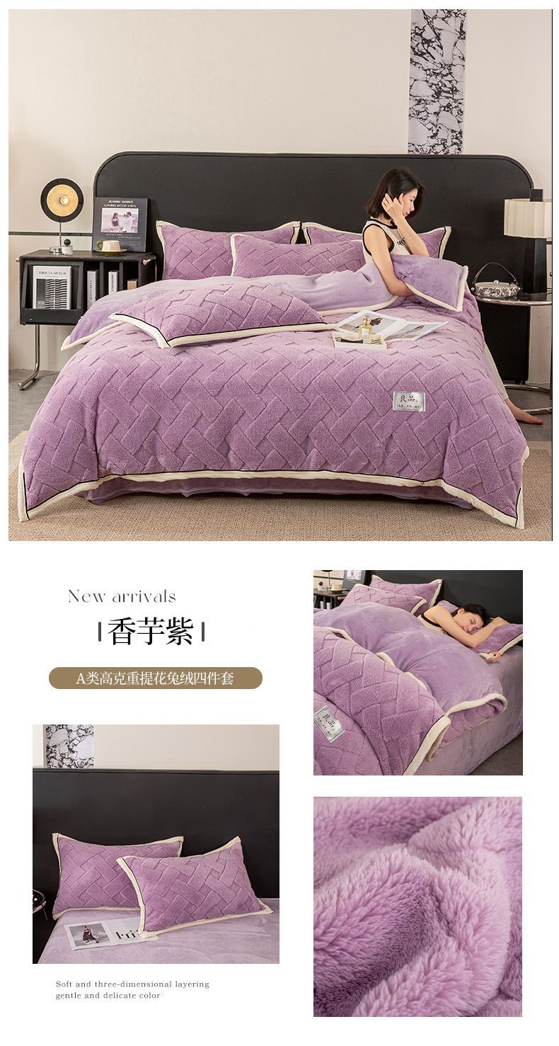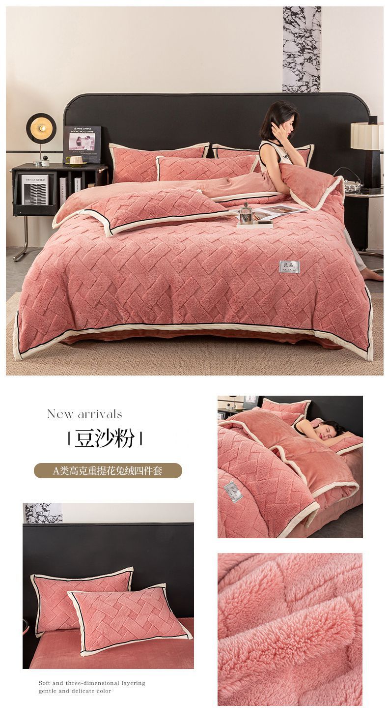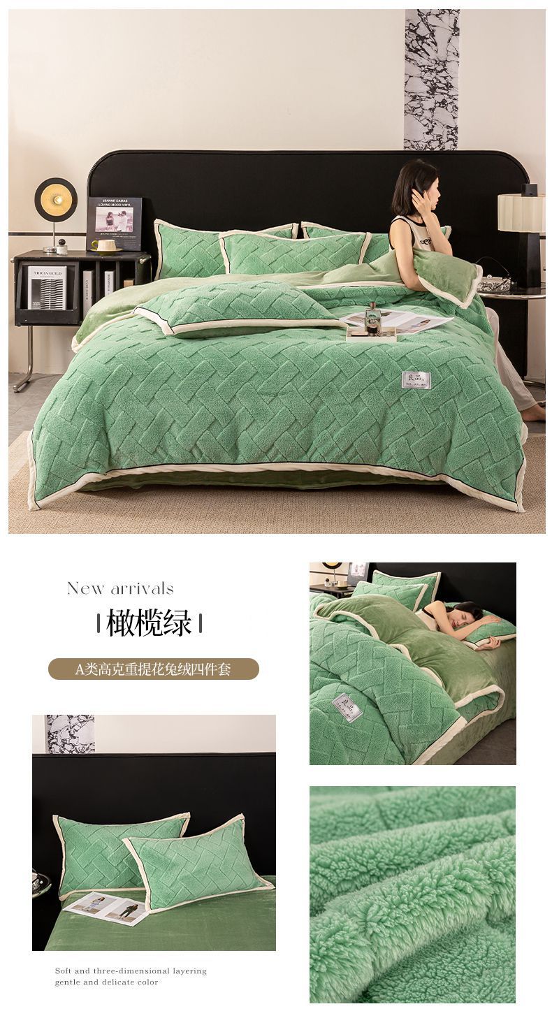 Funda Nórdica de Terciopelo de Leche Espesado Invierno Cálido Coral Fleece Juego de Cuatro Piezas Franela de Doble Cara Sábana Individual y Doble Forro Polar de Doble Cara