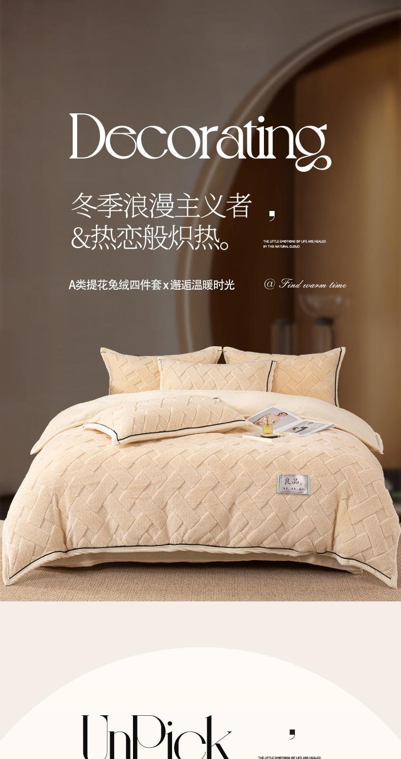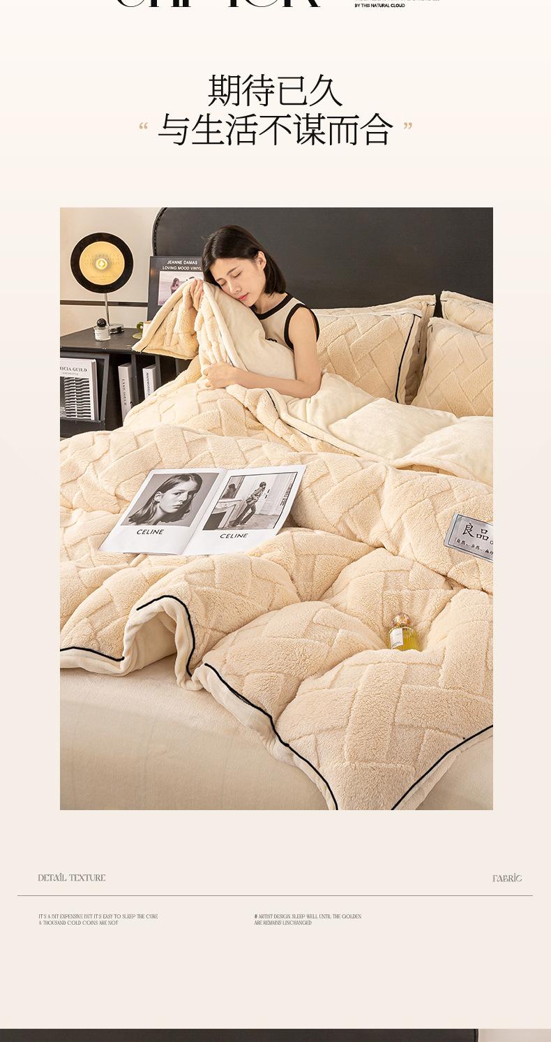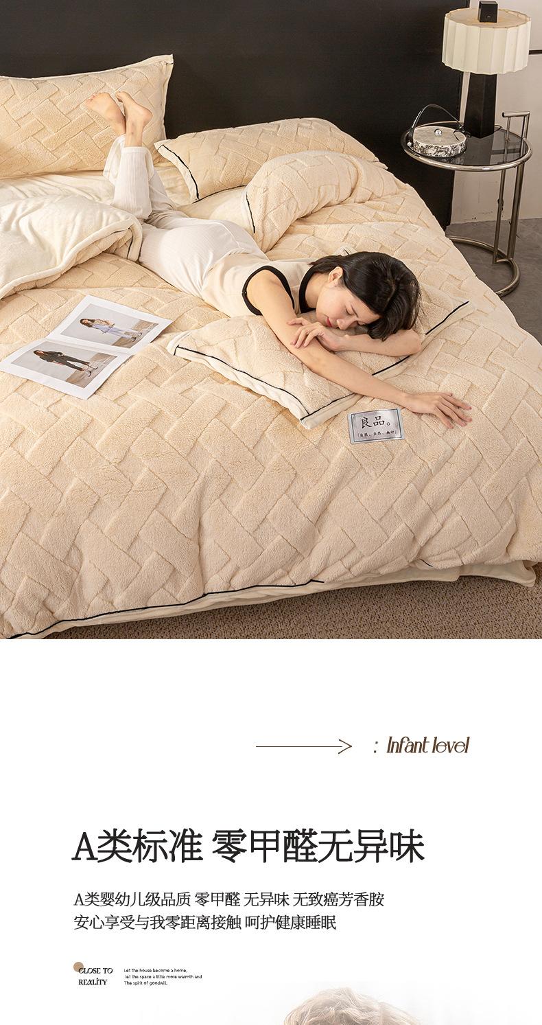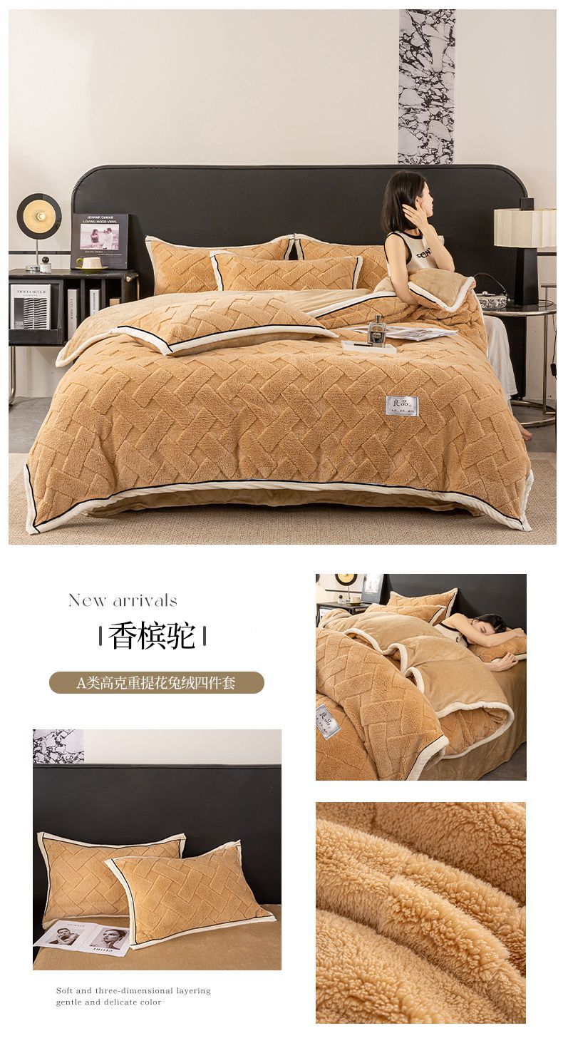 Funda Nórdica de Terciopelo de Leche Espesado Invierno Cálido Coral Fleece Juego de Cuatro Piezas Franela de Doble Cara Sábana Individual y Doble Forro Polar de Doble Cara